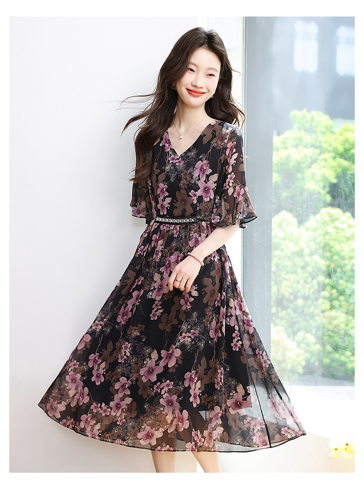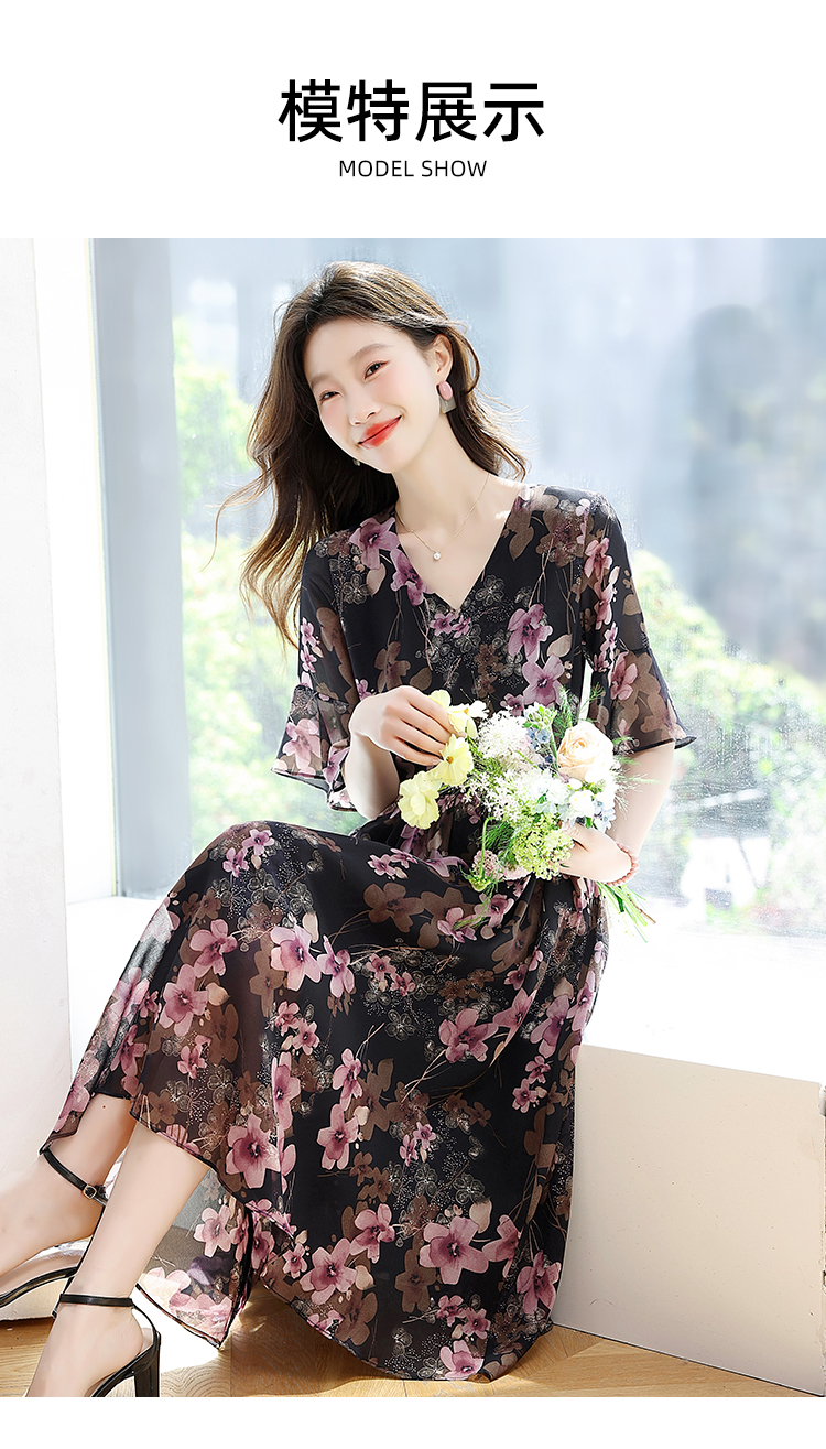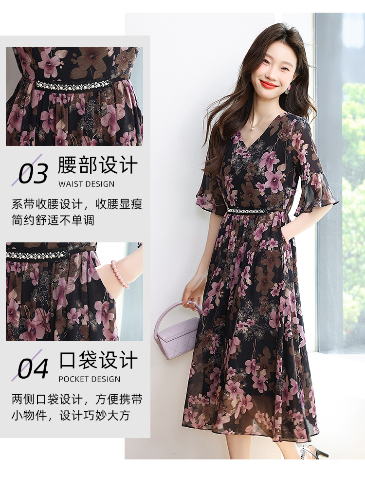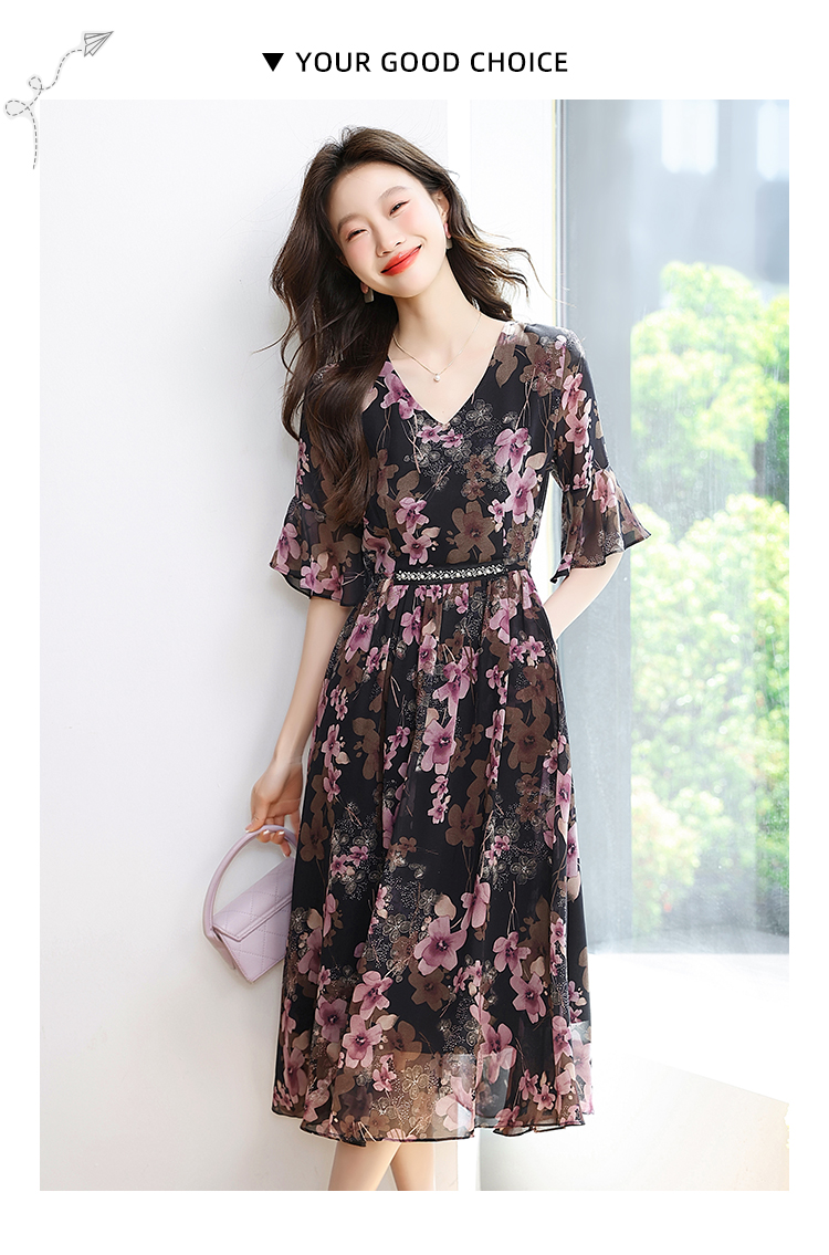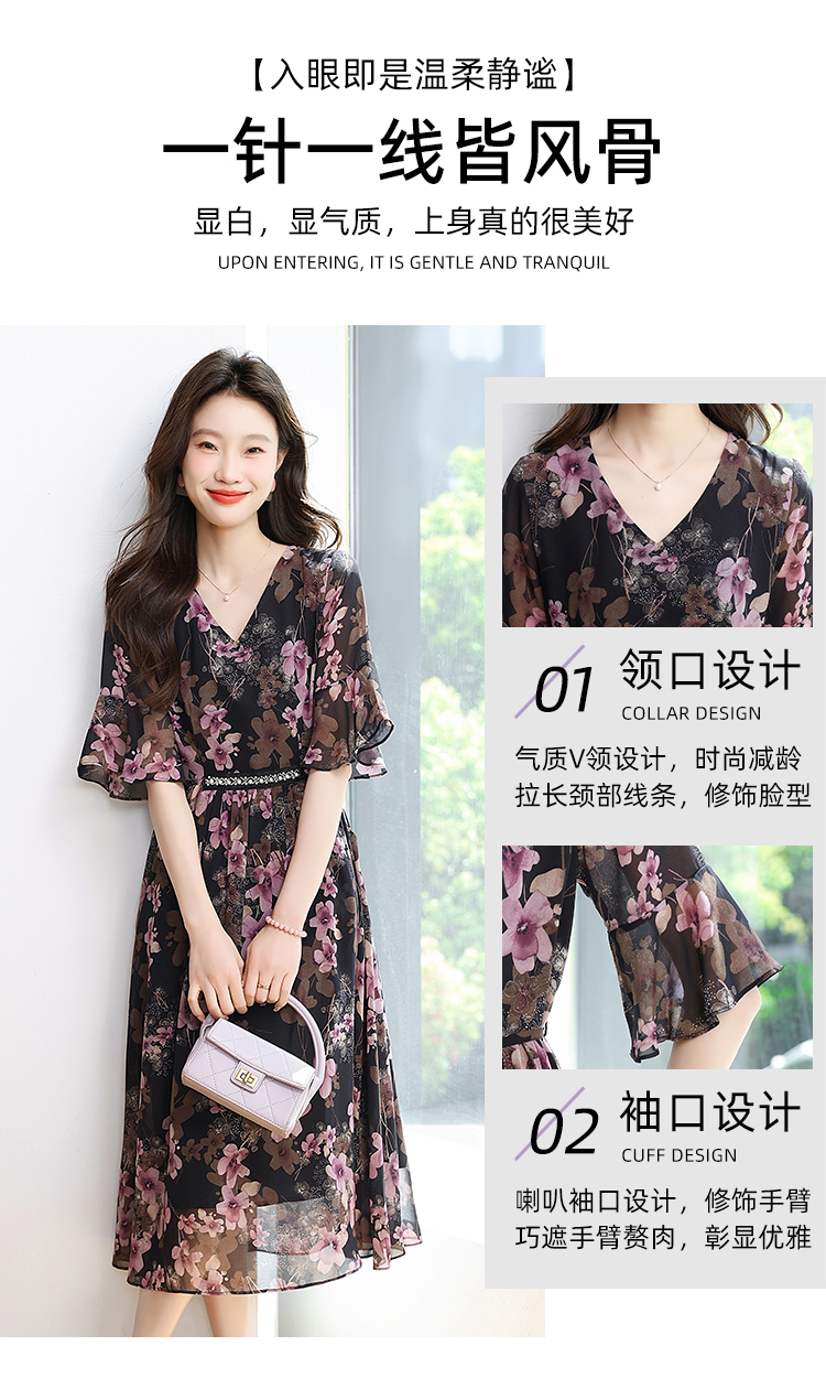 RY1646# 2026夏季薰衣草紫色温柔风穿搭女人味印花连衣裙