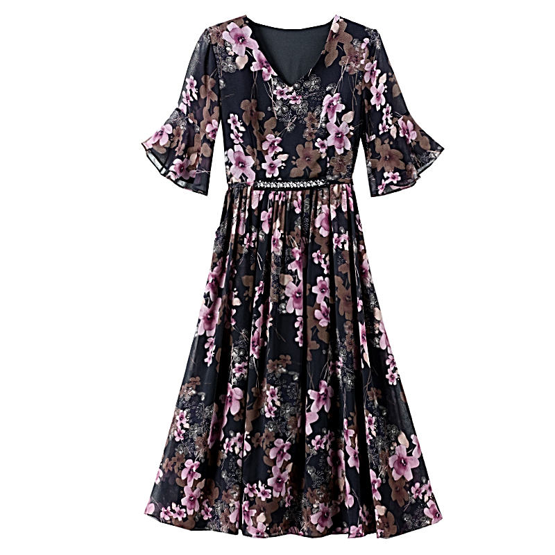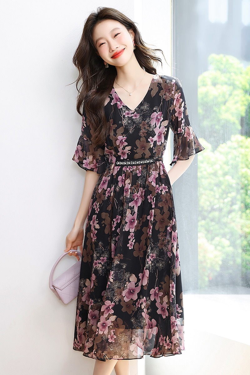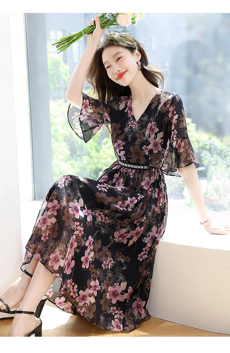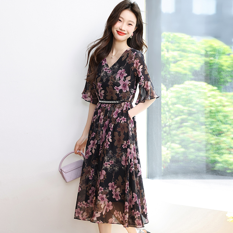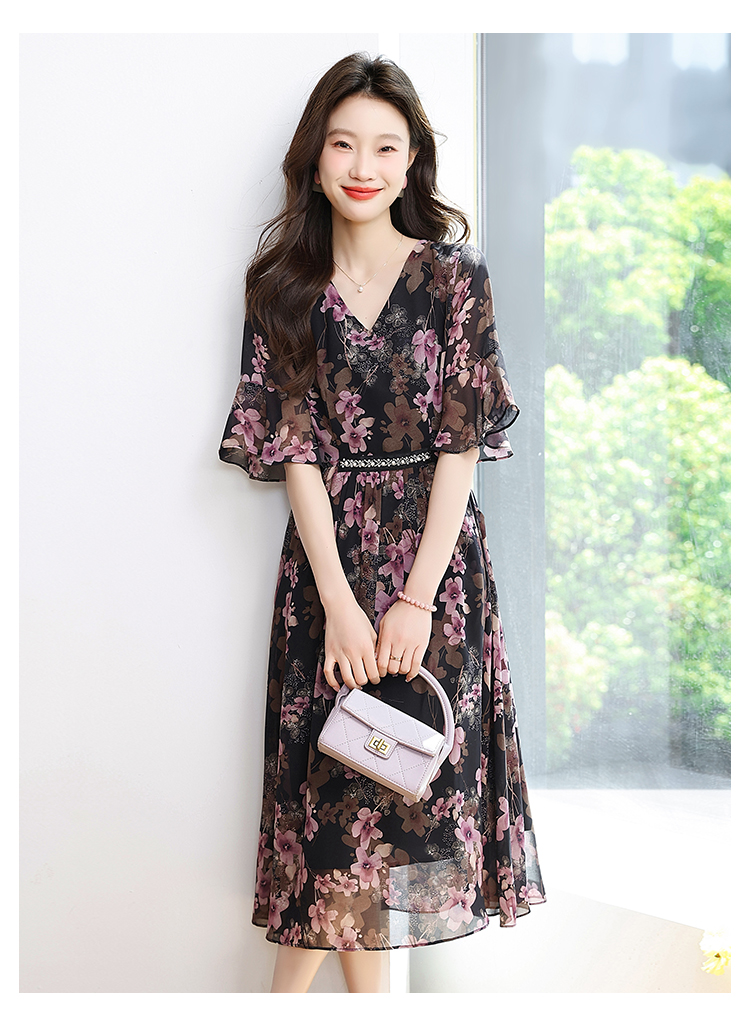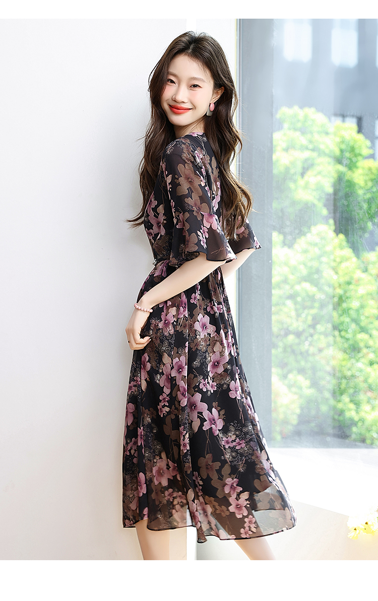 RY1646# 2026夏季薰衣草紫色温柔风穿搭女人味印花连衣裙