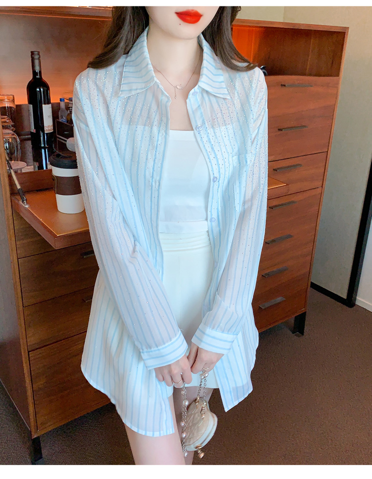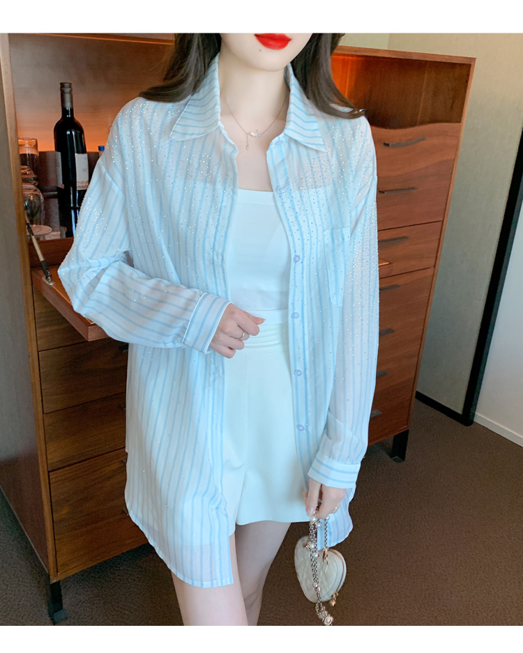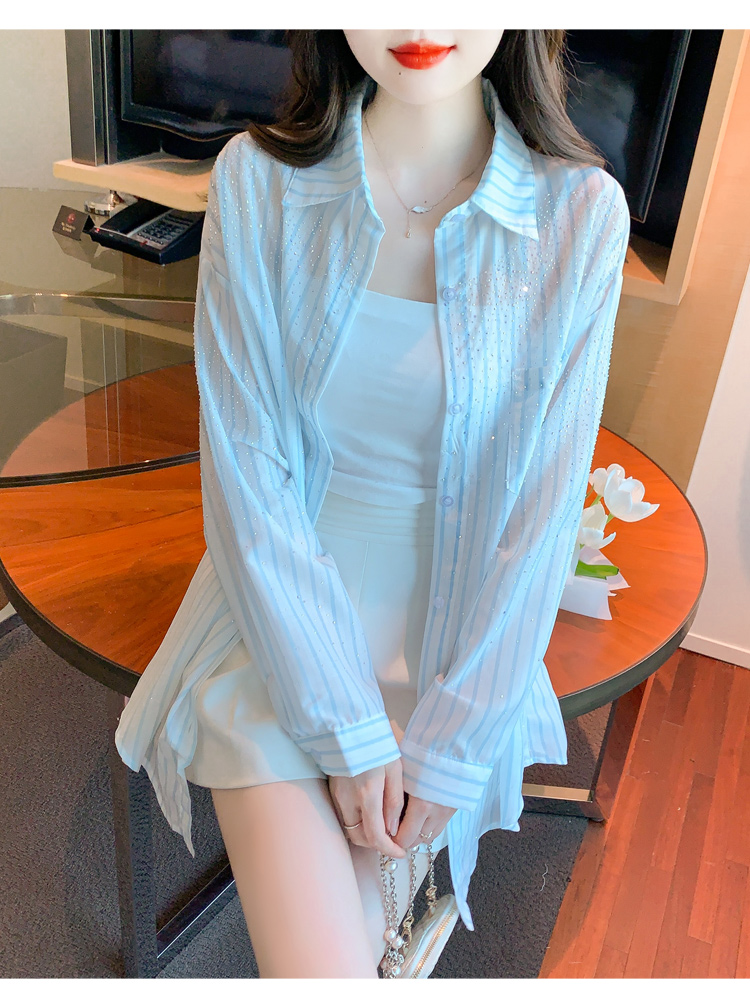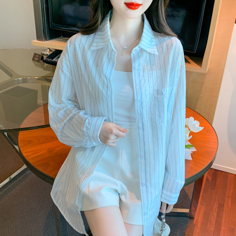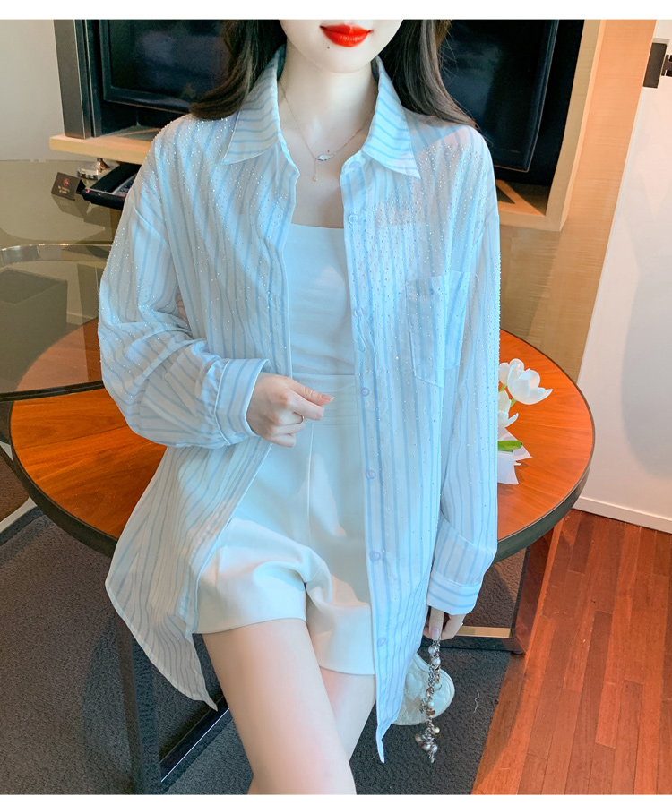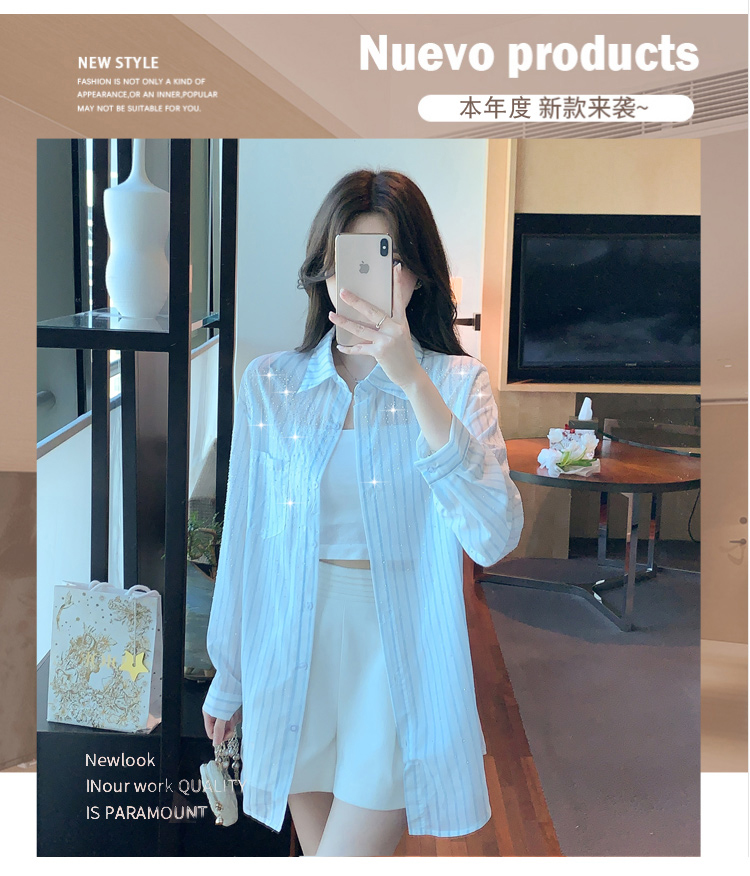 RY1658# 已出货2026夏季真奥钻原版1:1定制烫钻长袖中长款衬衣开衫防晒衣