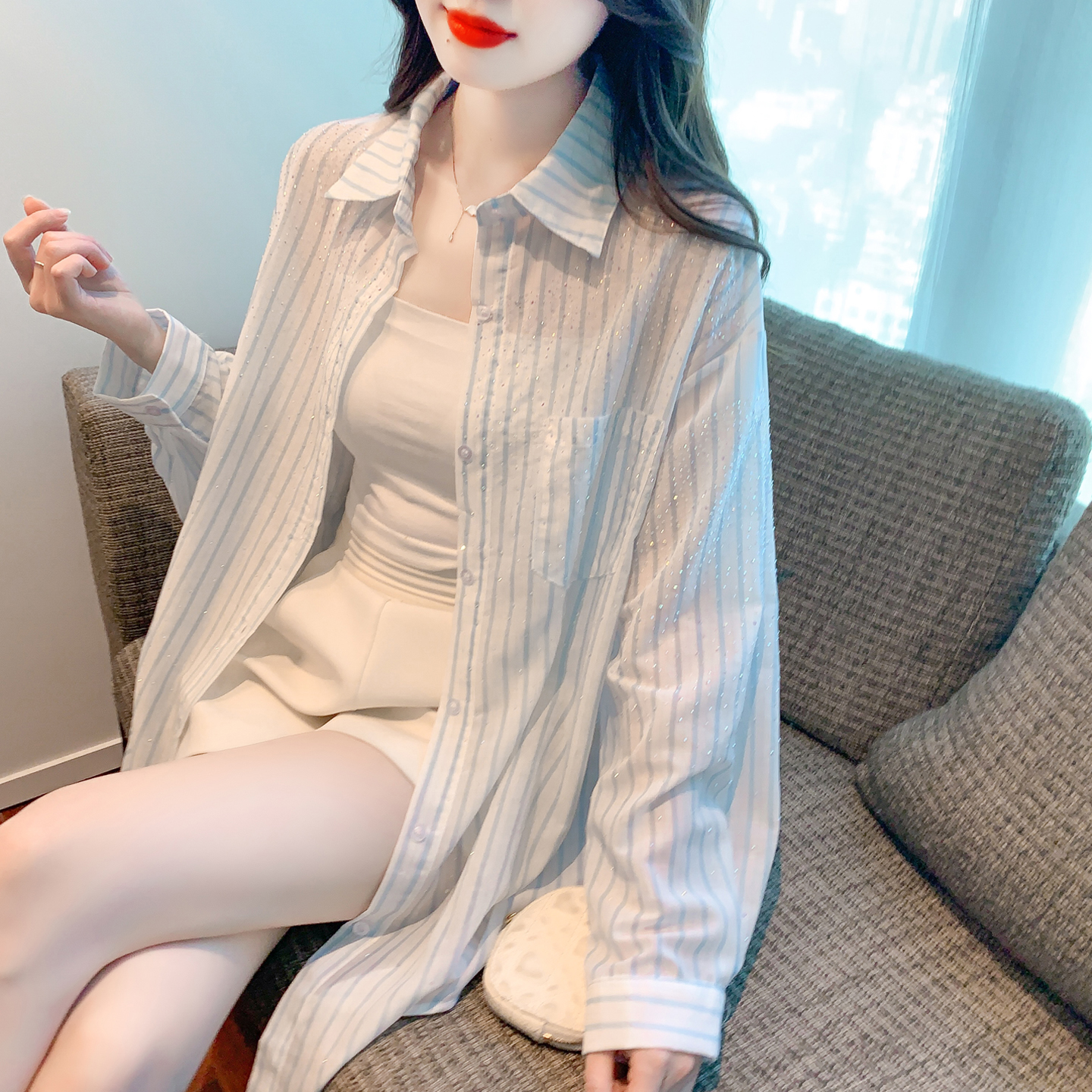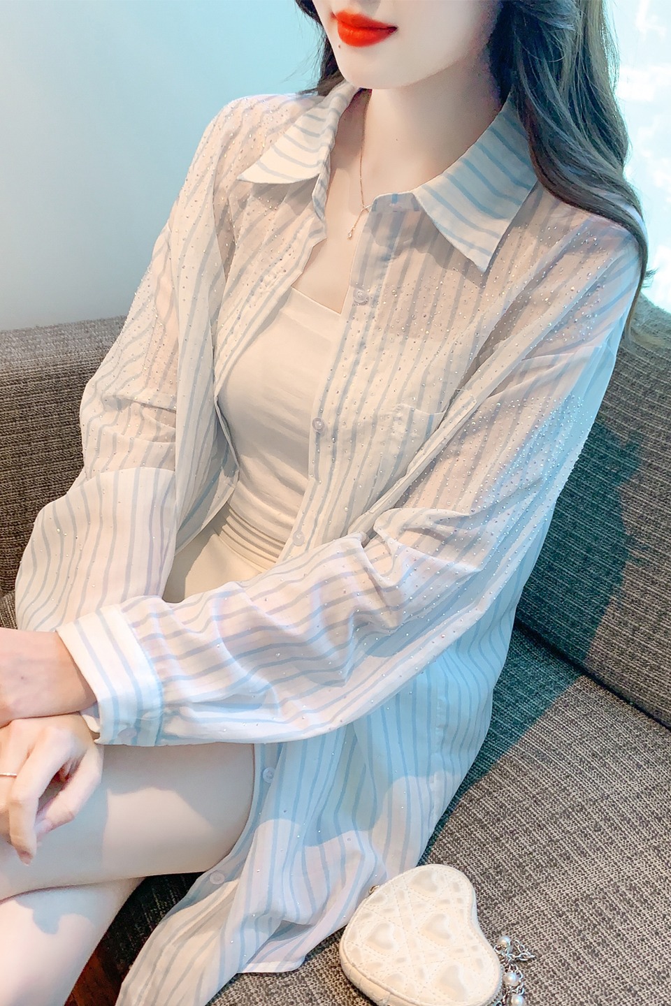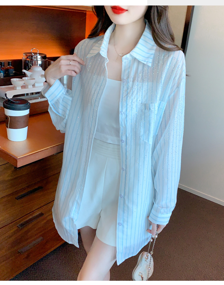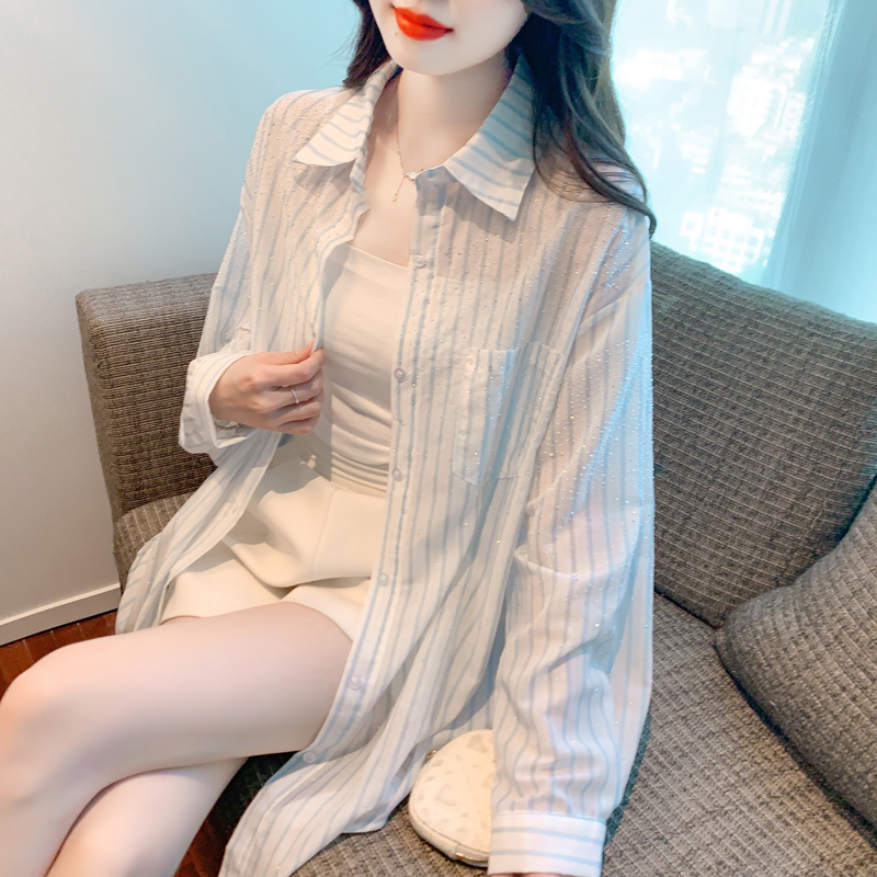 RY1658# 已出货2026夏季真奥钻原版1:1定制烫钻长袖中长款衬衣开衫防晒衣