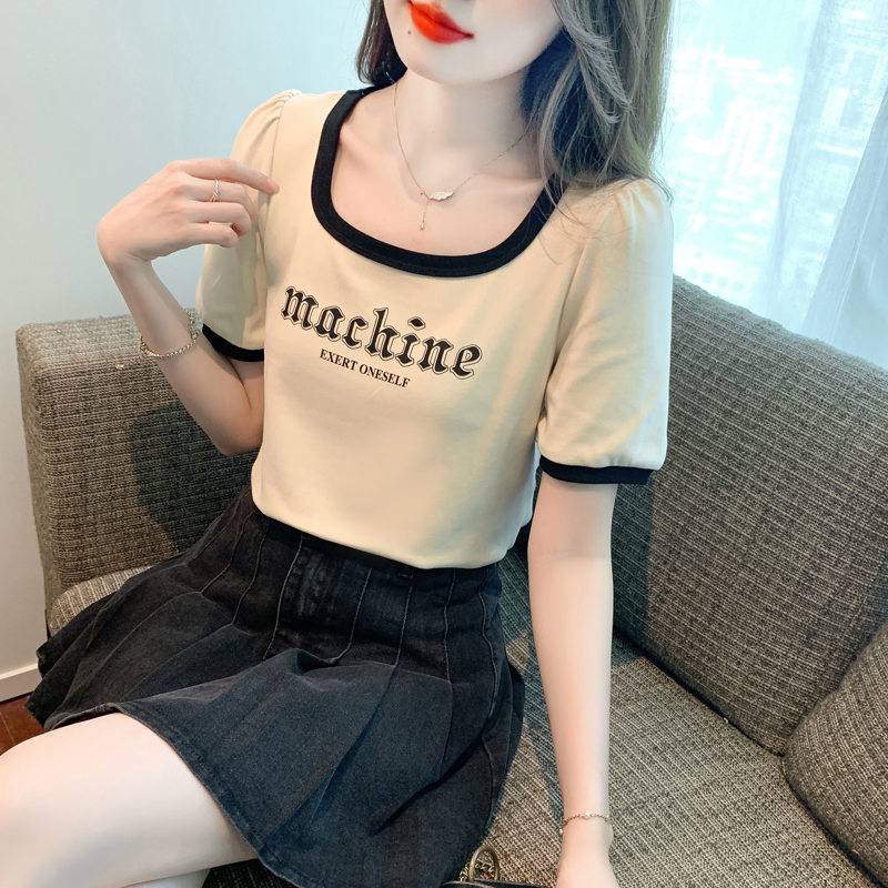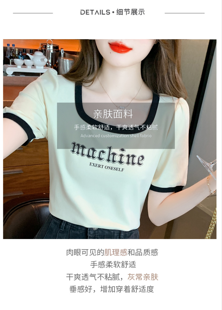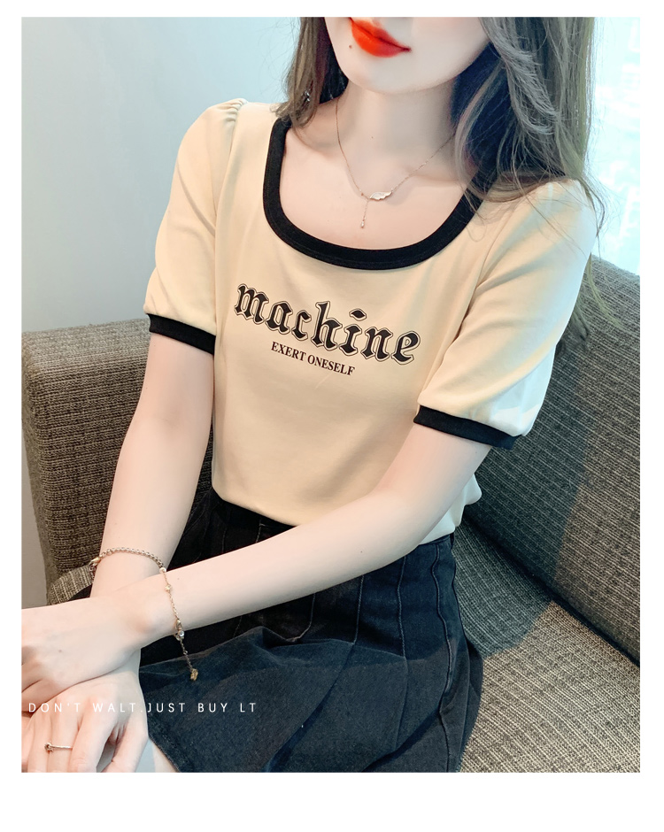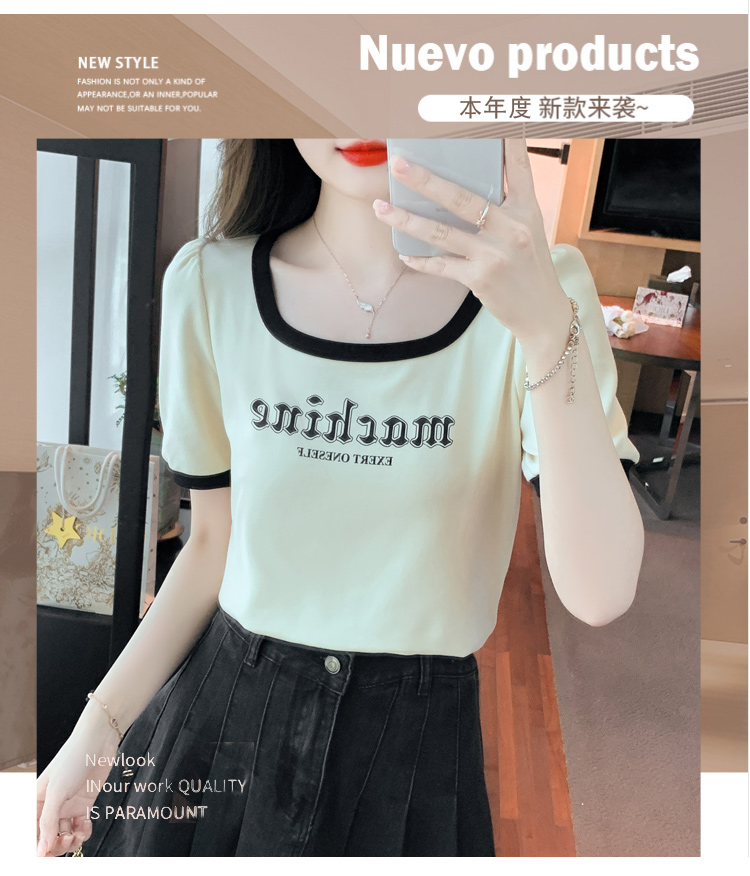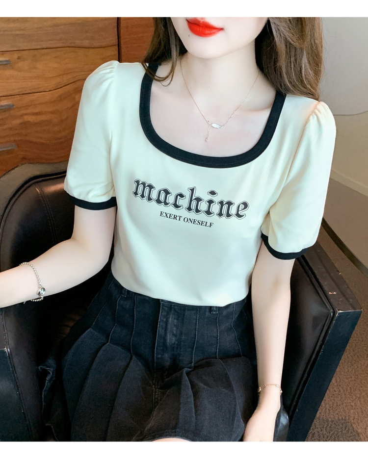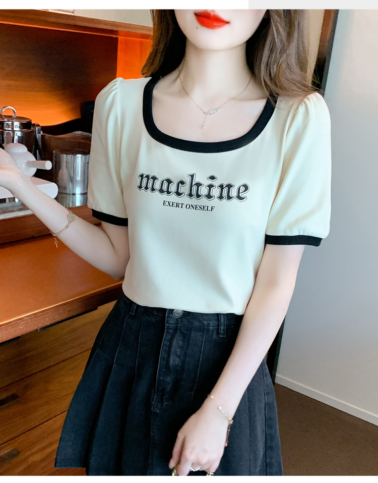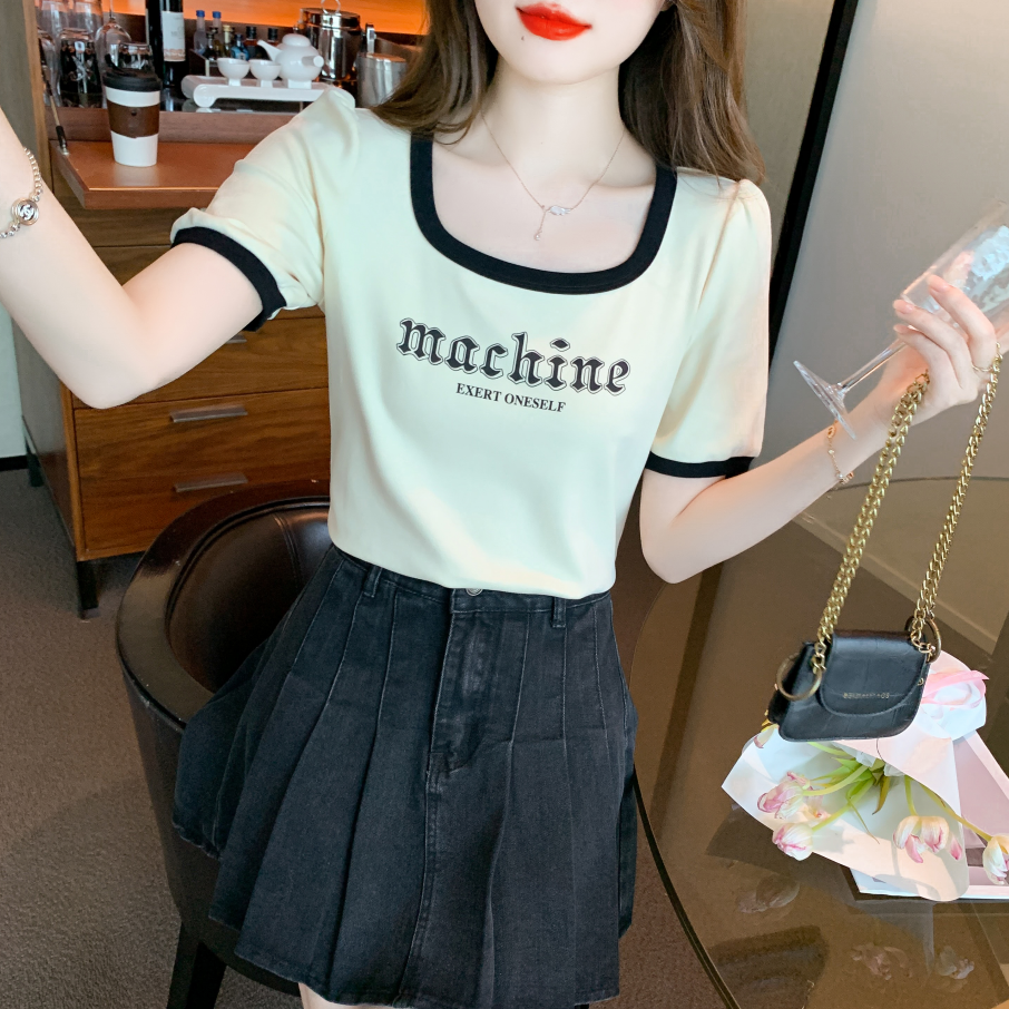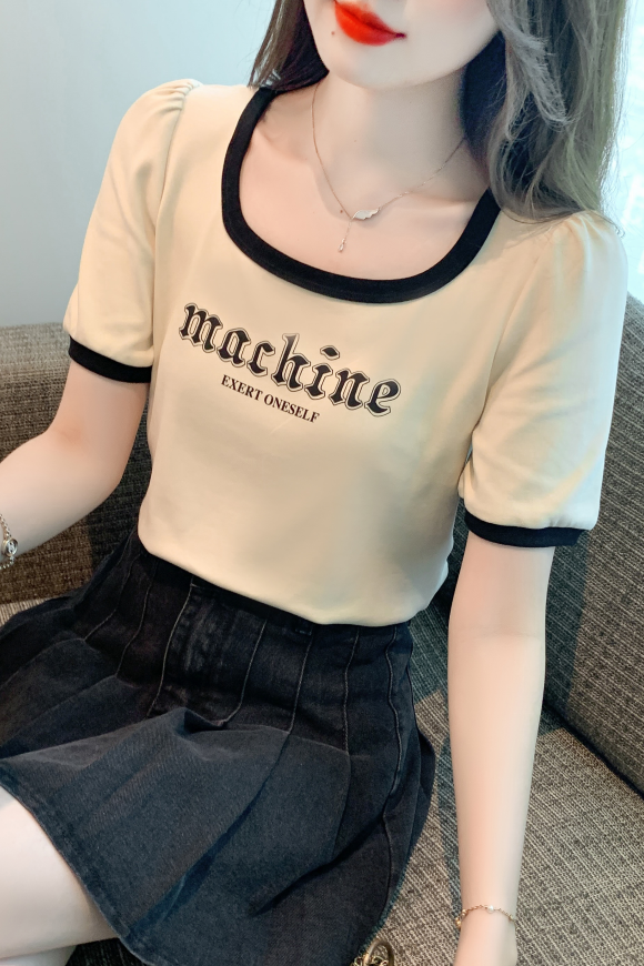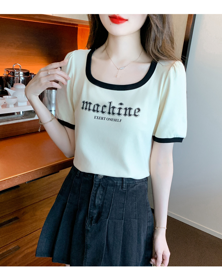RY1661# 已出货2026夏季新款方圆领套头百搭纯棉印花T恤修身显瘦短袖上衣