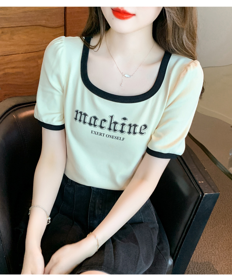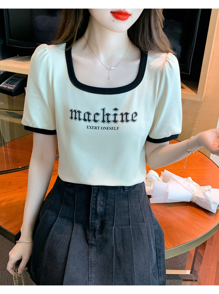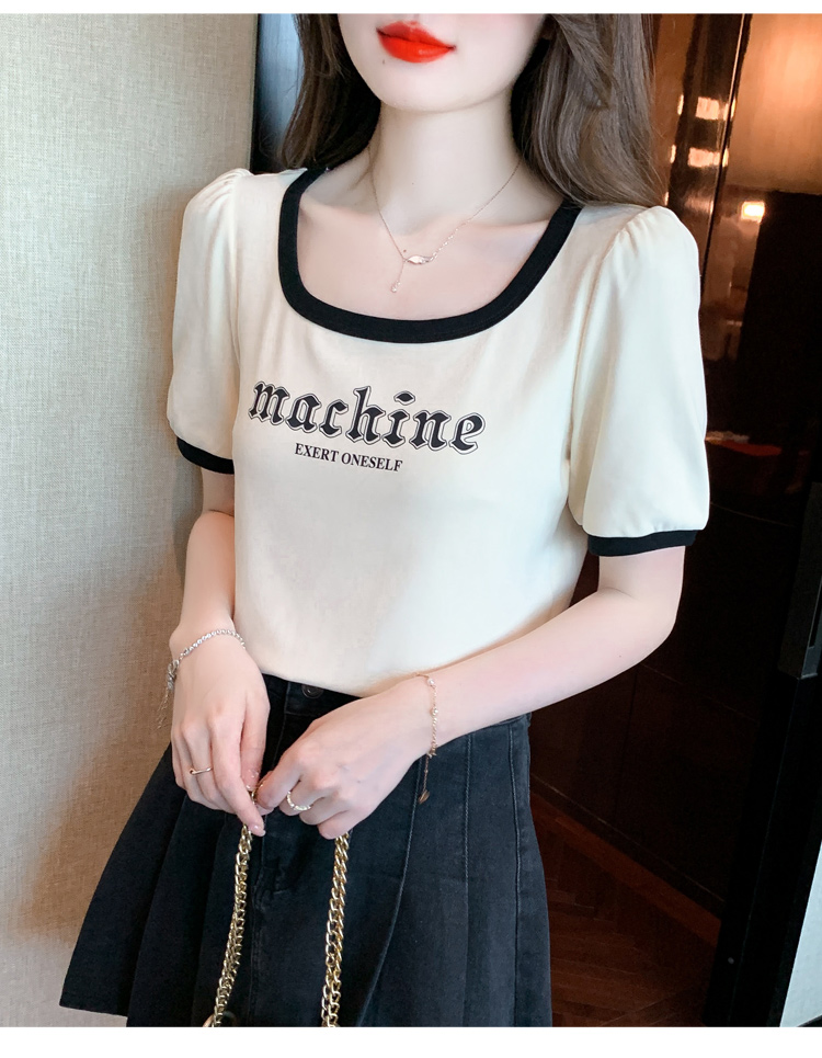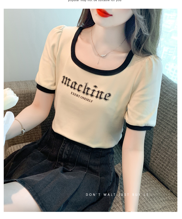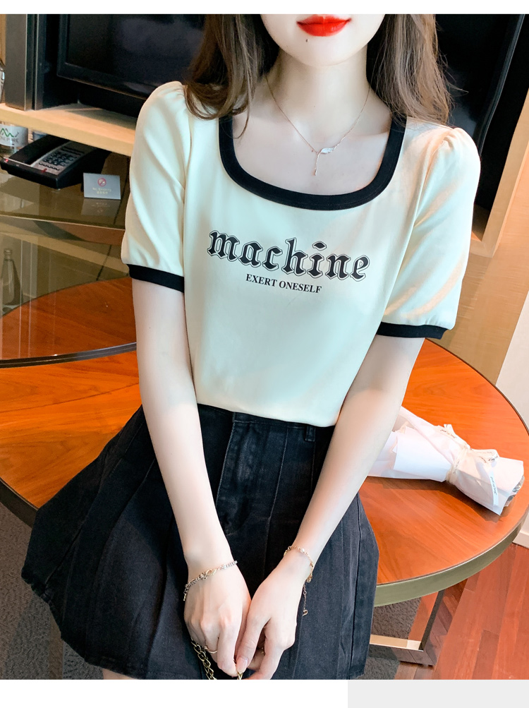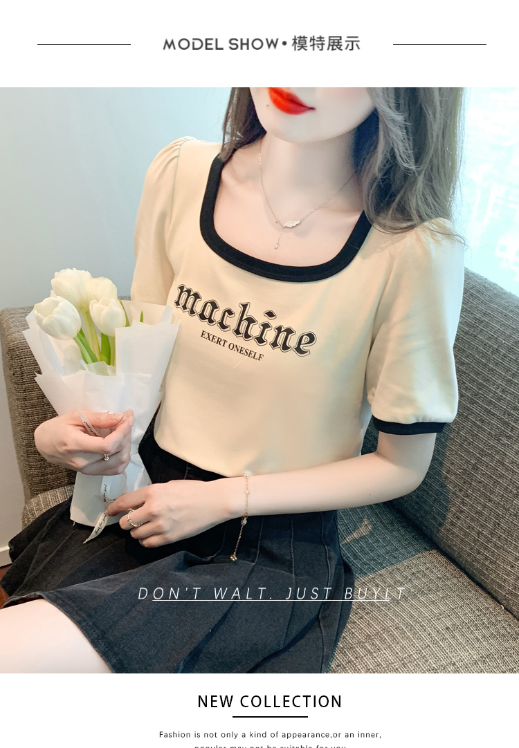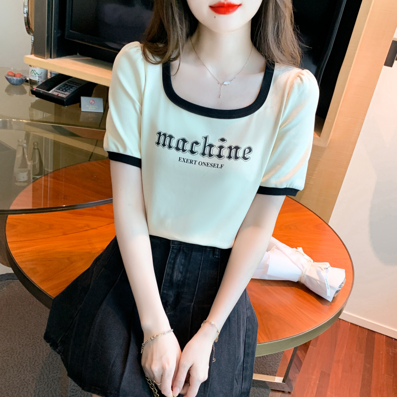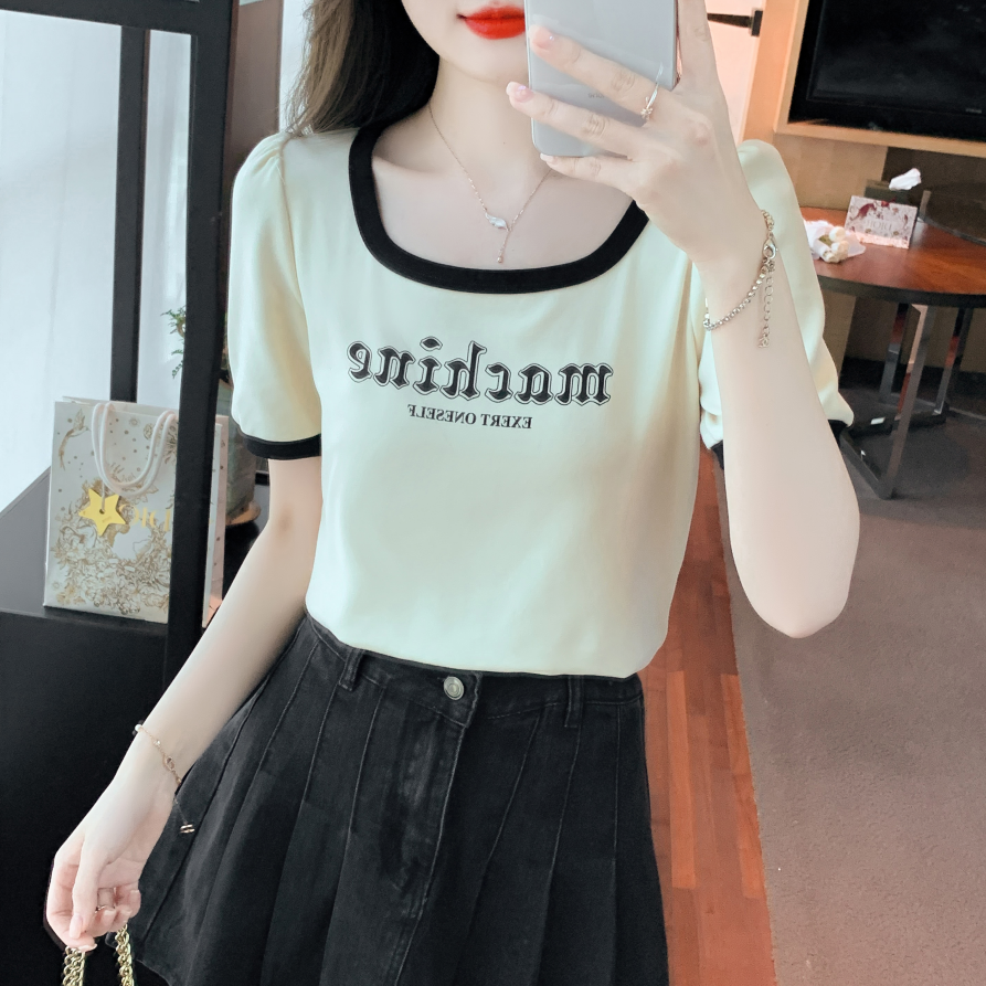 RY1661# 已出货2026夏季新款方圆领套头百搭纯棉印花T恤修身显瘦短袖上衣