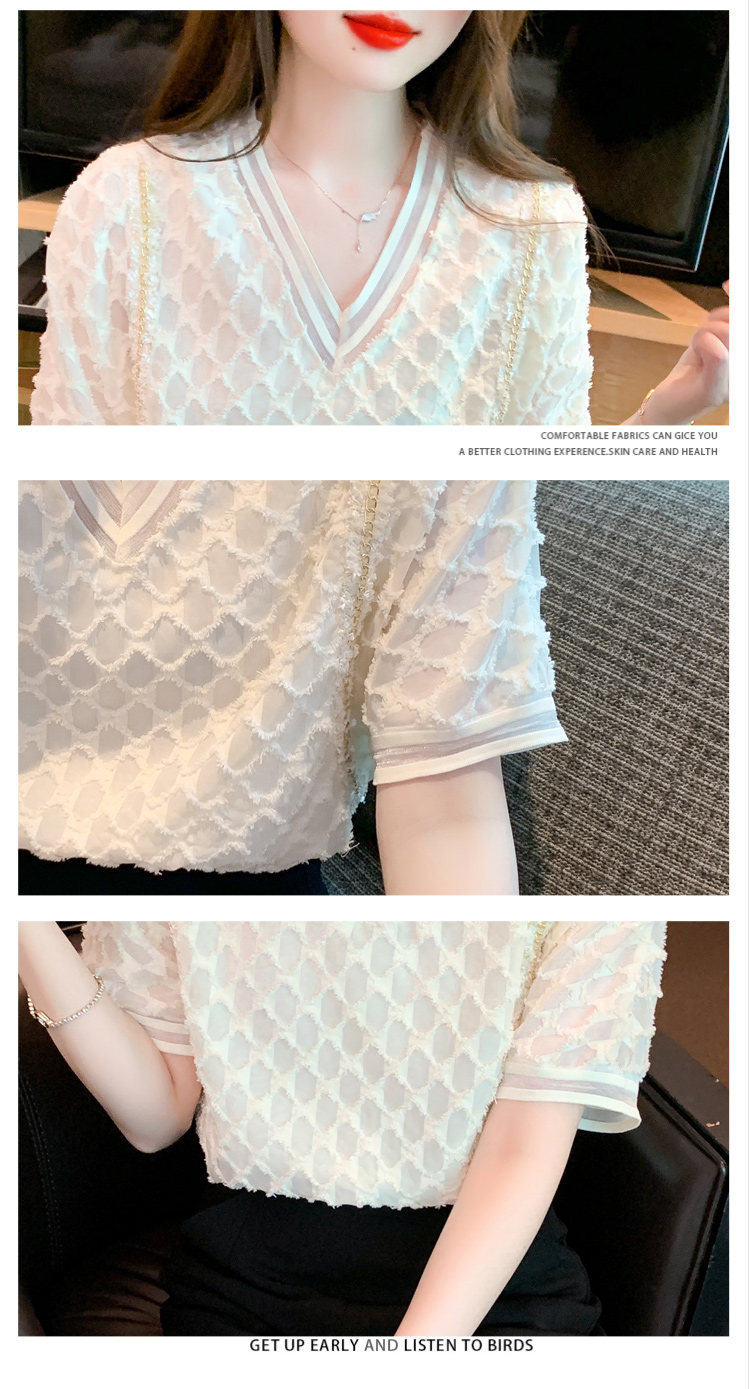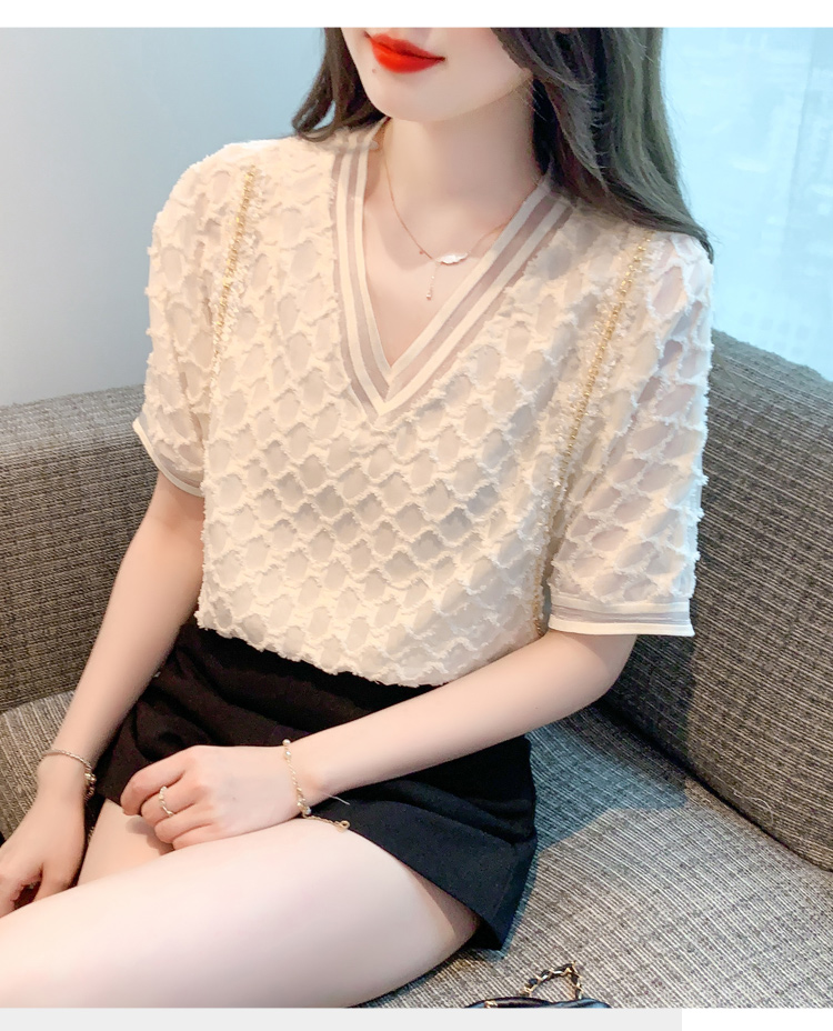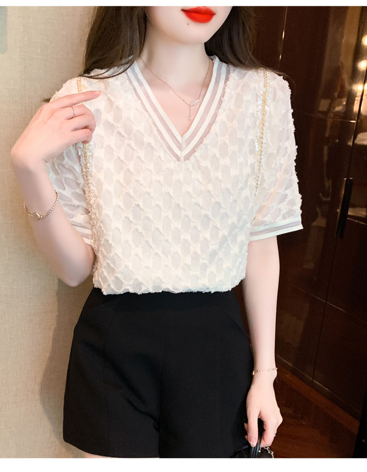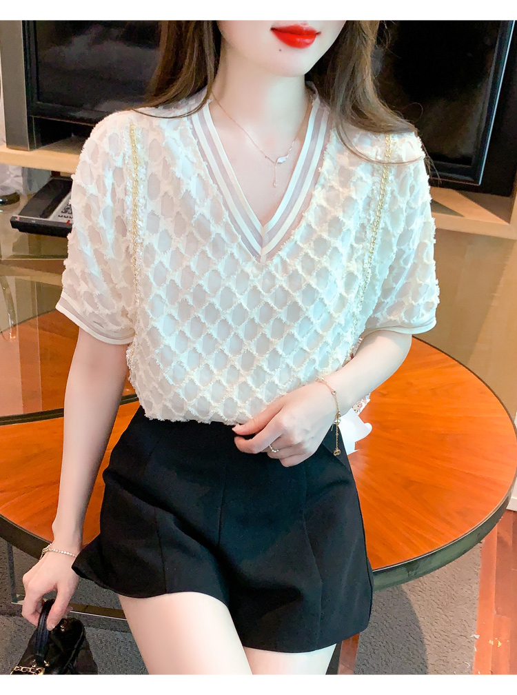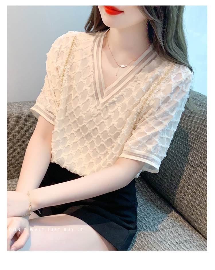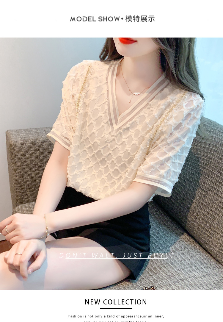 RY1666# 已出货2026夏季新款V领套头蕾丝衫雪纺衫格纹短袖洋气小衫气质女