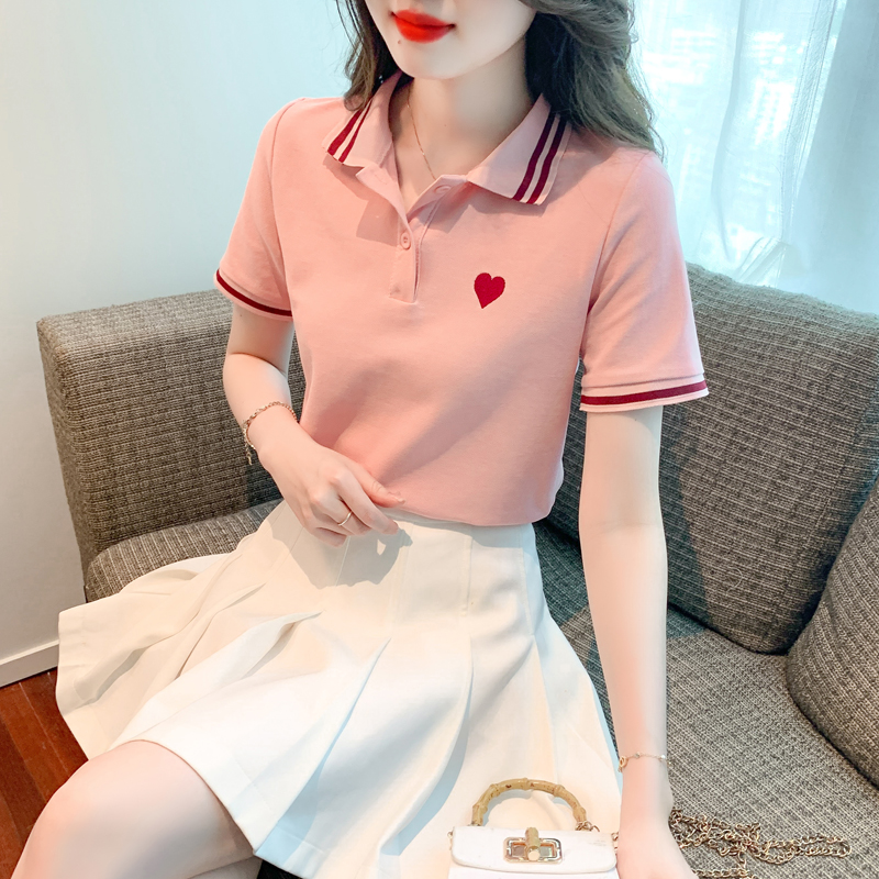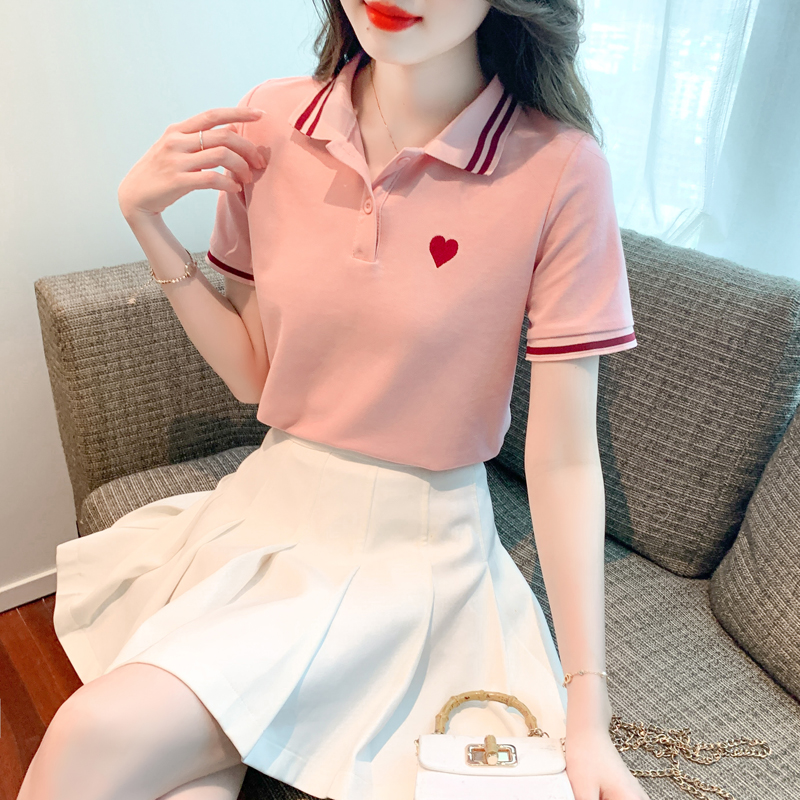 RY1669# 已出货2026夏季新款POLO领套头T恤爱心刺绣学院风衬衫工作服小衫