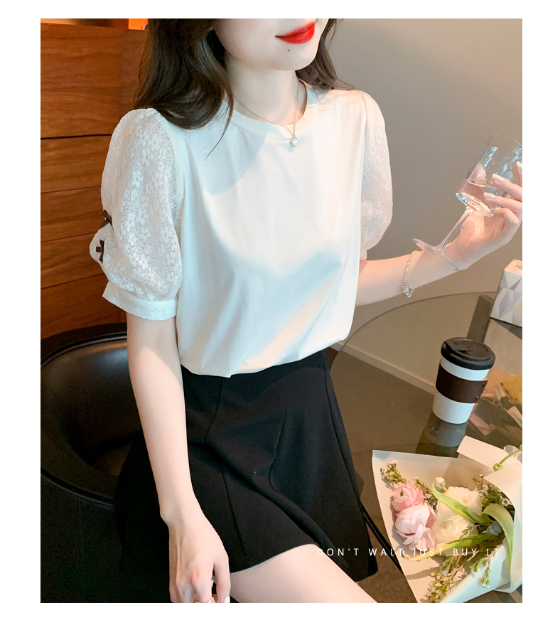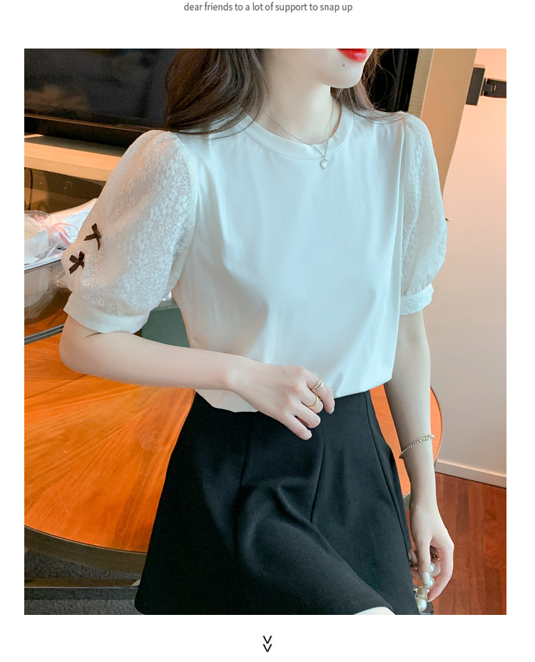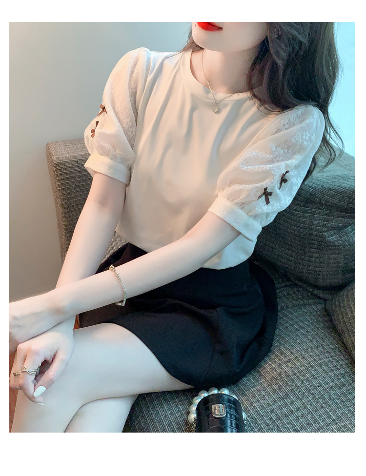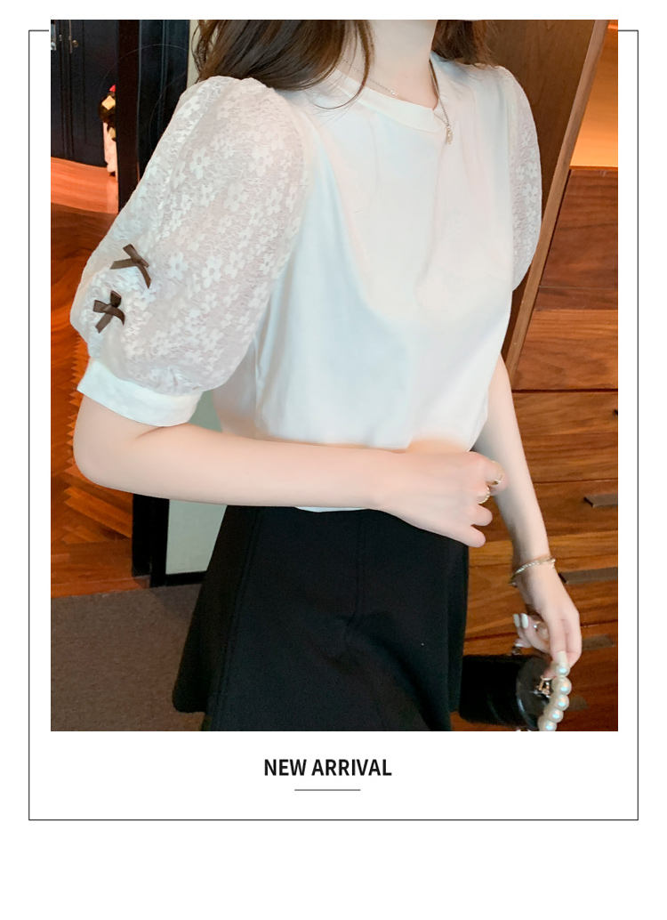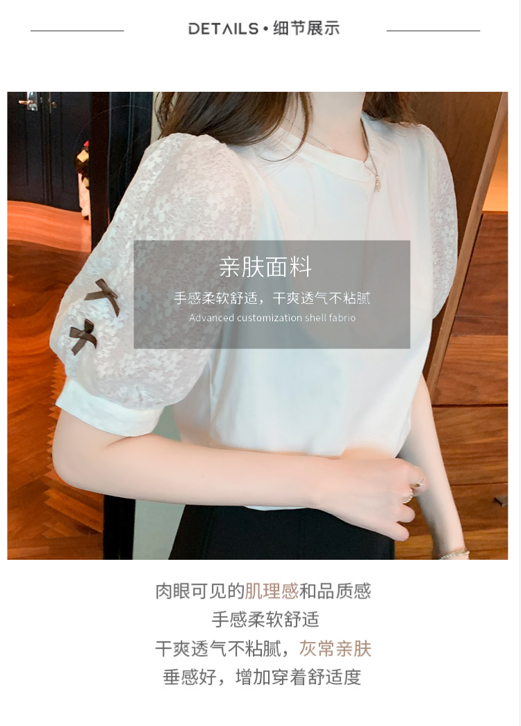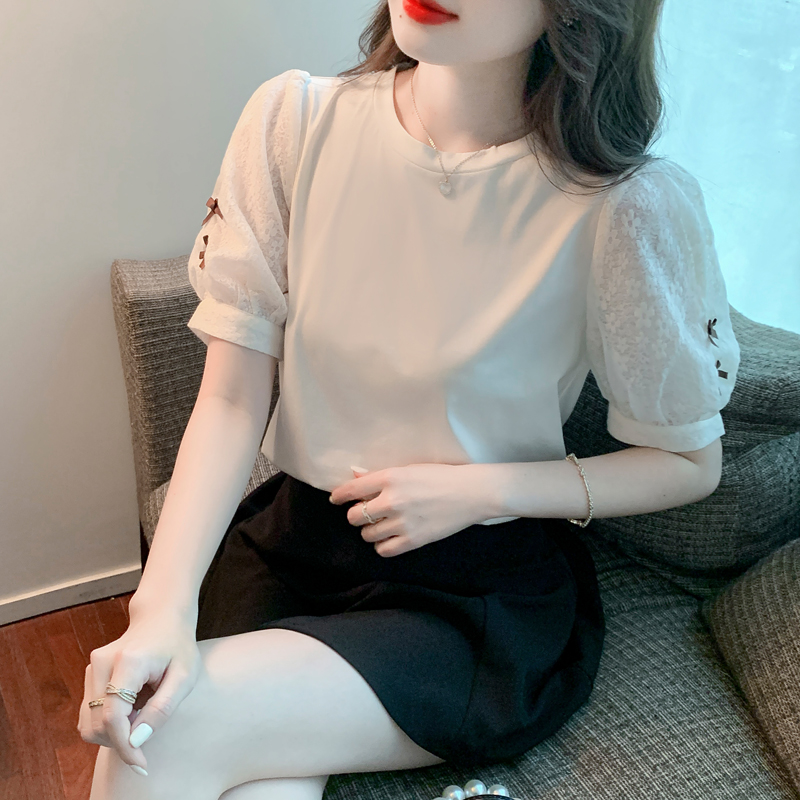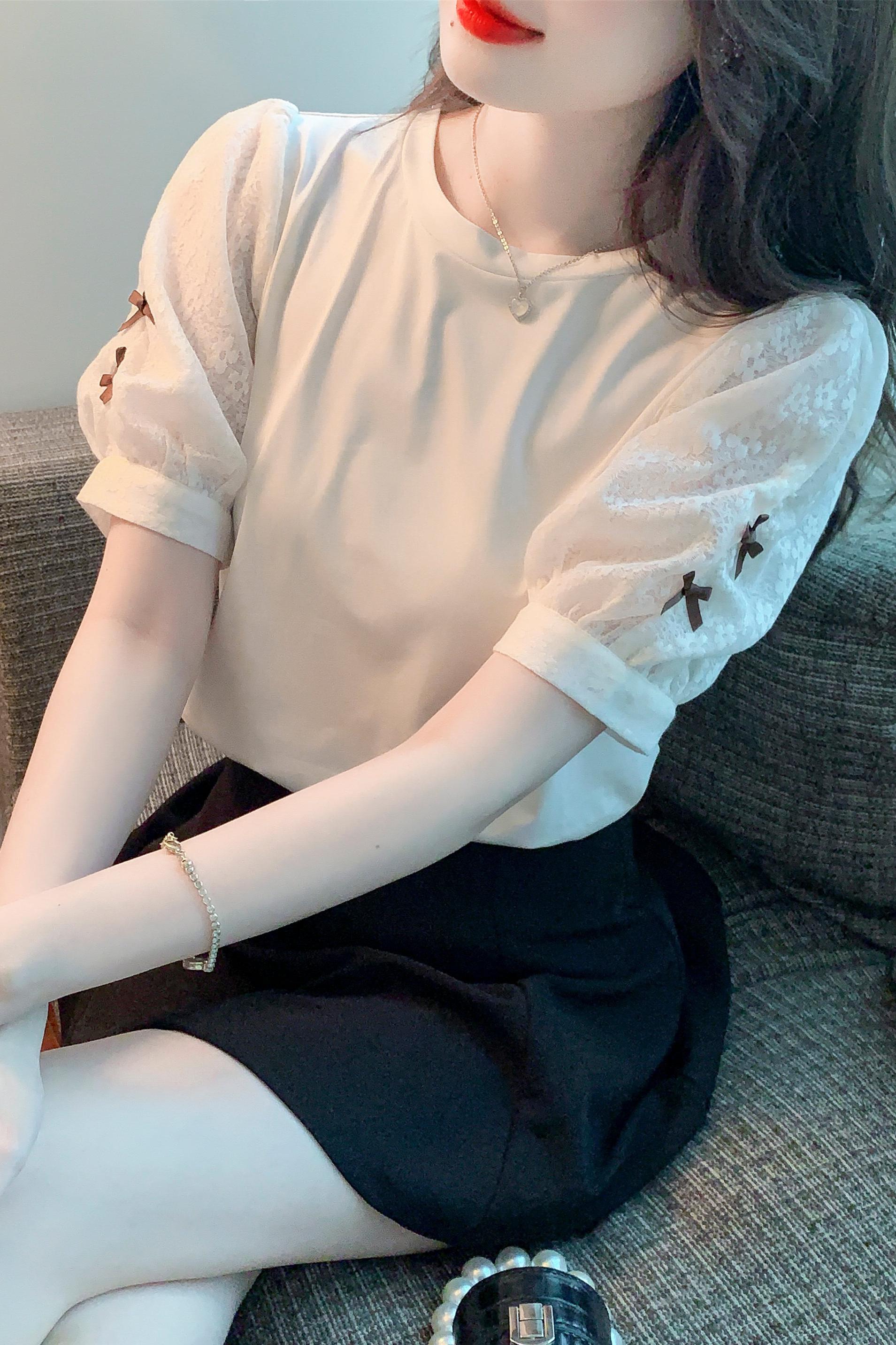 RY1675# 已出货2026夏季新款纯棉泡泡袖T恤蕾丝拼接蝴蝶结短袖上衣小衫女