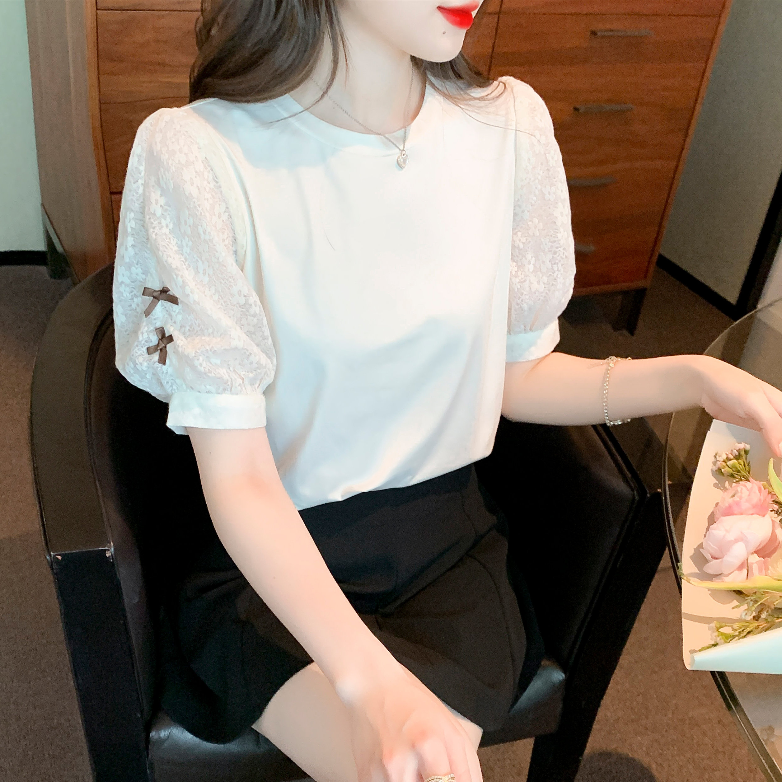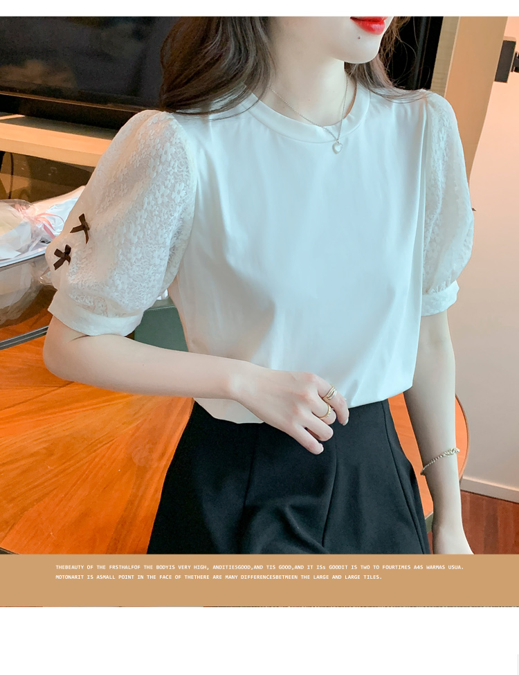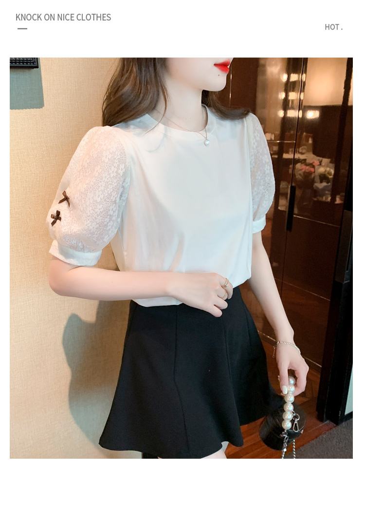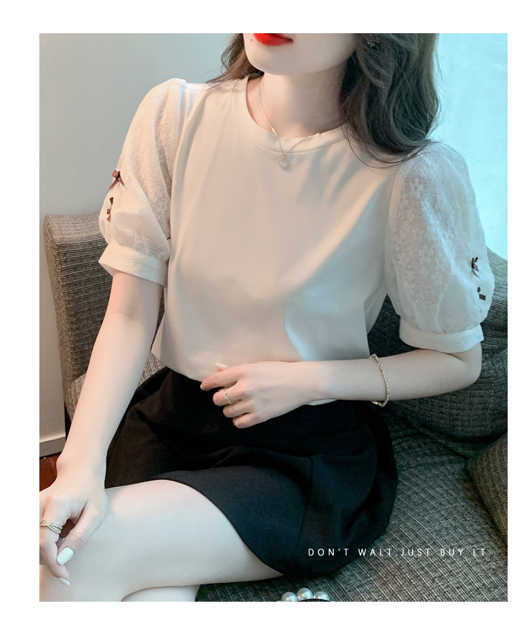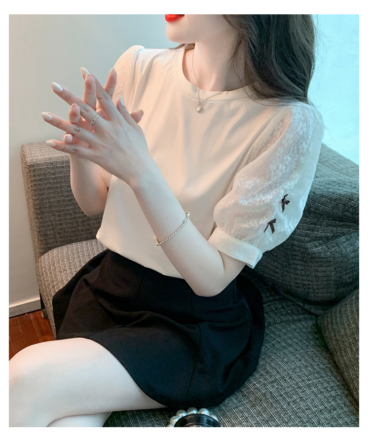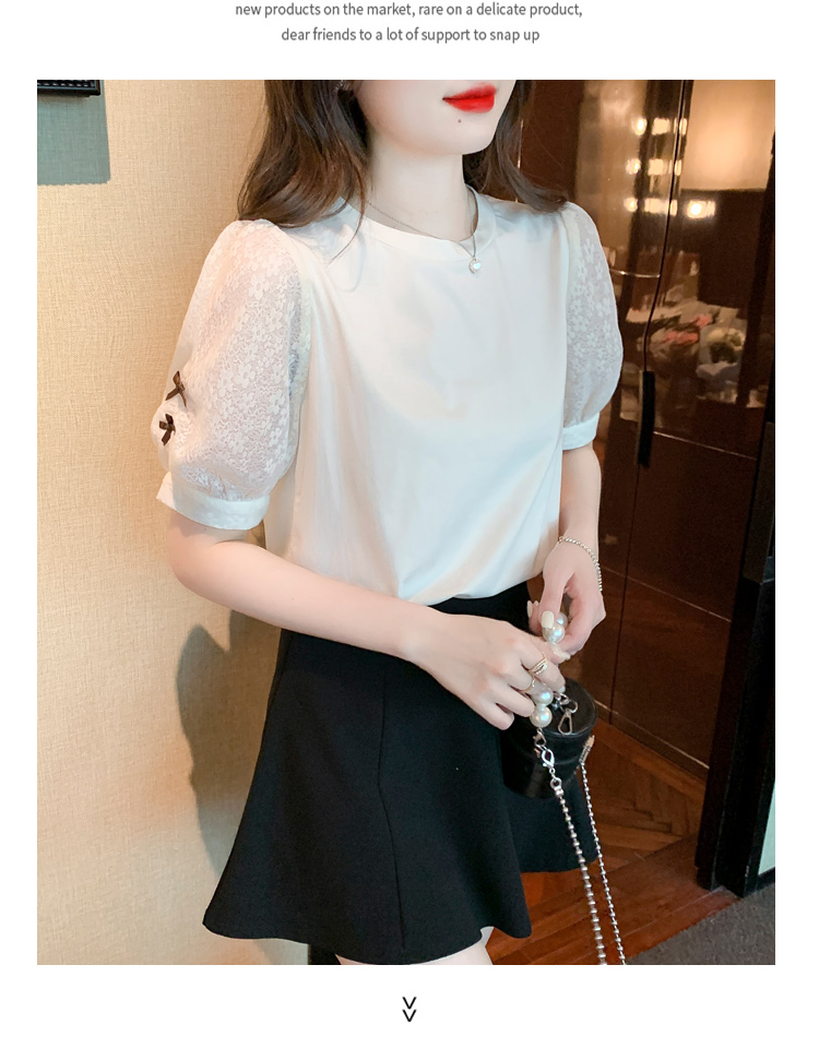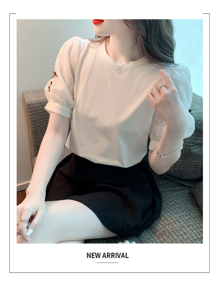 RY1675# 已出货2026夏季新款纯棉泡泡袖T恤蕾丝拼接蝴蝶结短袖上衣小衫女