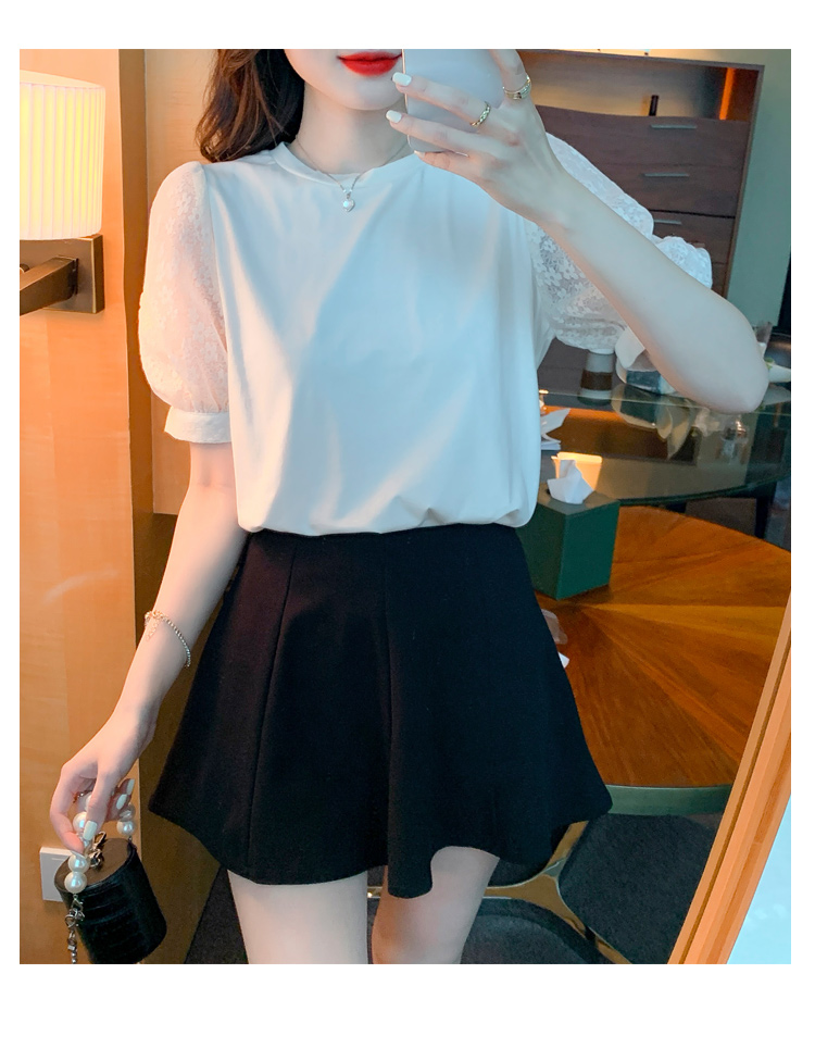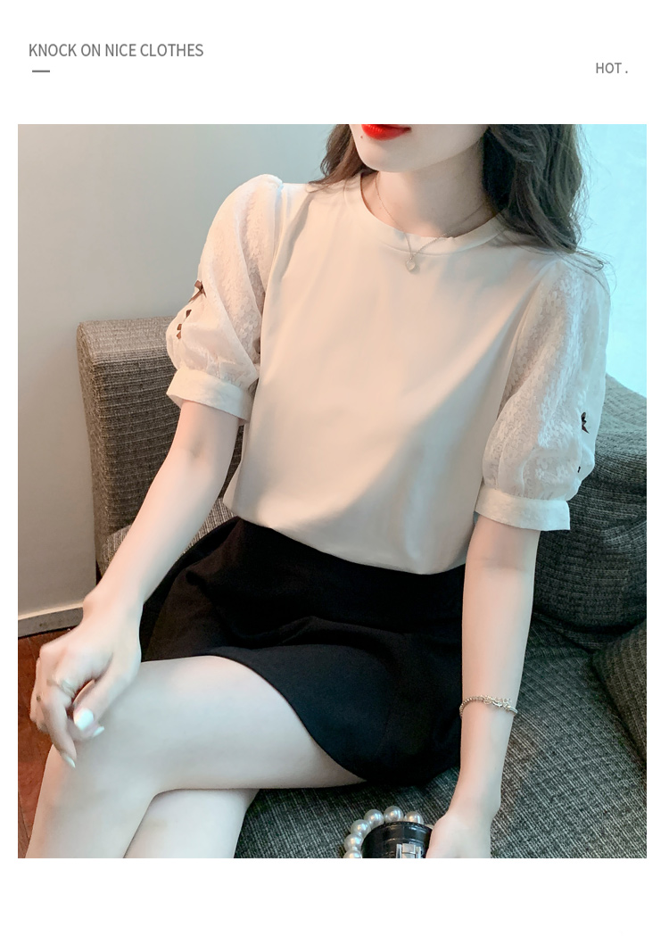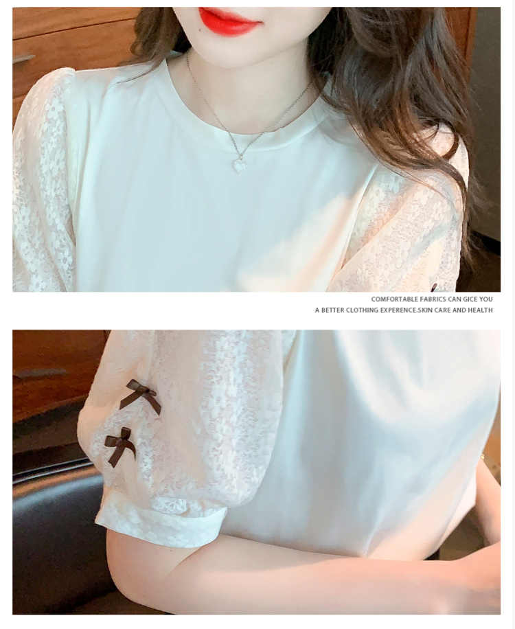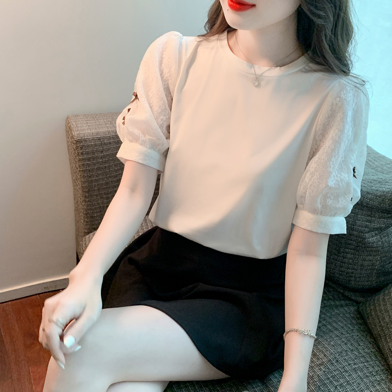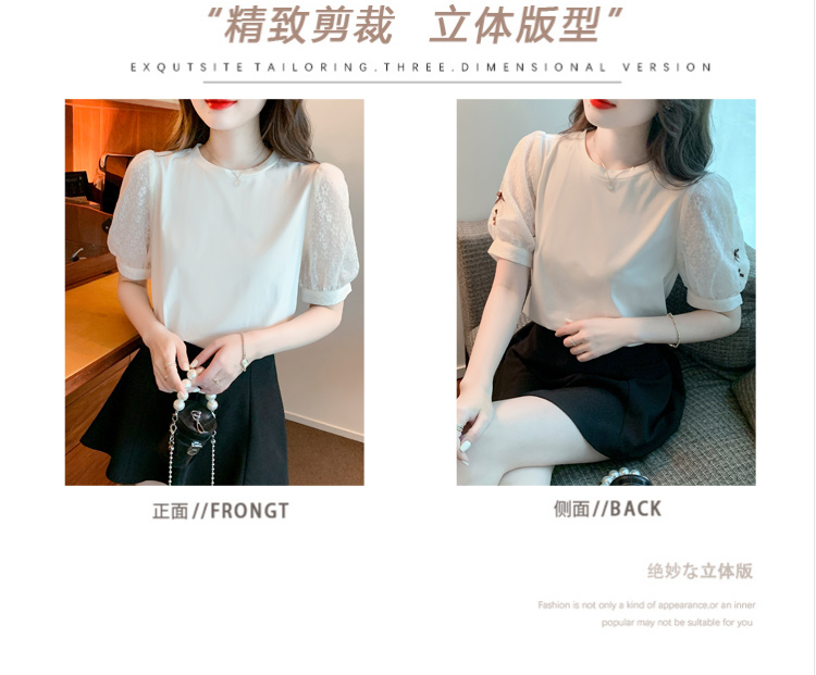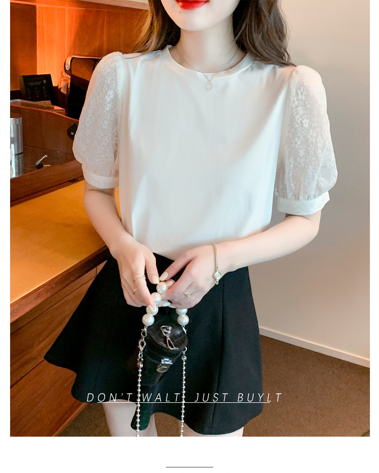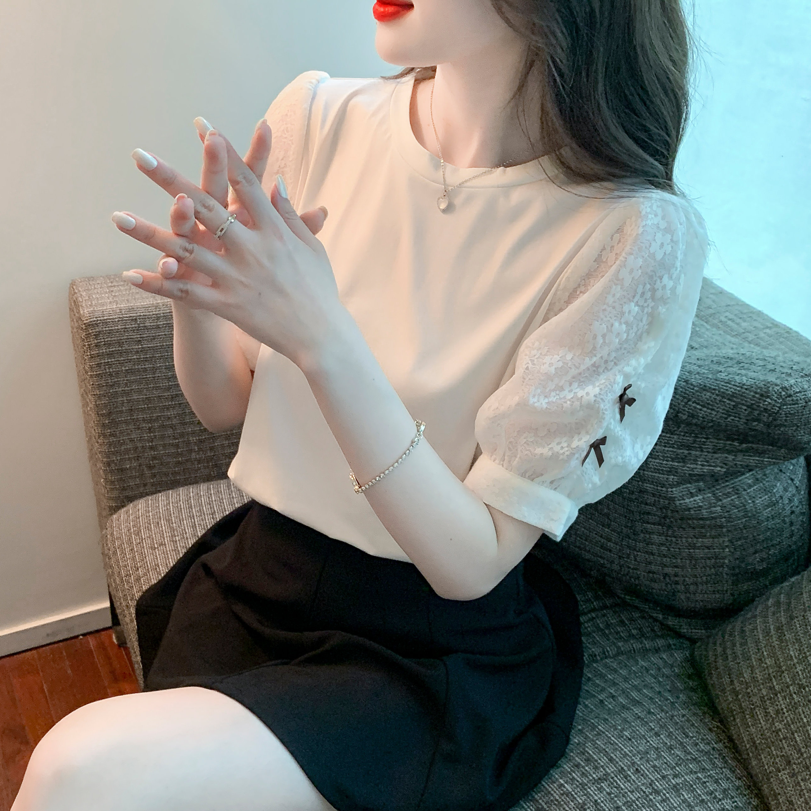 RY1675# 已出货2026夏季新款纯棉泡泡袖T恤蕾丝拼接蝴蝶结短袖上衣小衫女