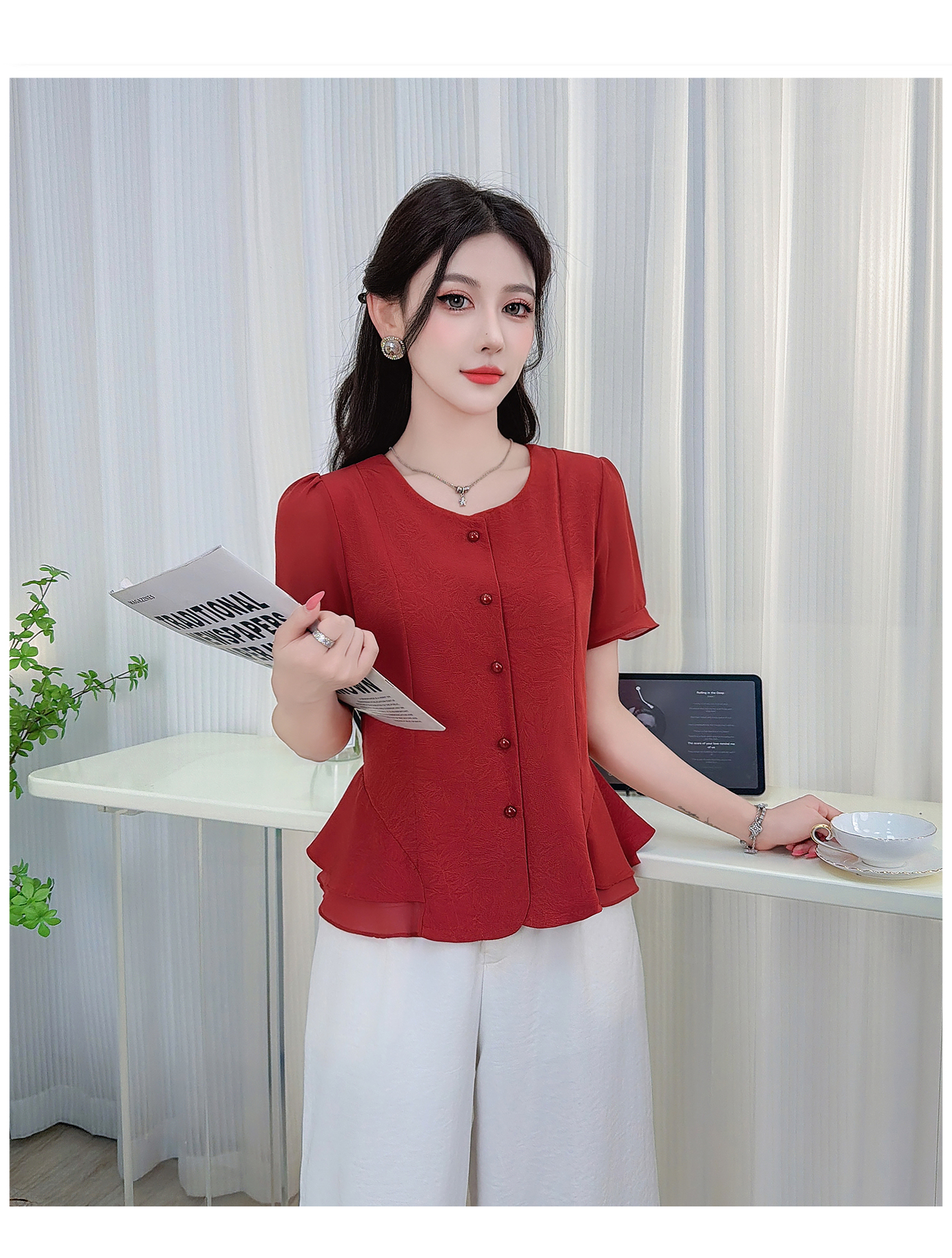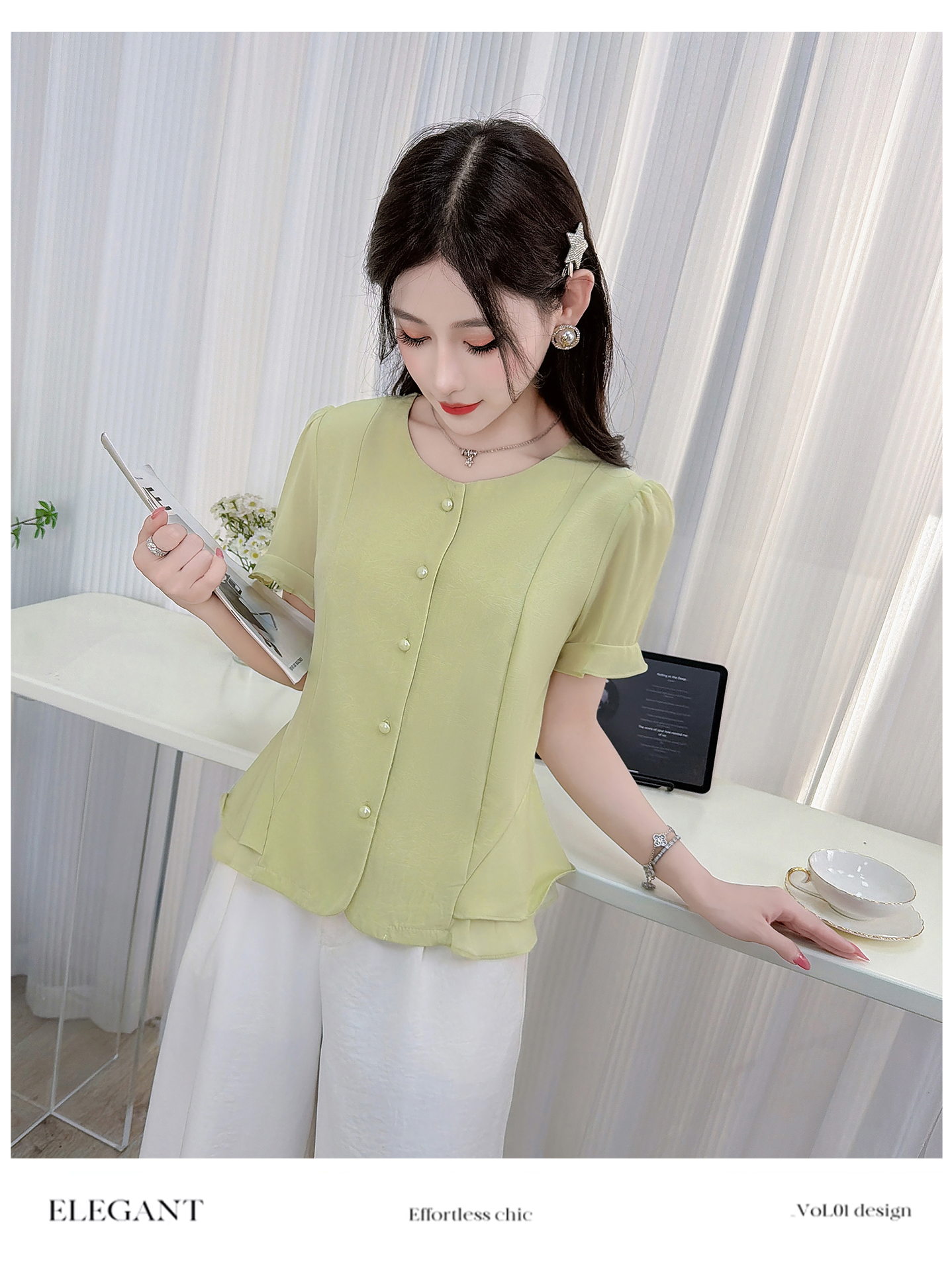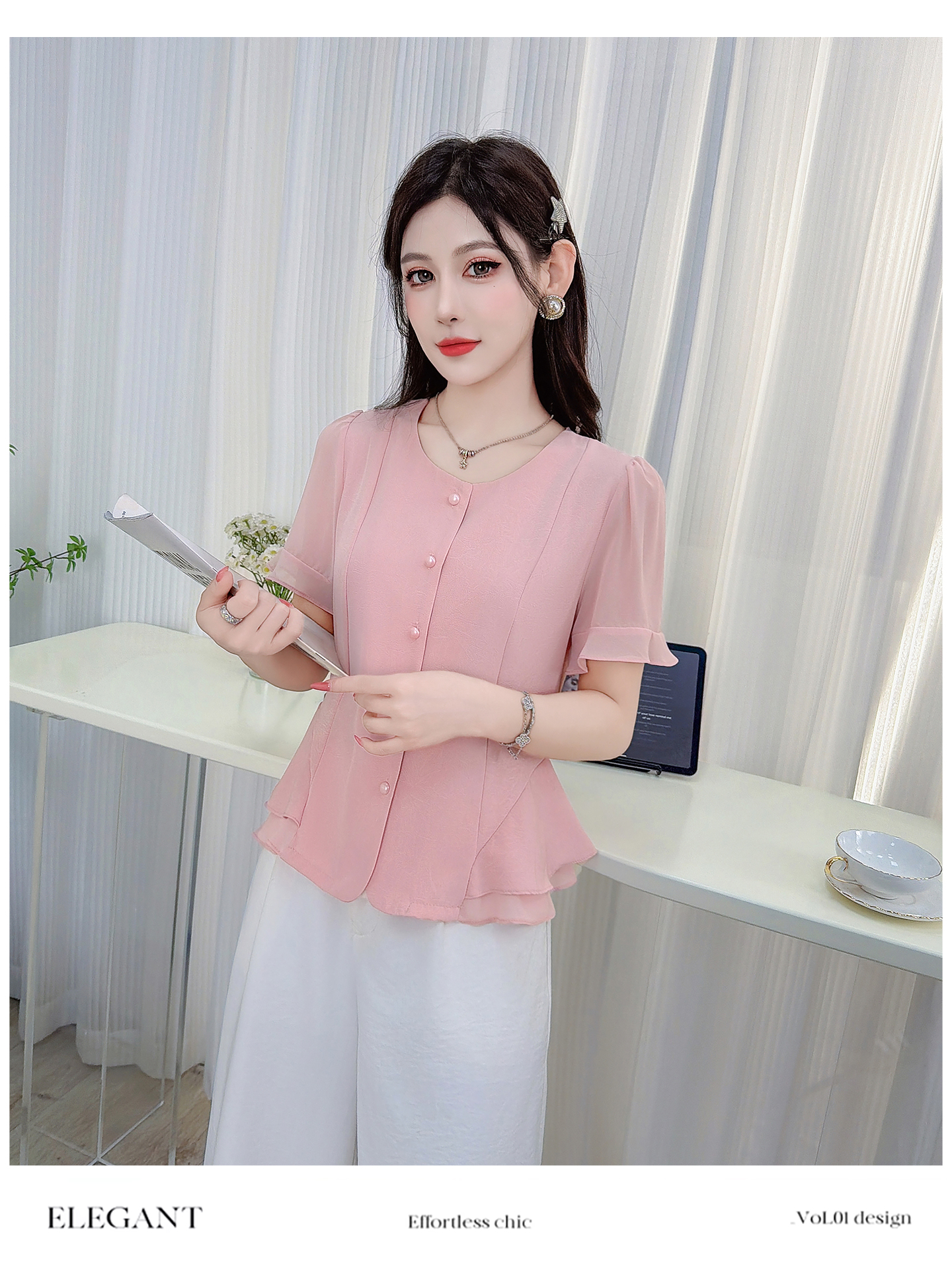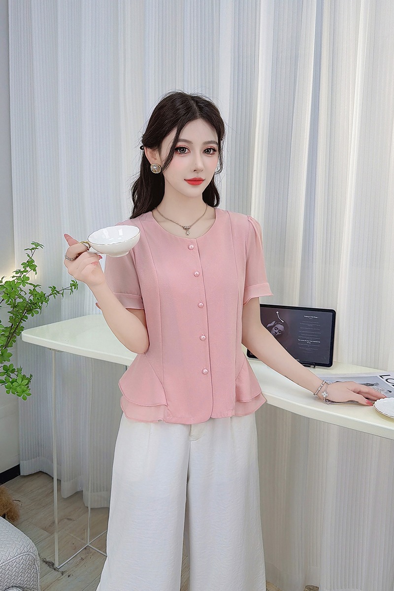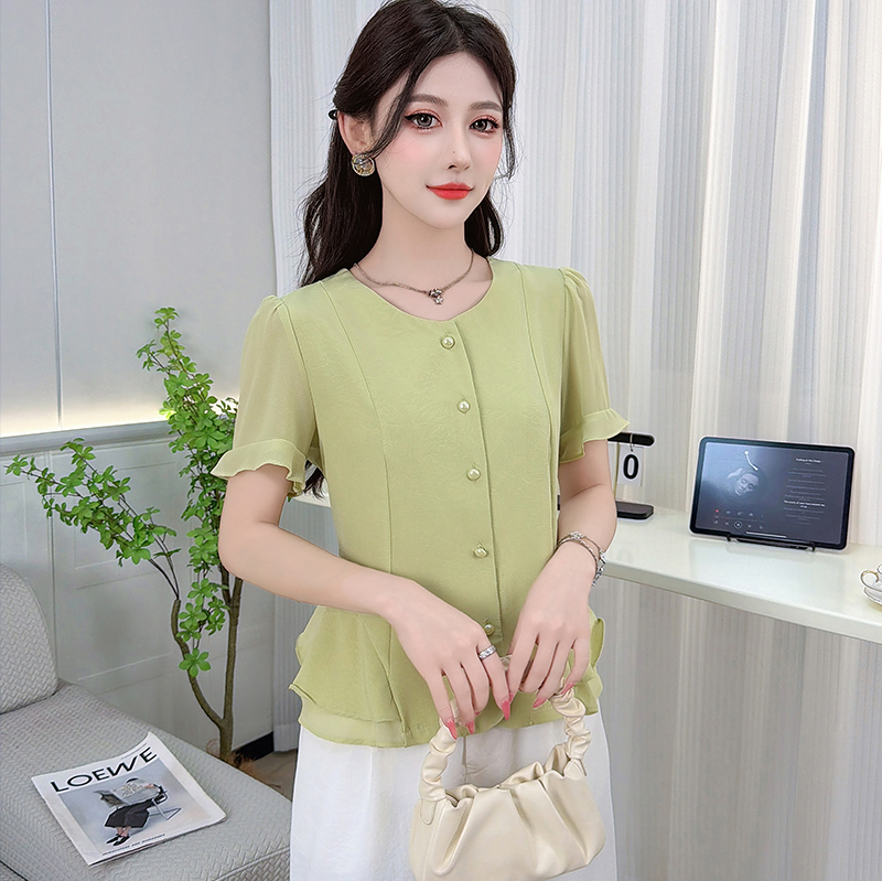 RY3344#时尚短袖衬衫女2026夏季新款洋气显瘦设计感减龄百搭收腰气质上衣