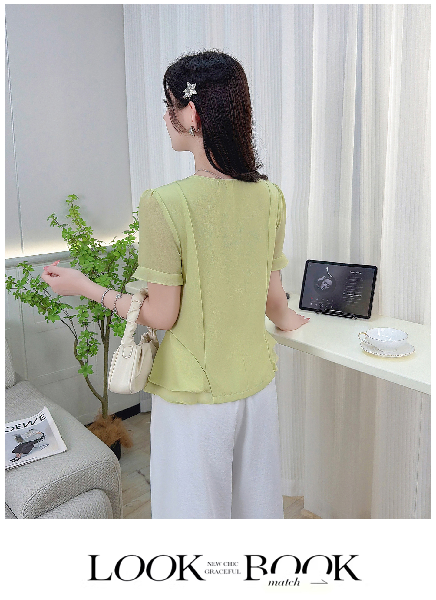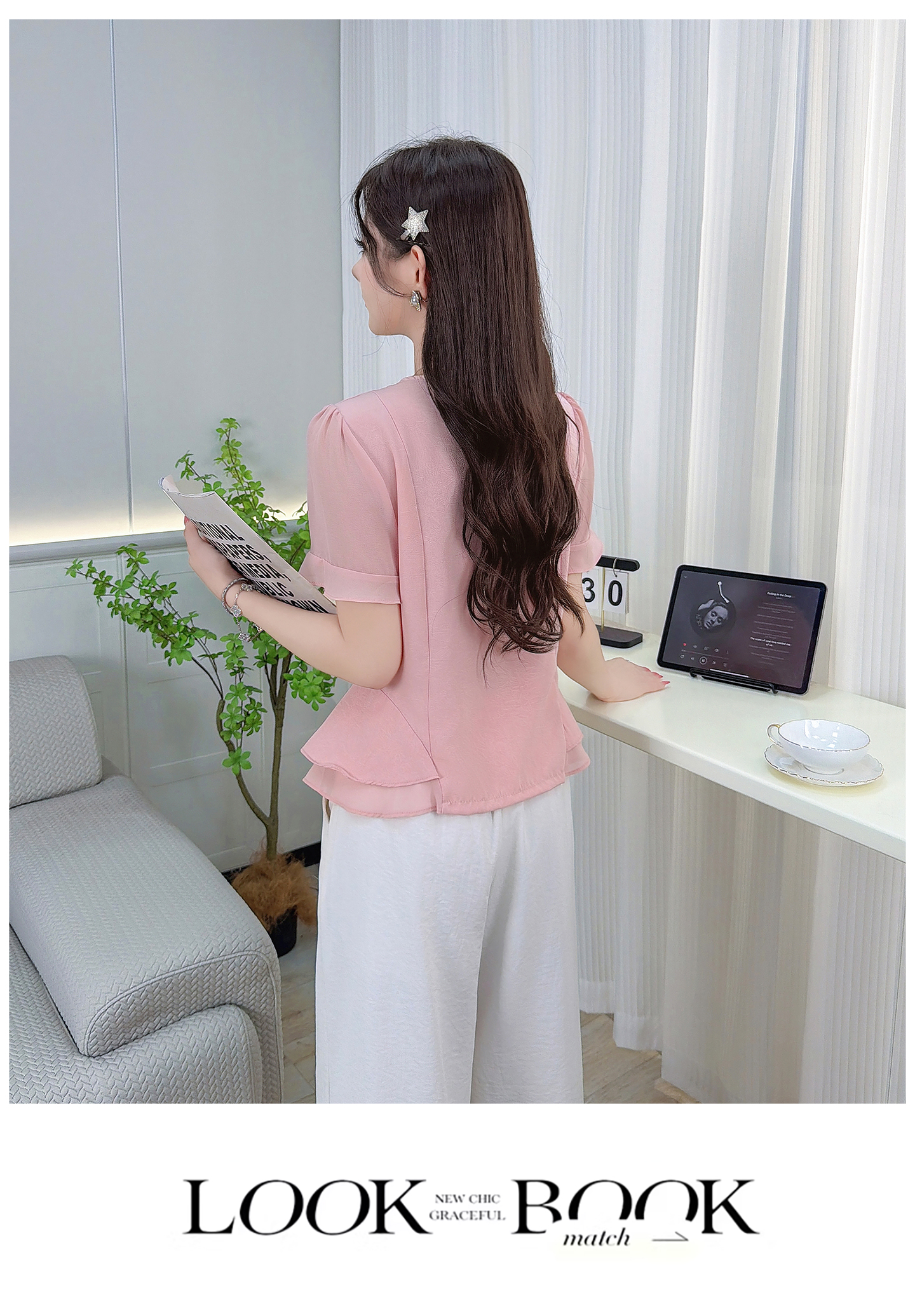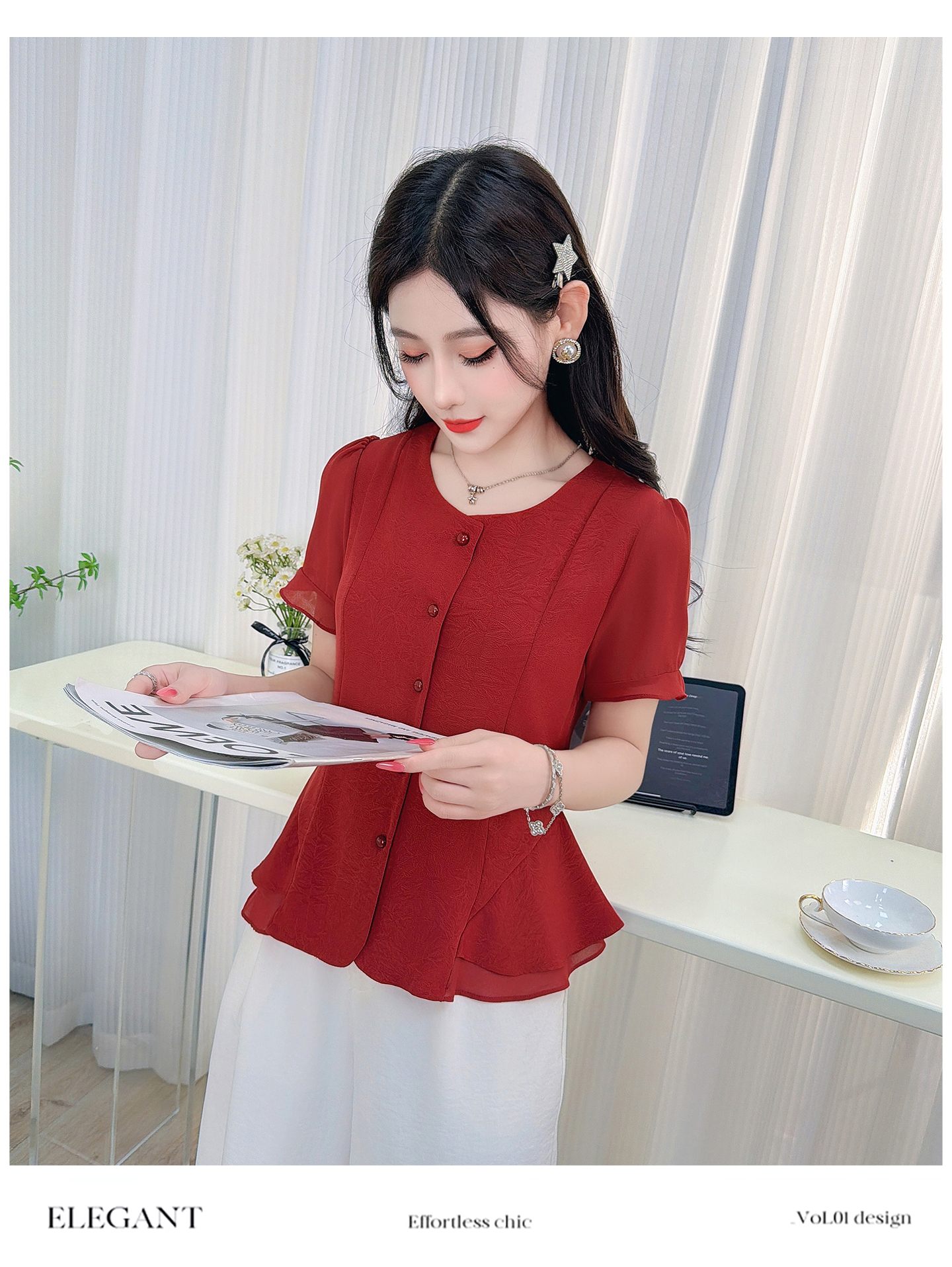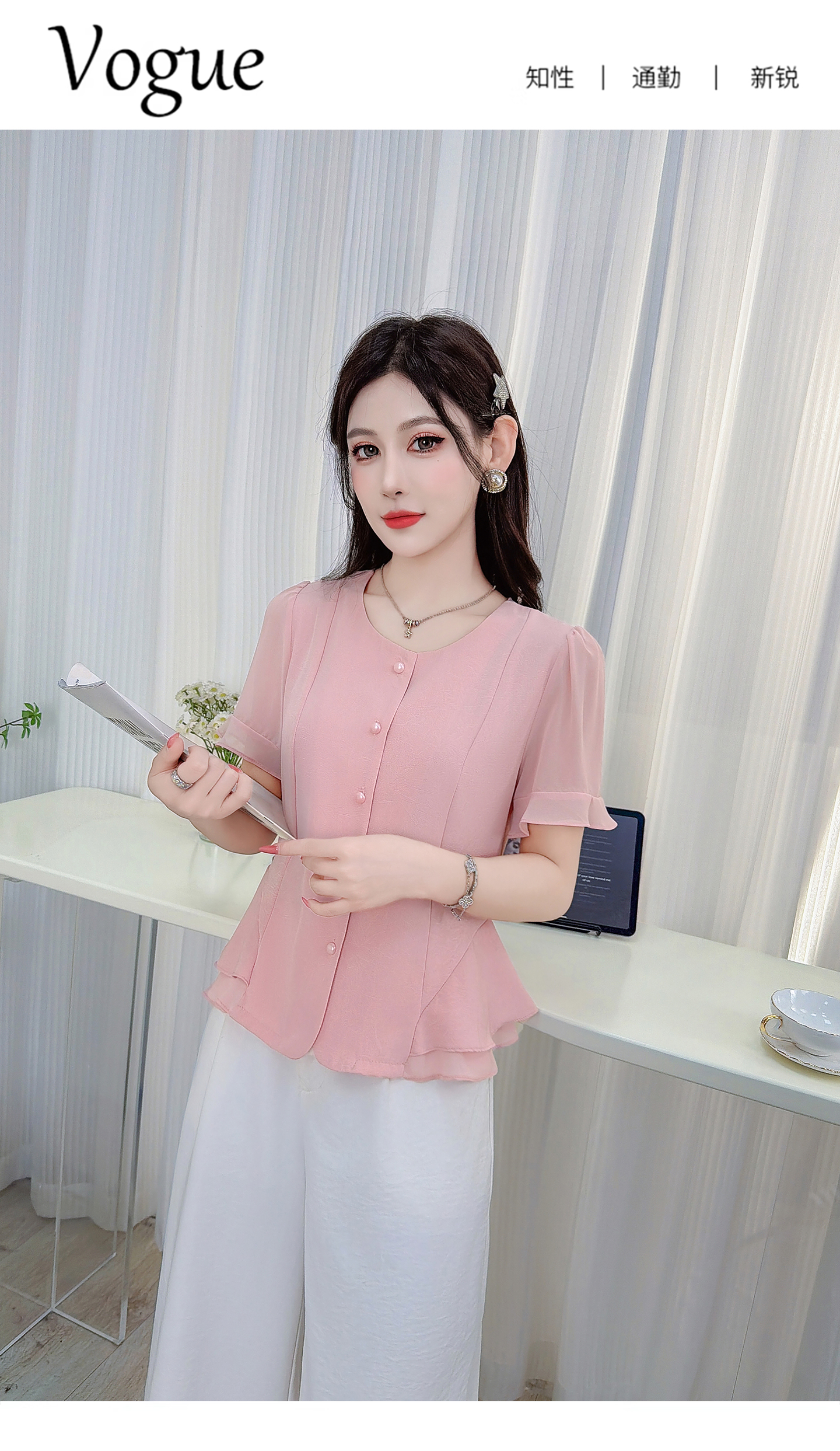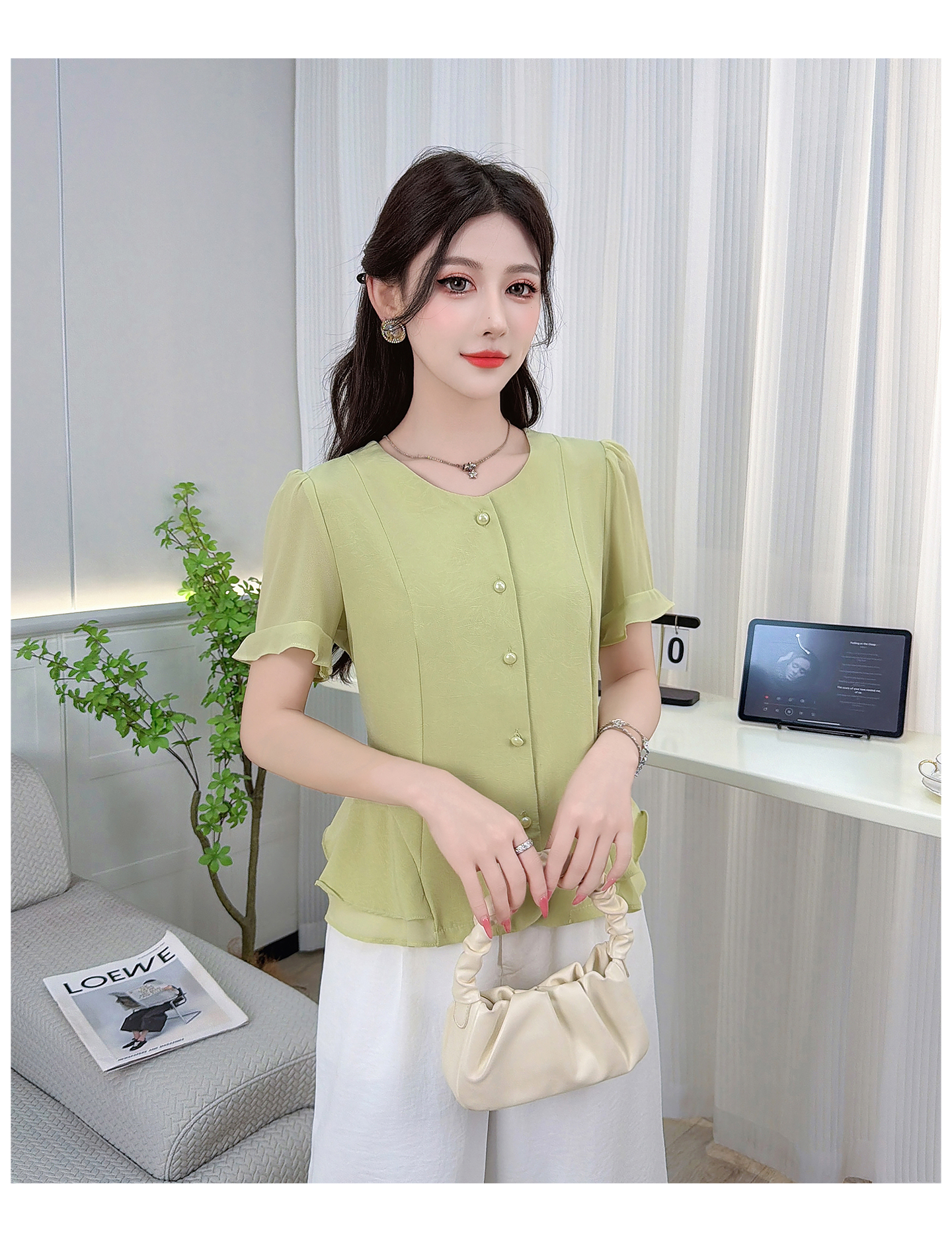 RY3344#时尚短袖衬衫女2026夏季新款洋气显瘦设计感减龄百搭收腰气质上衣