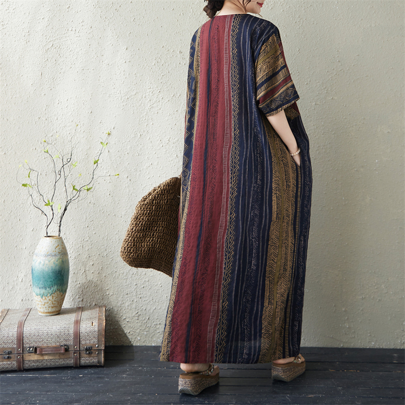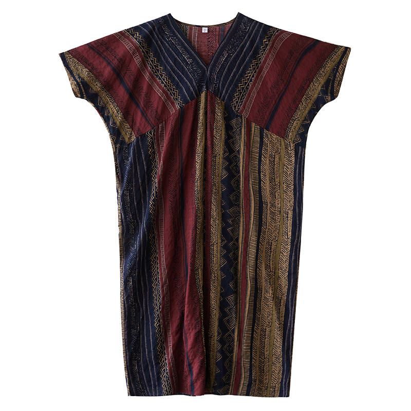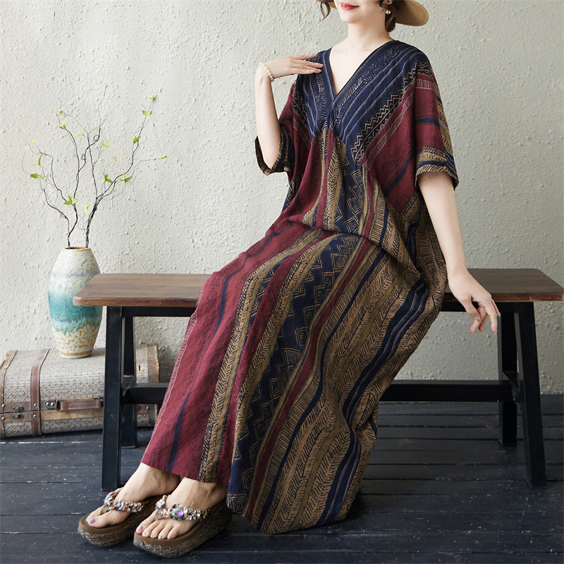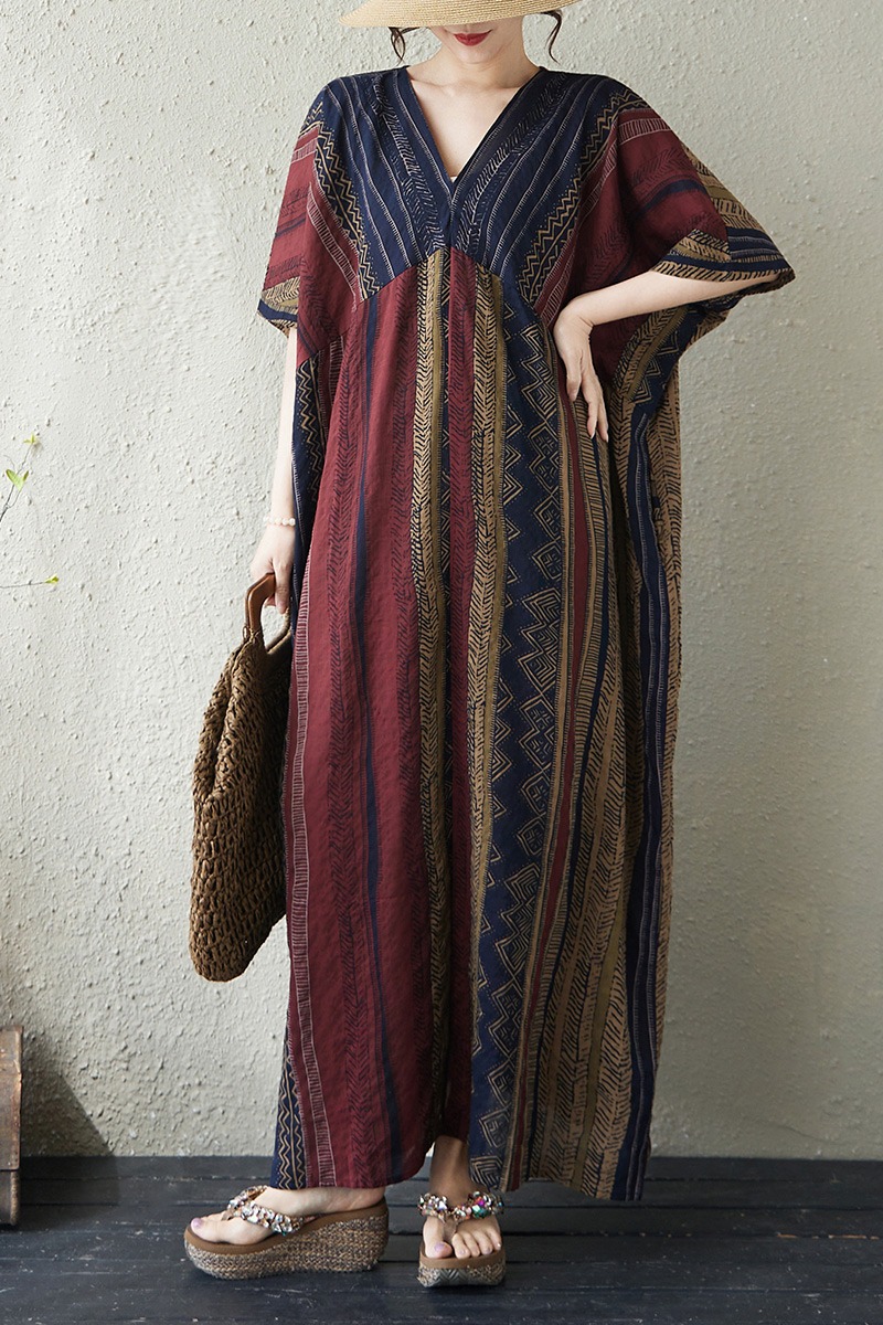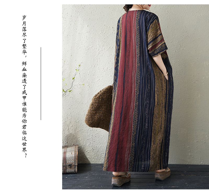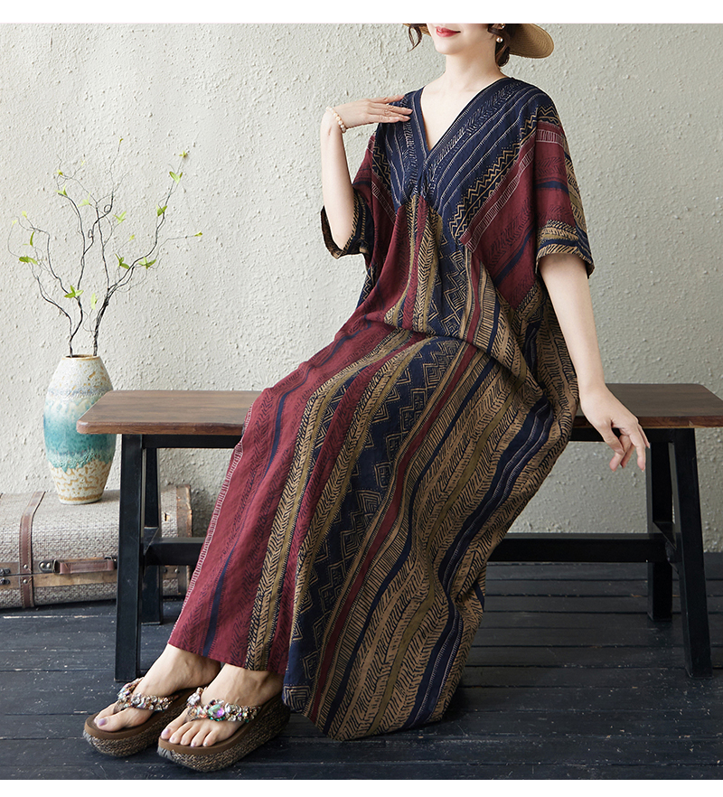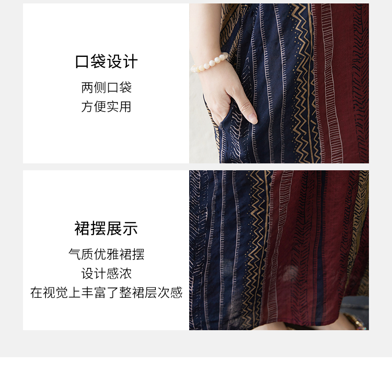 RY3351# 实拍大码原创法式高级感短袖v领薄棉麻印花宽松显瘦连衣裙女夏季
