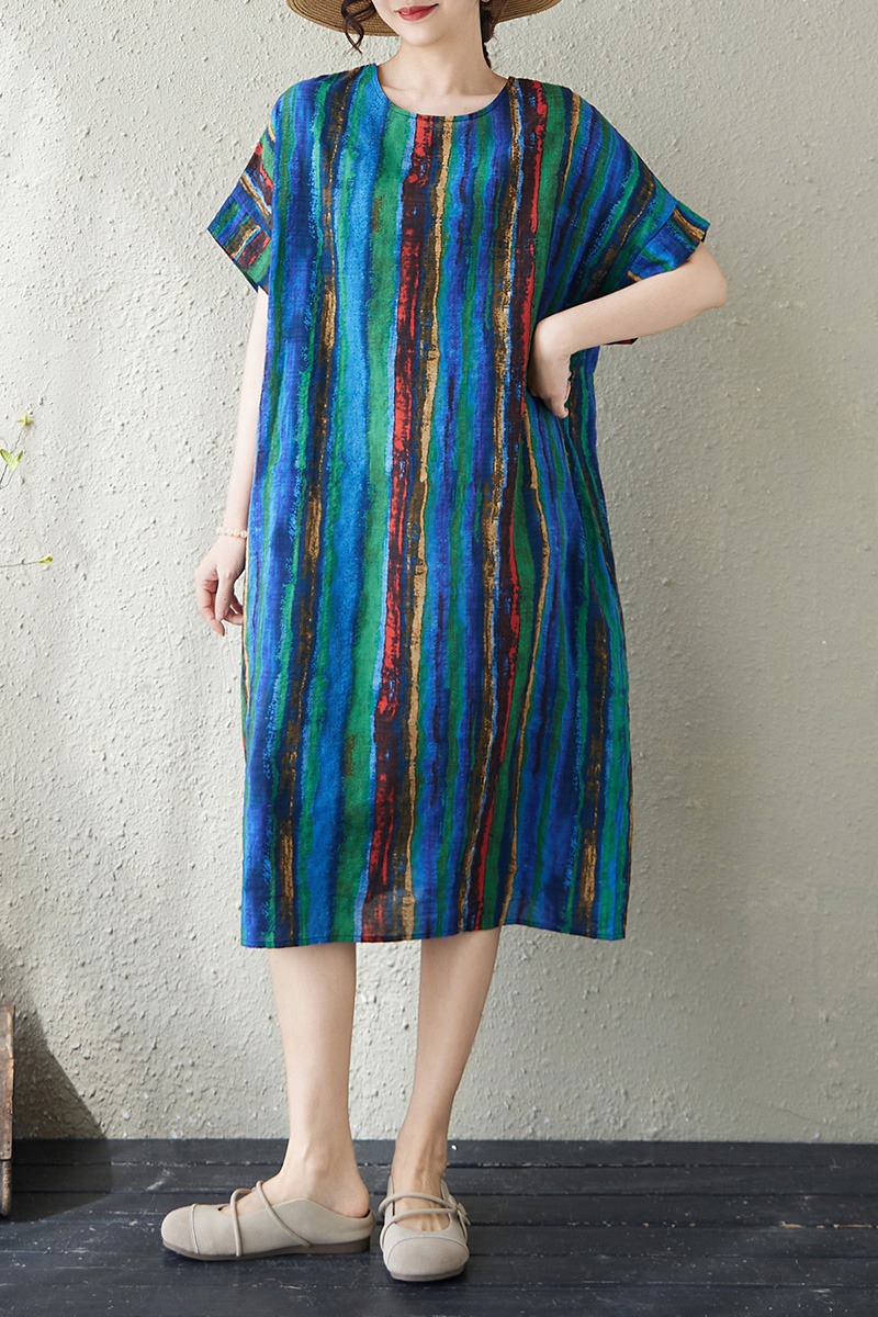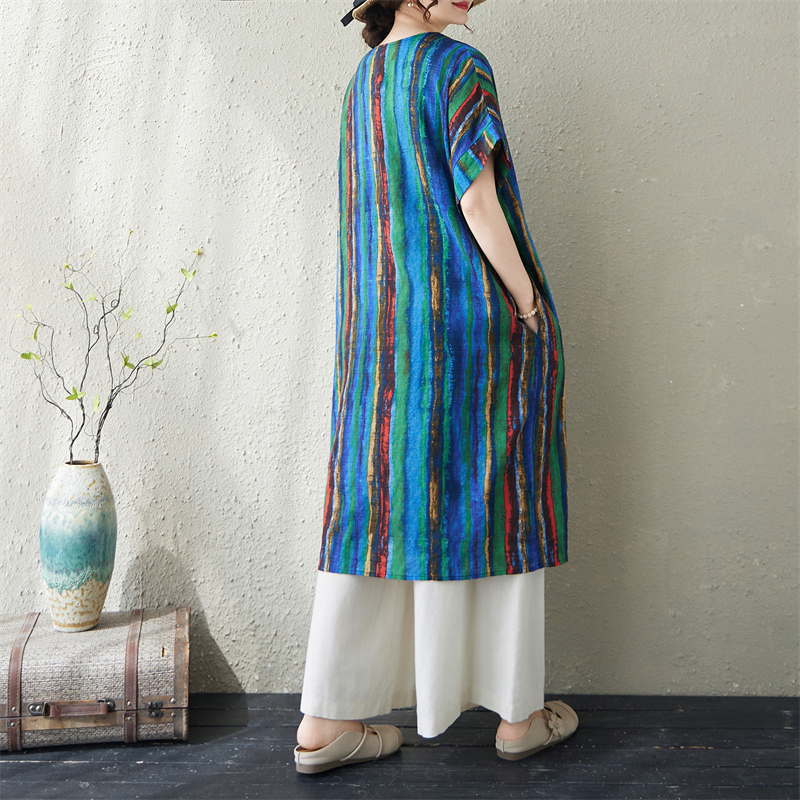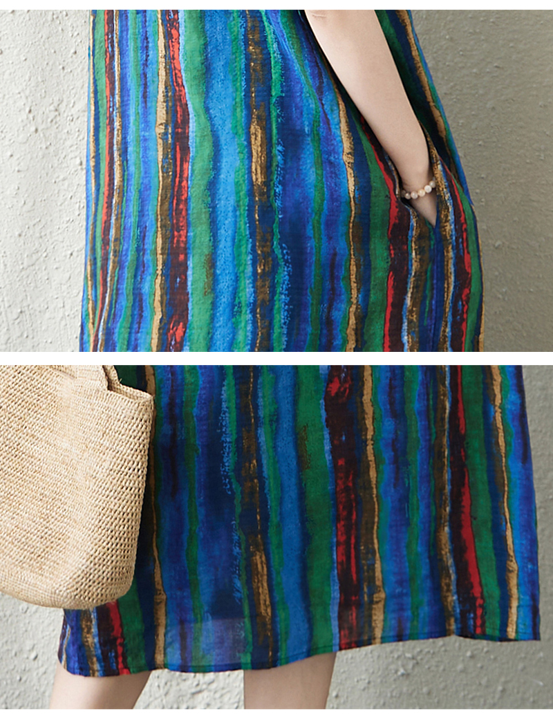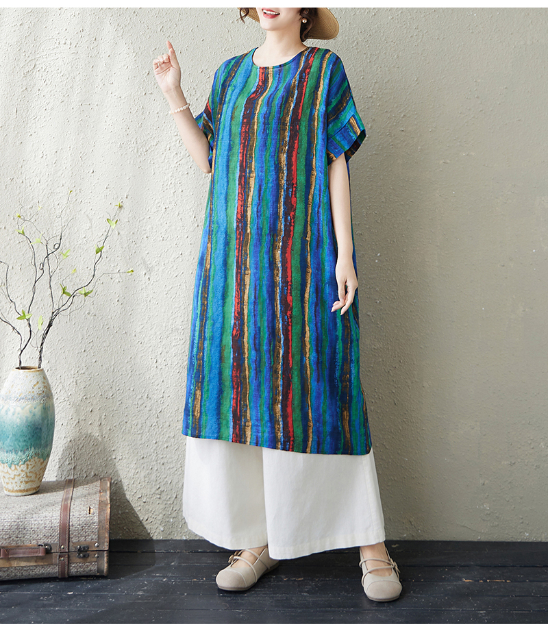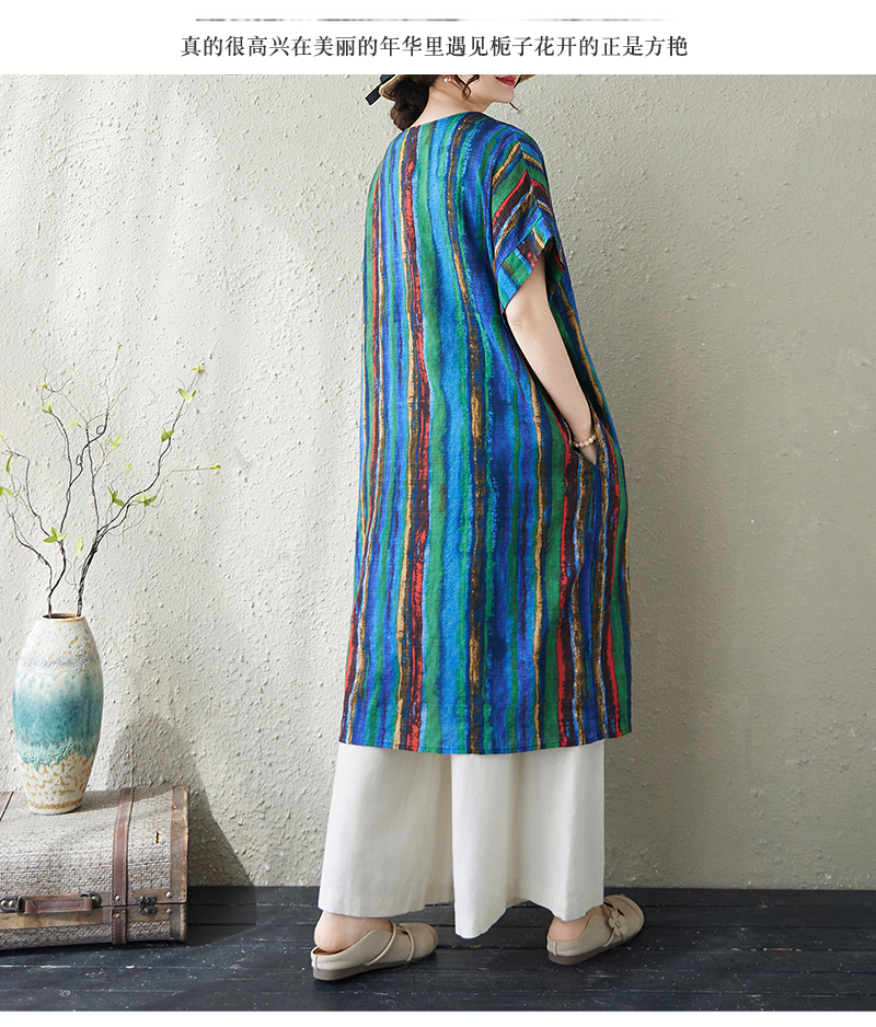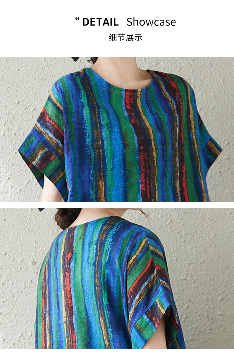 RY3355# 实拍26夏季新款胖mm薄棉麻印花女气质过膝中长款短袖连衣裙文艺女