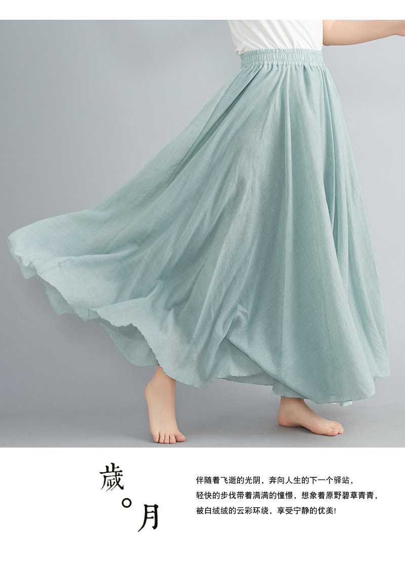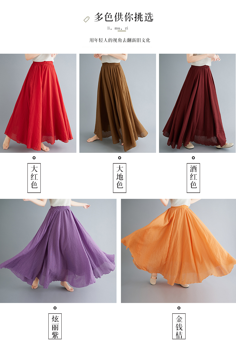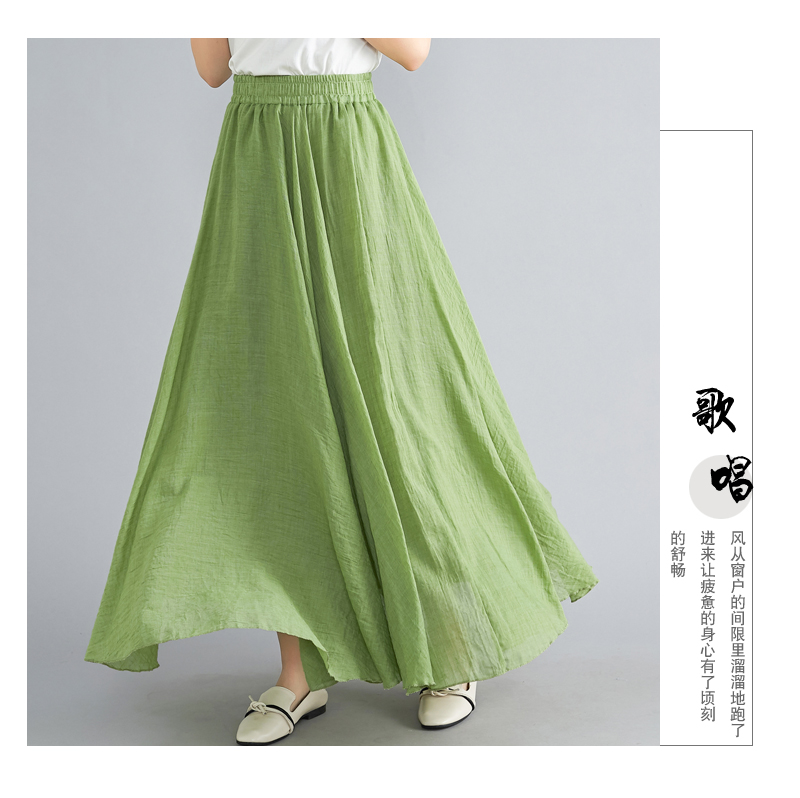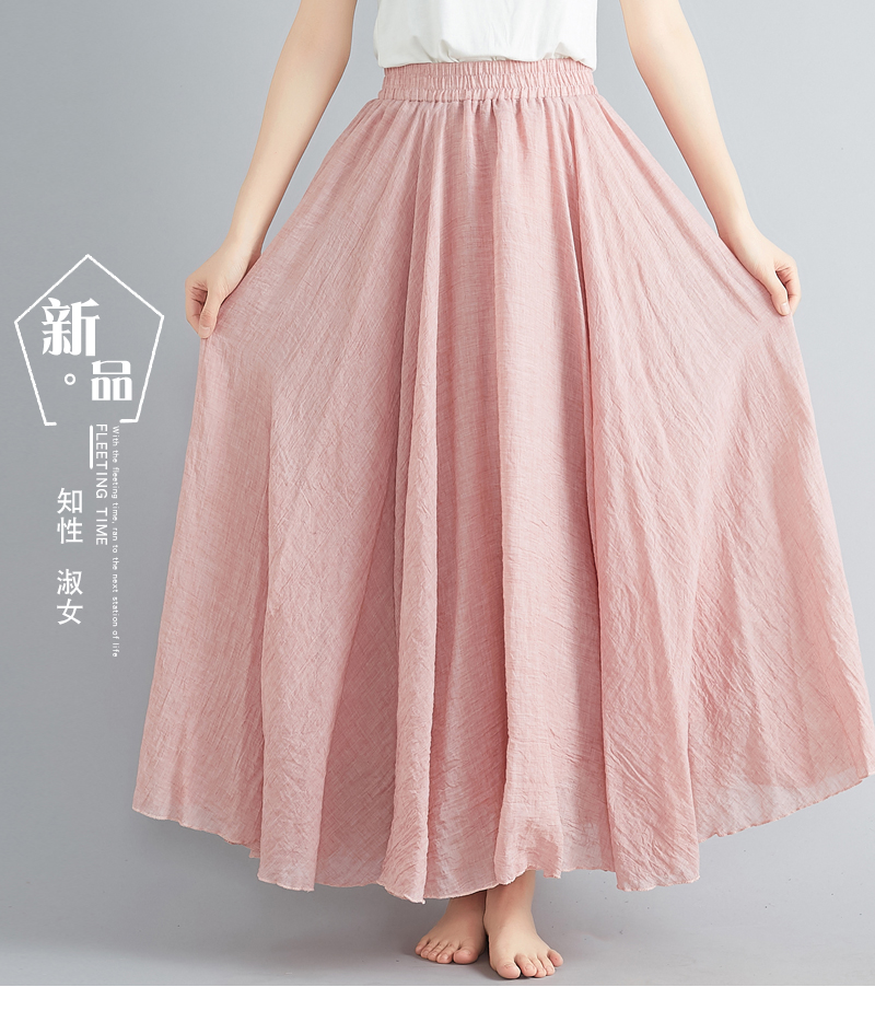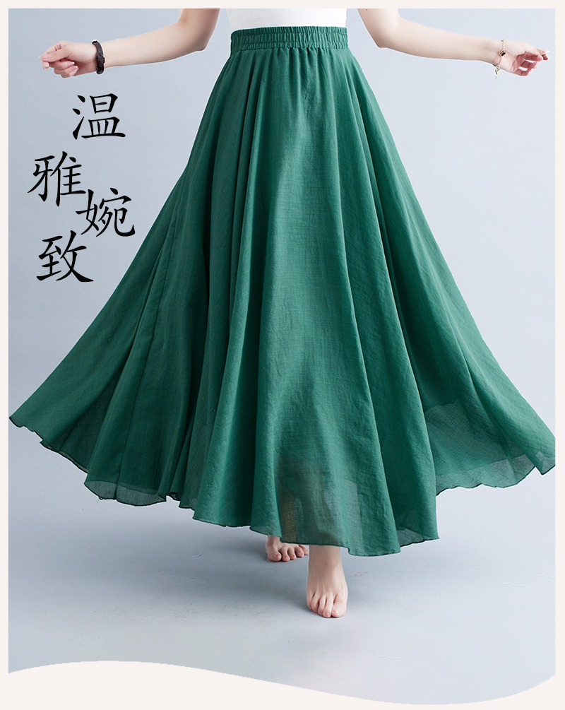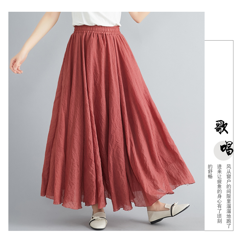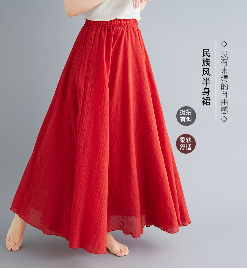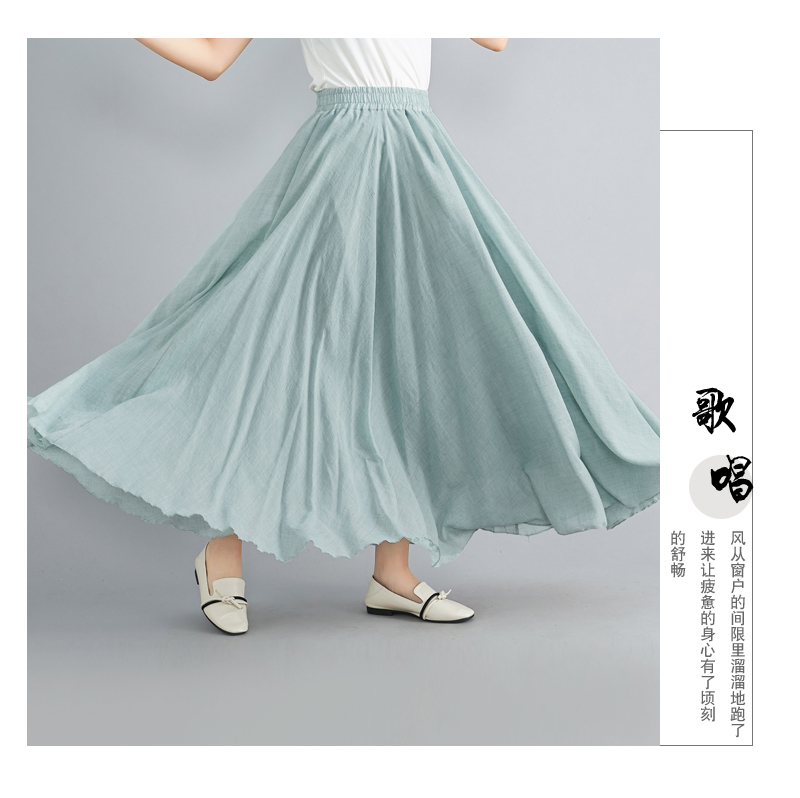 RY3358# 2026实拍森女文艺大码棉麻半身裙松紧腰亚麻A字裙长款纯色名族风
