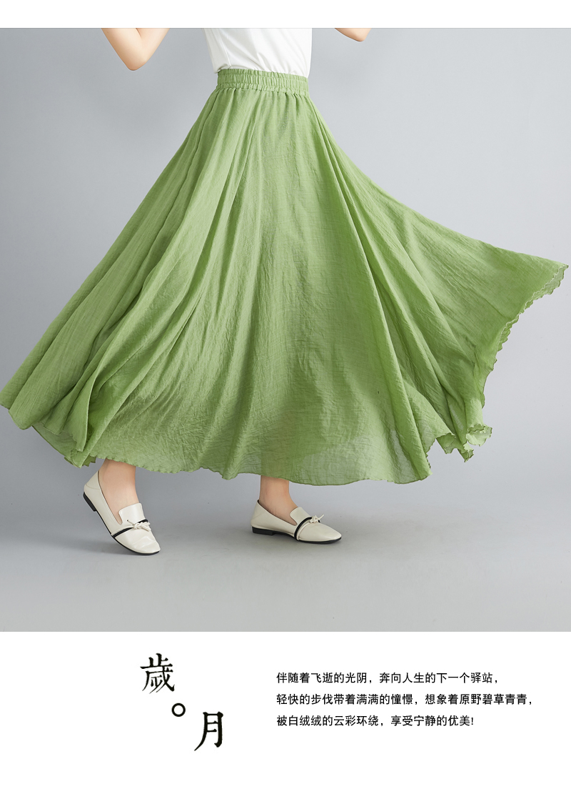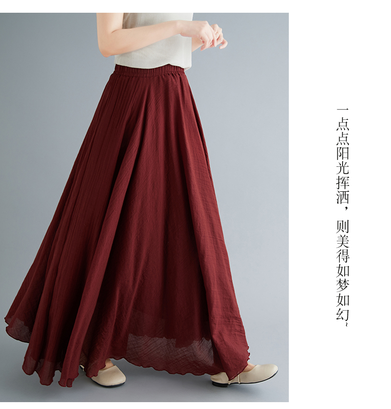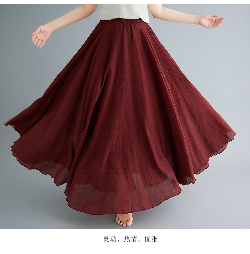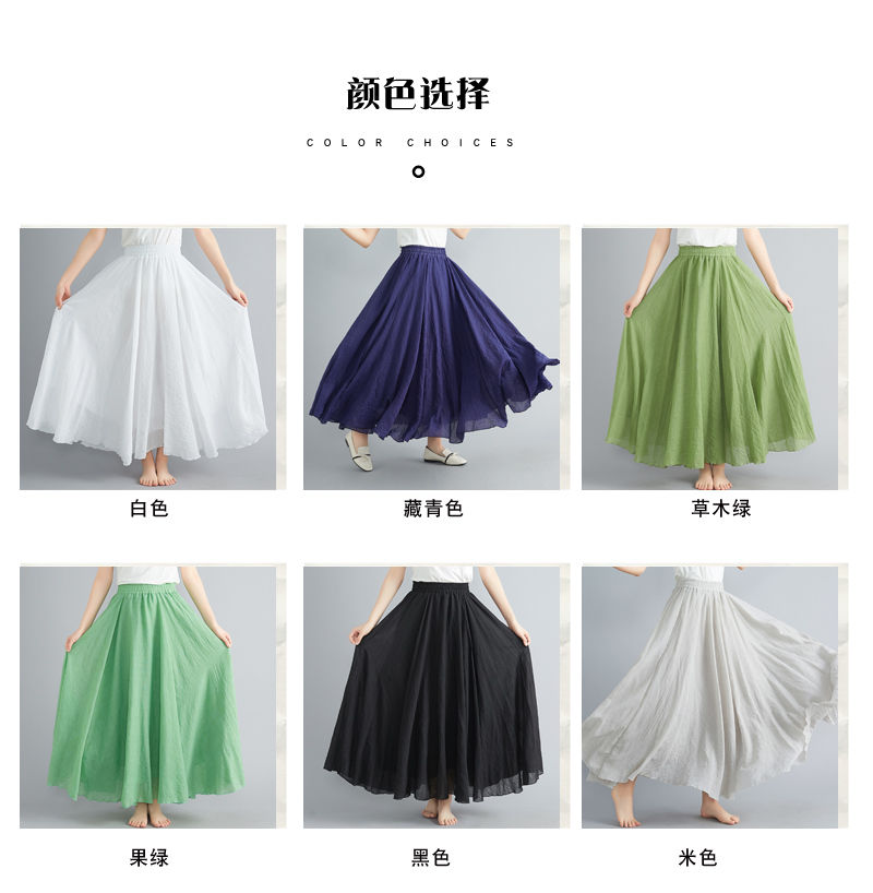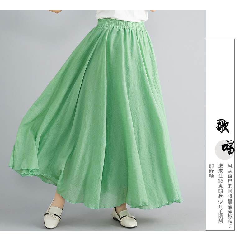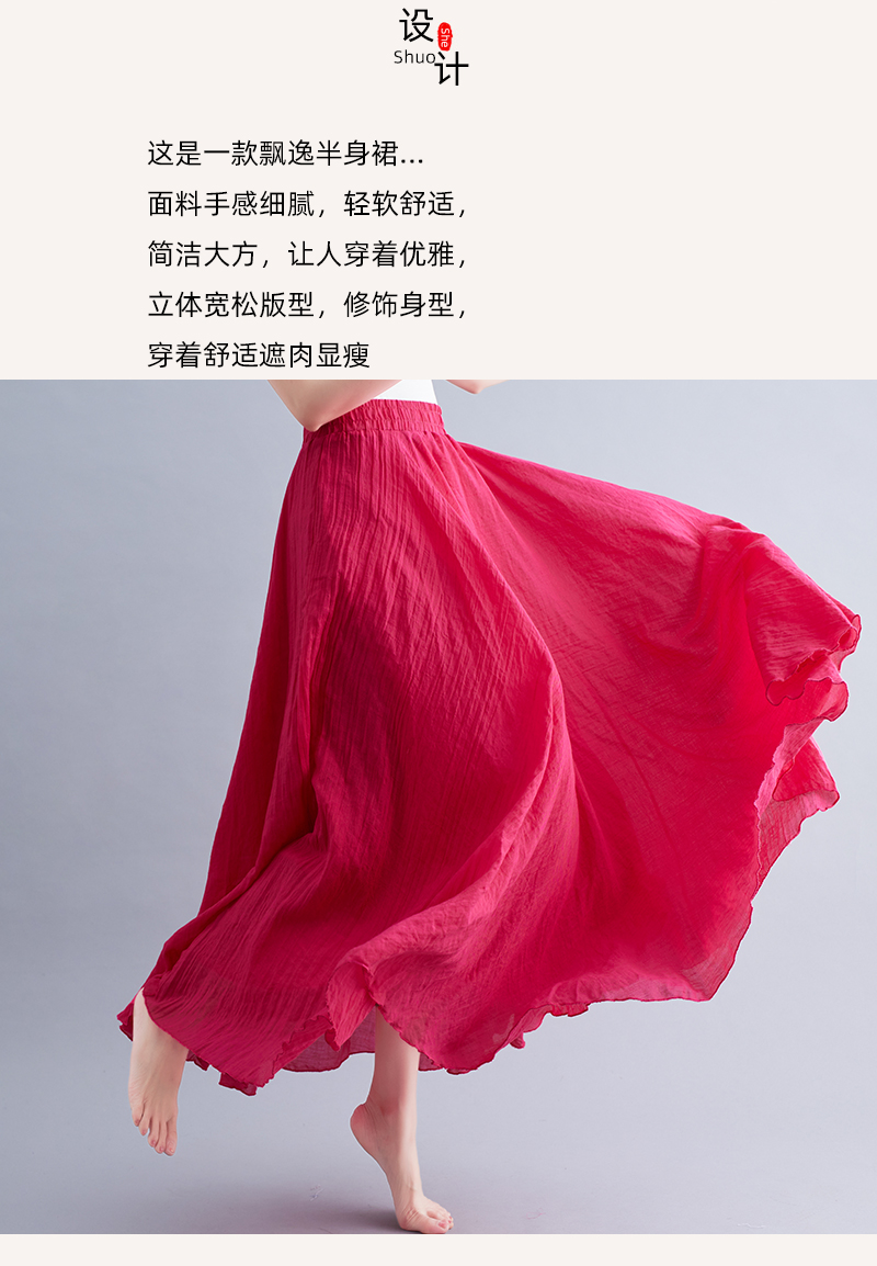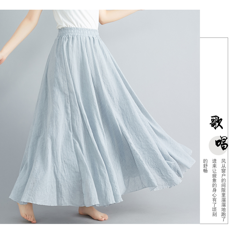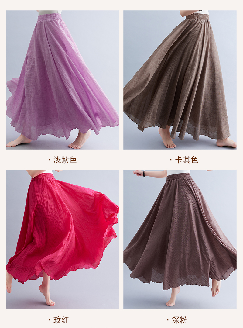 RY3358# 2026实拍森女文艺大码棉麻半身裙松紧腰亚麻A字裙长款纯色名族风