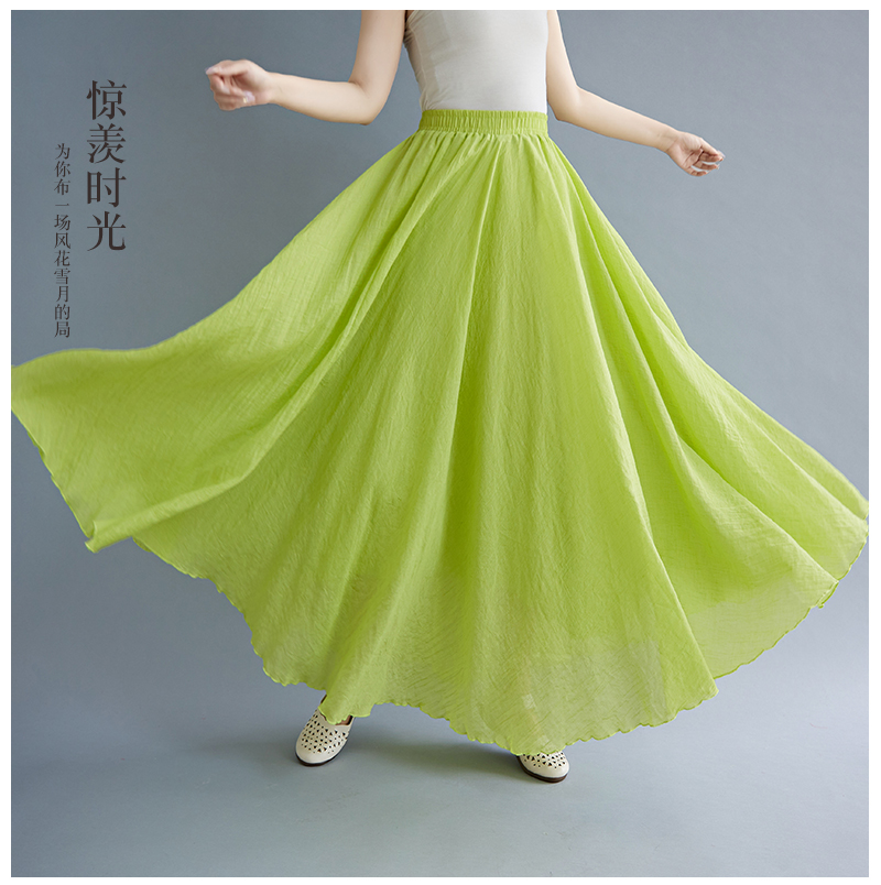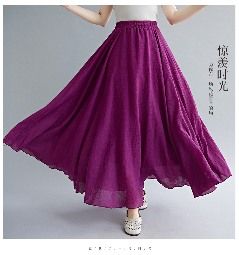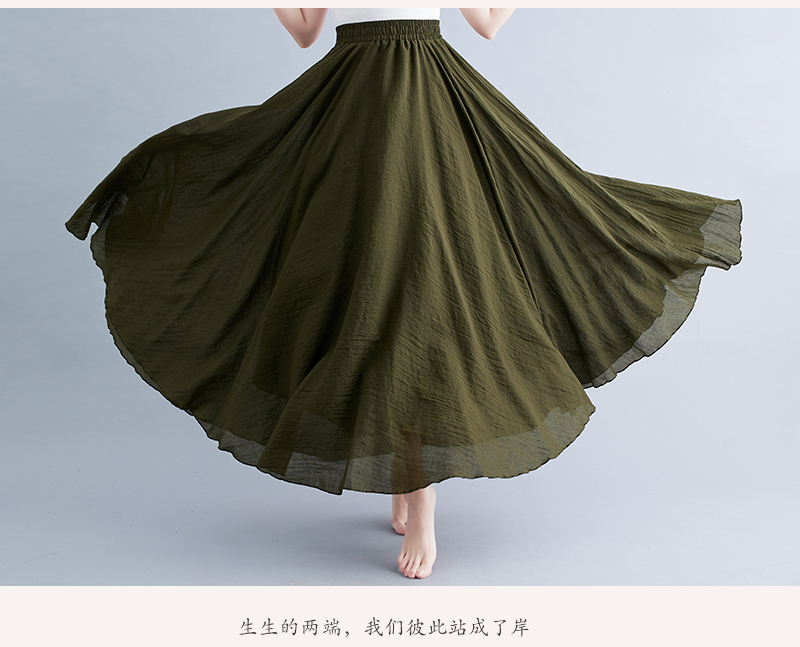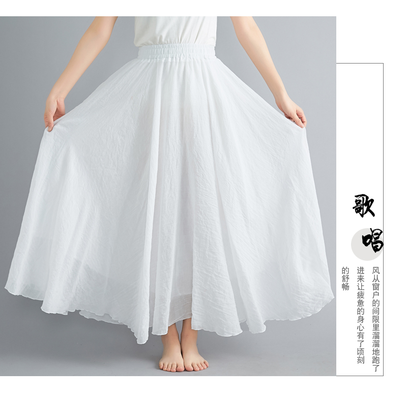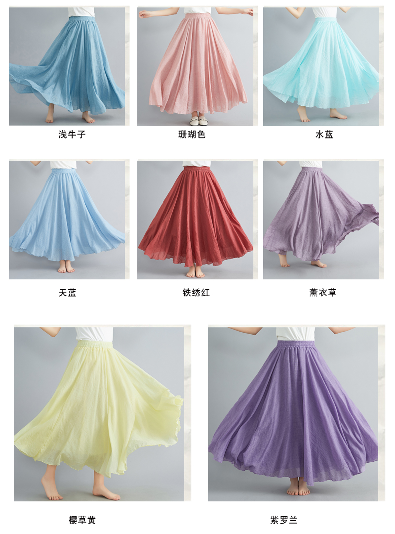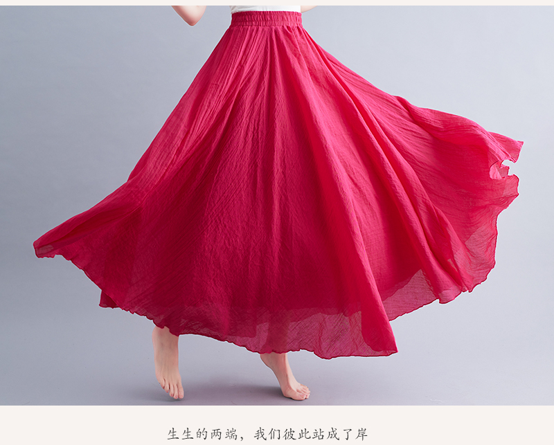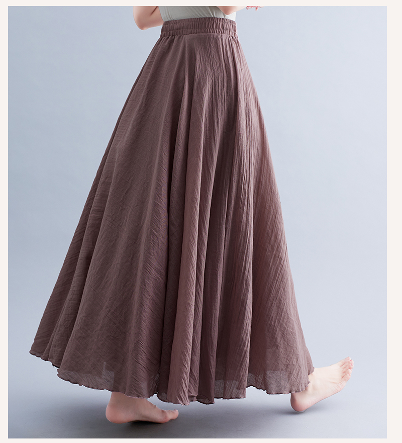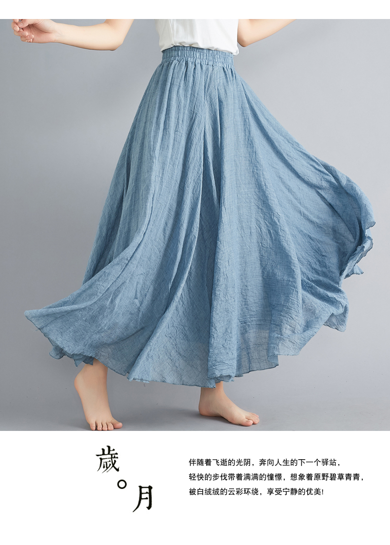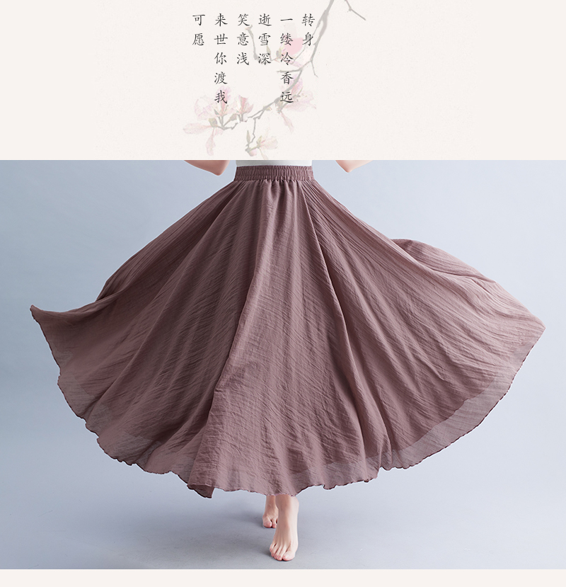 RY3358# 2026实拍森女文艺大码棉麻半身裙松紧腰亚麻A字裙长款纯色名族风