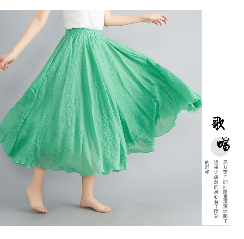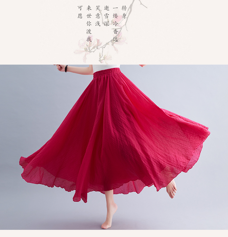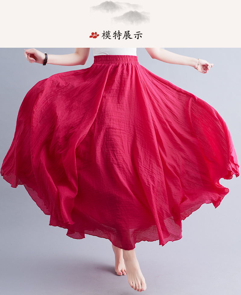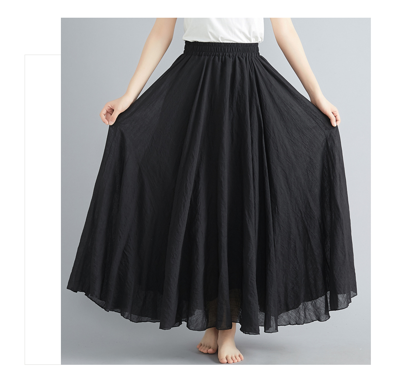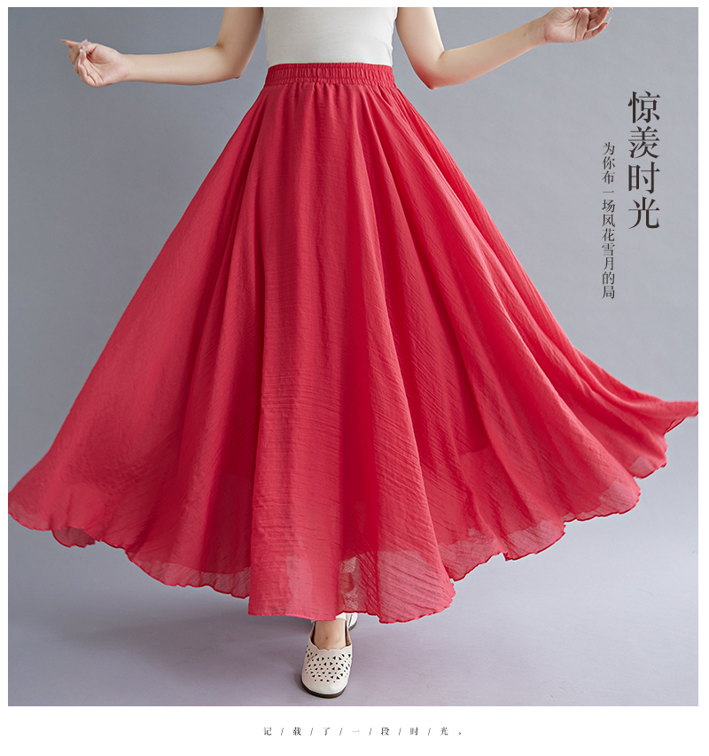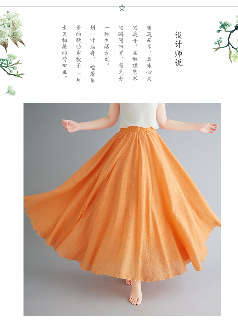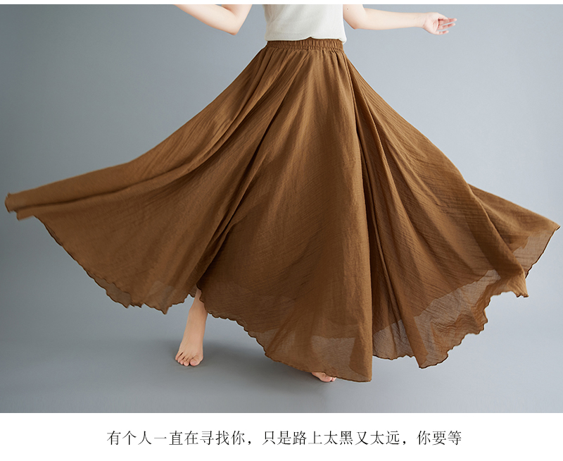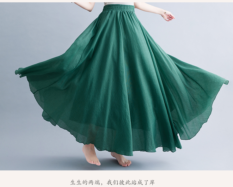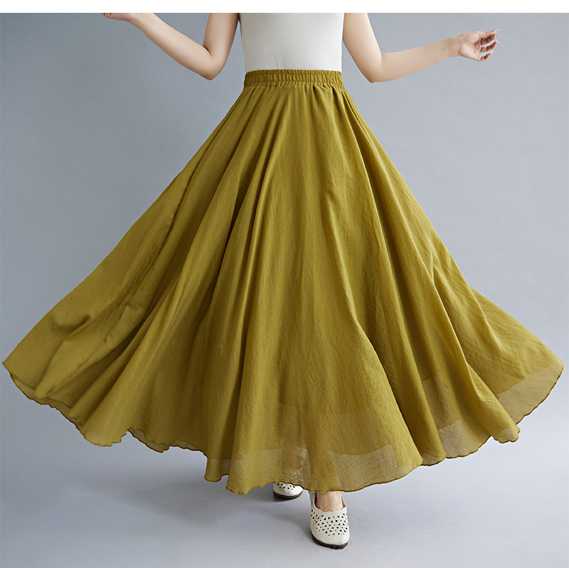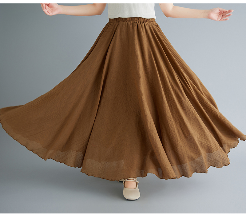 RY3358# 2026实拍森女文艺大码棉麻半身裙松紧腰亚麻A字裙长款纯色名族风