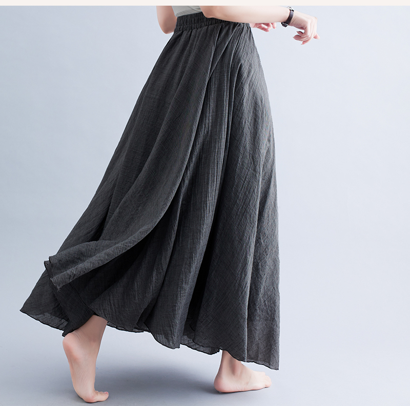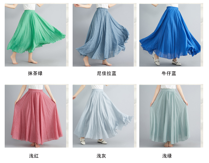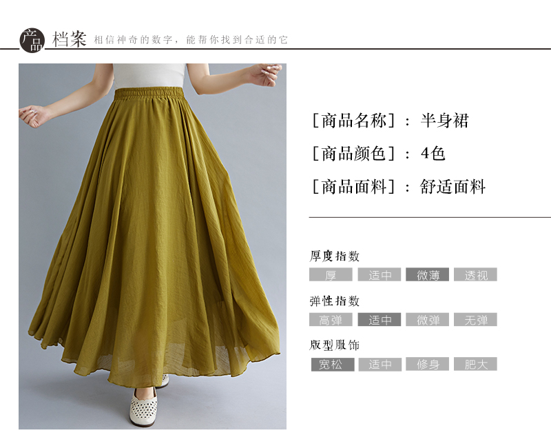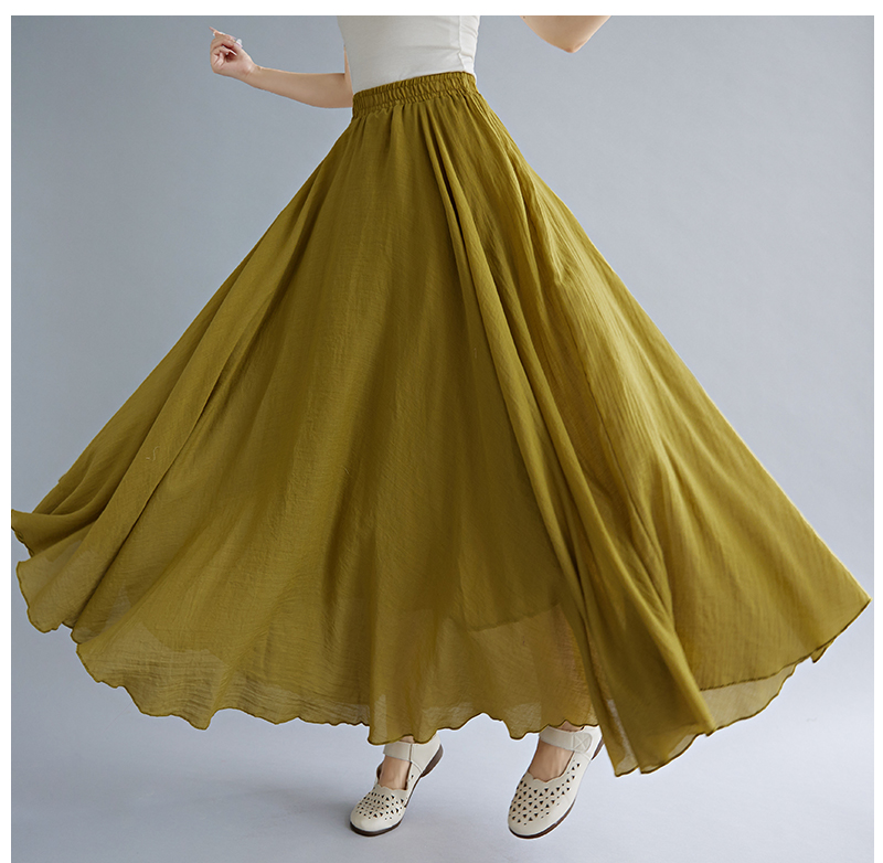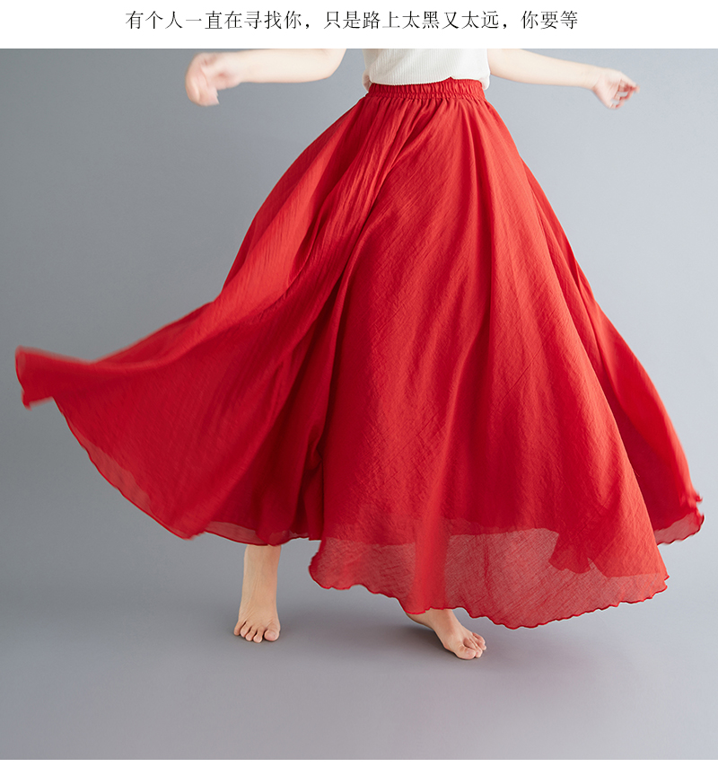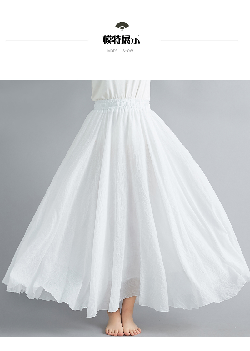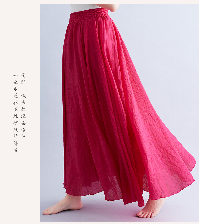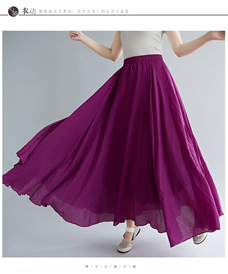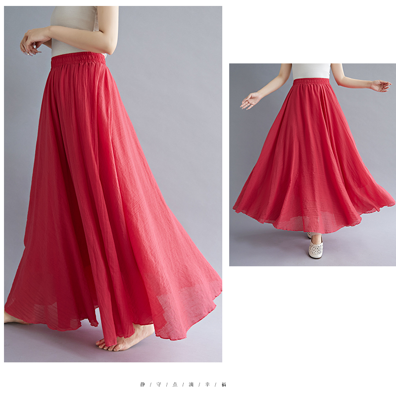 RY3358# 2026实拍森女文艺大码棉麻半身裙松紧腰亚麻A字裙长款纯色名族风
