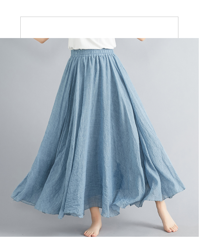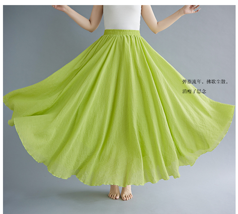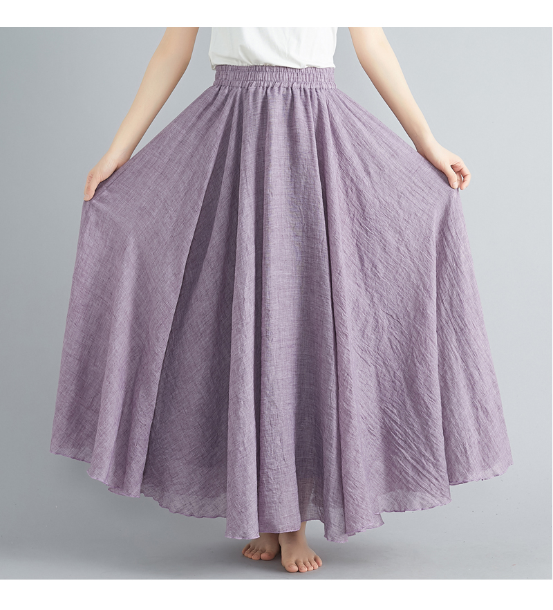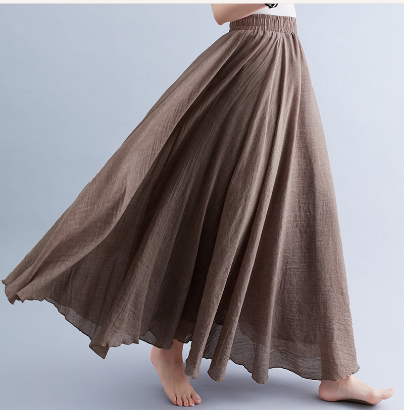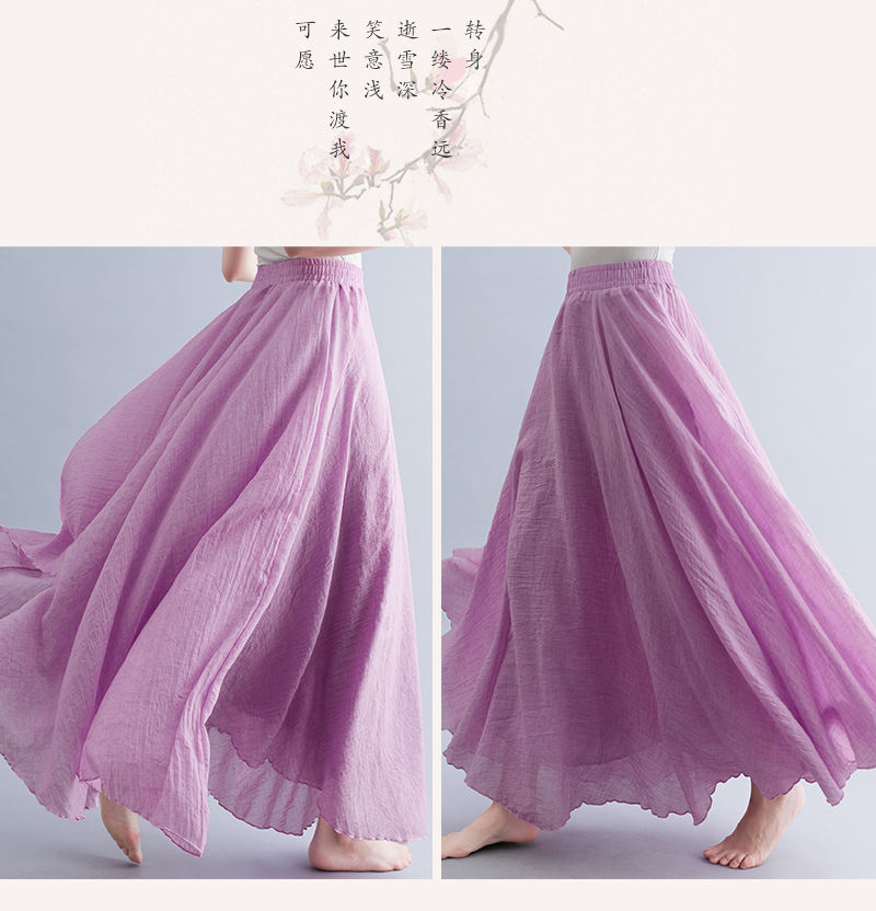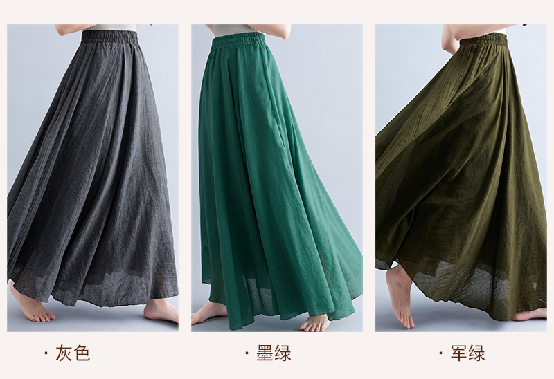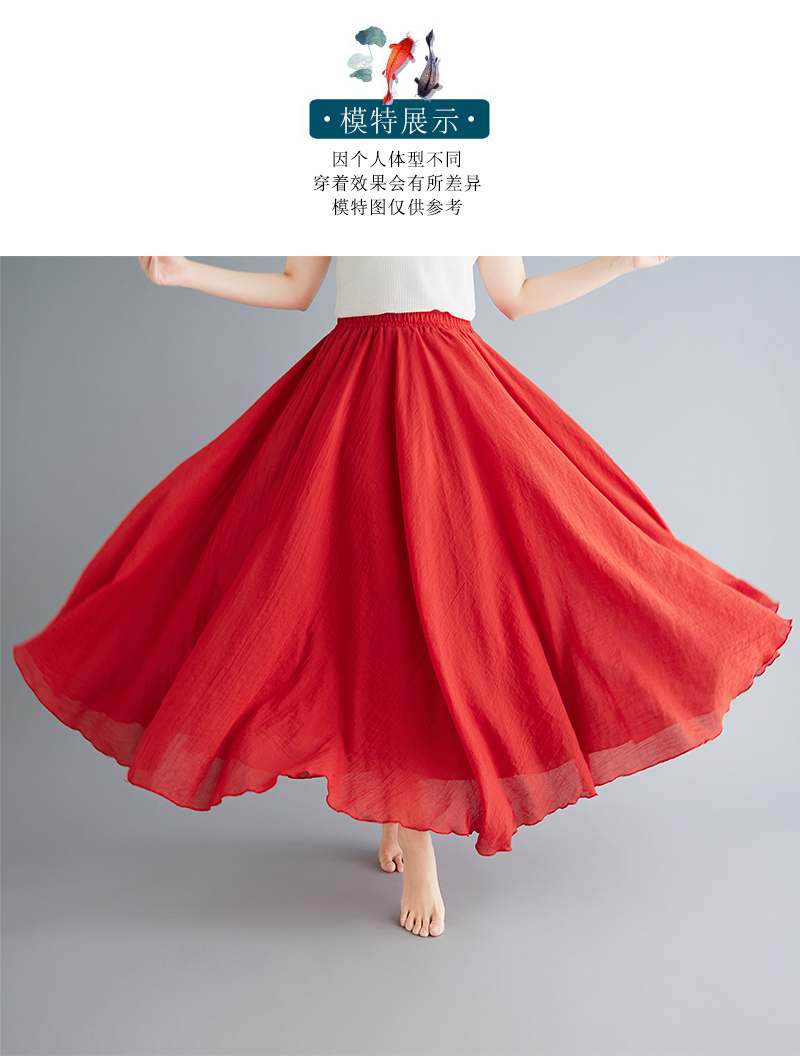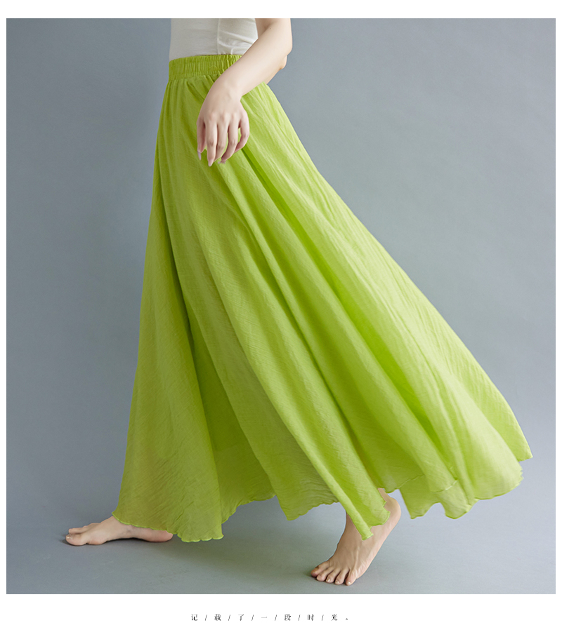 RY3358# 2026实拍森女文艺大码棉麻半身裙松紧腰亚麻A字裙长款纯色名族风