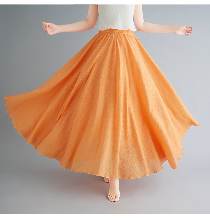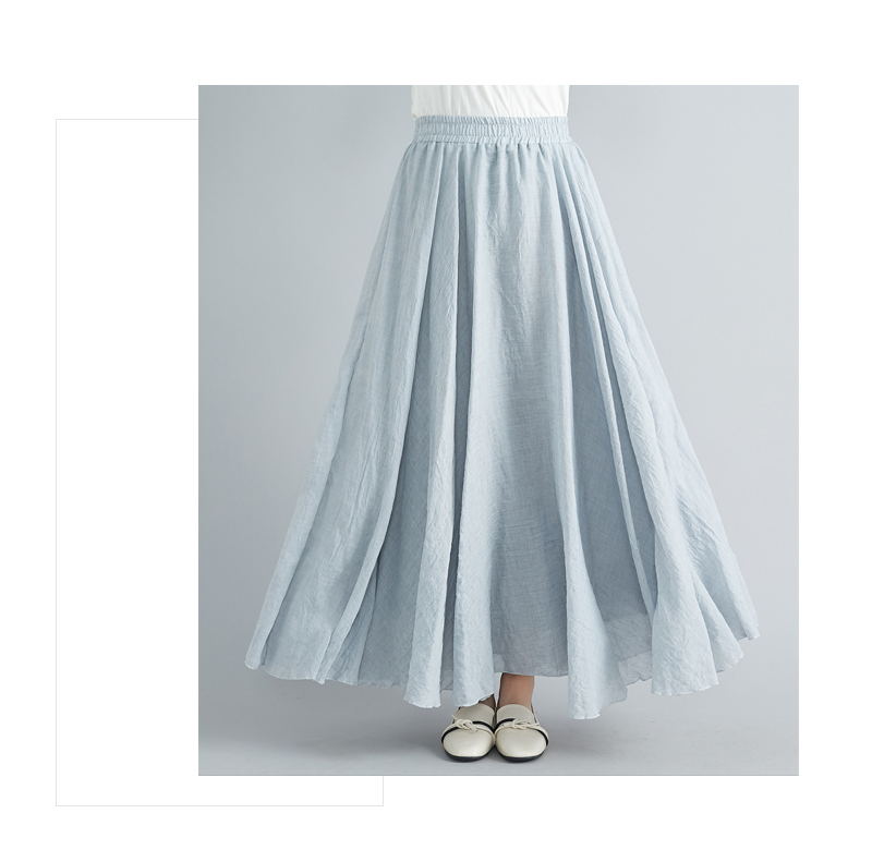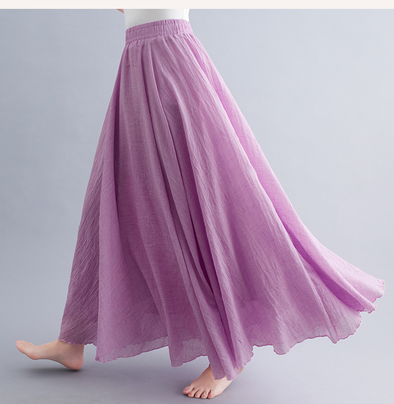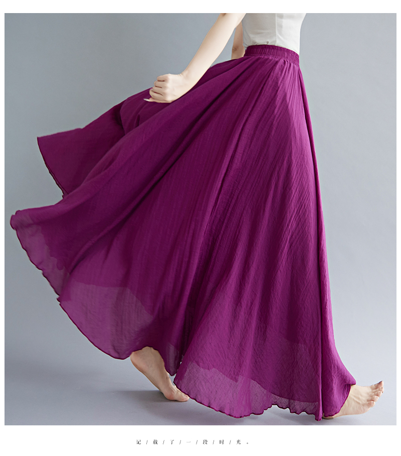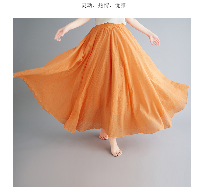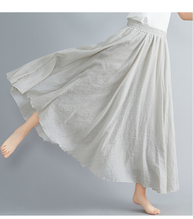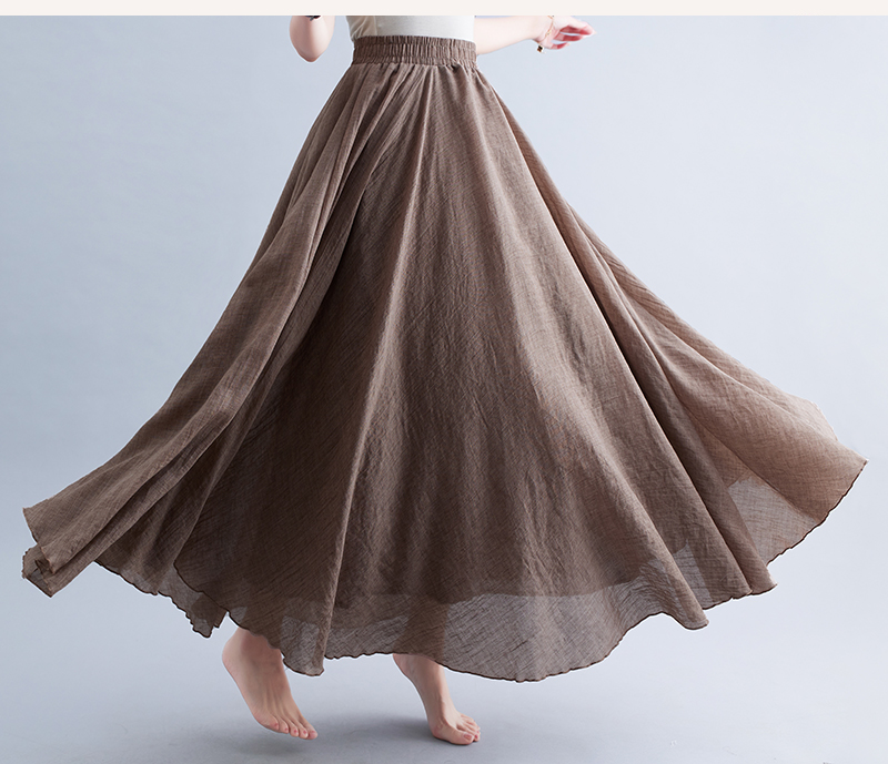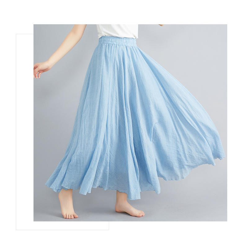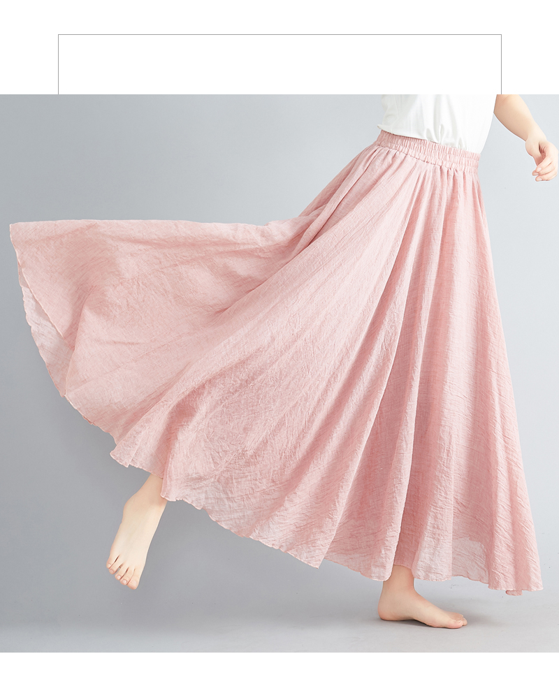 RY3358# 2026实拍森女文艺大码棉麻半身裙松紧腰亚麻A字裙长款纯色名族风