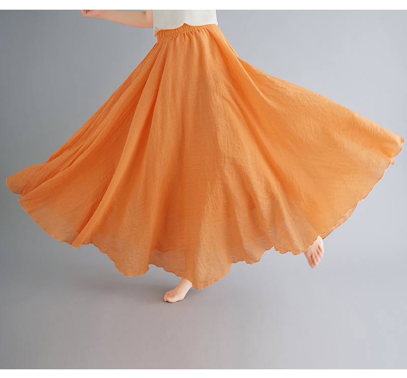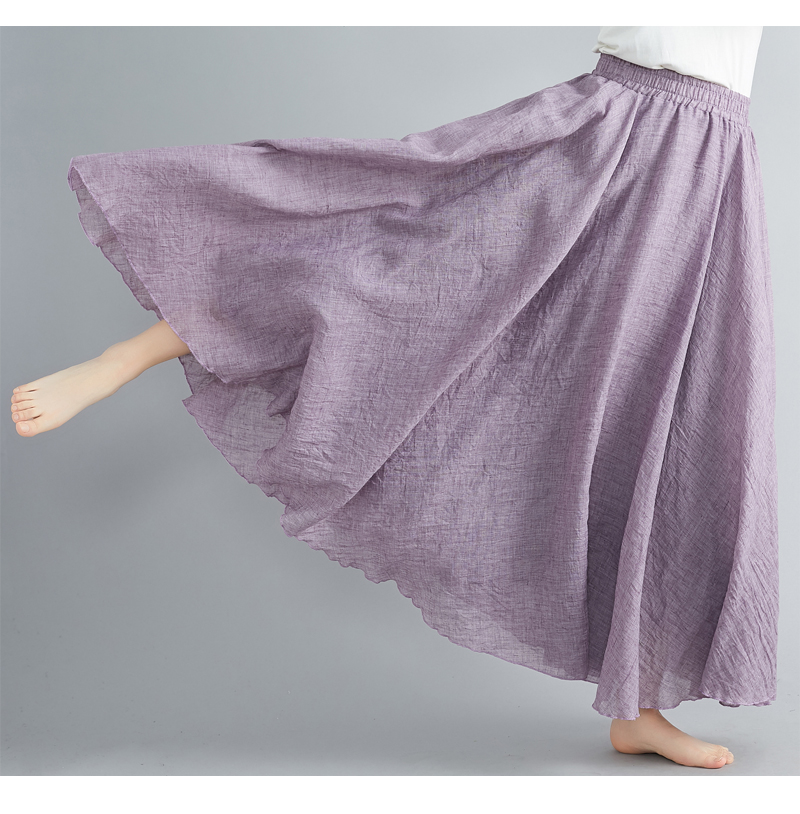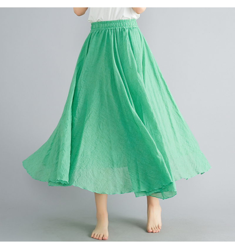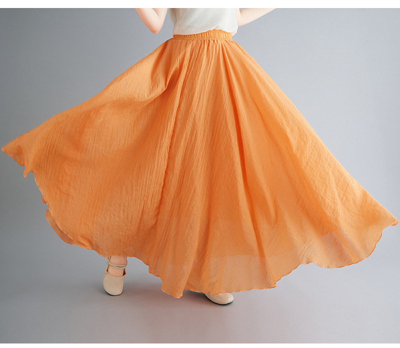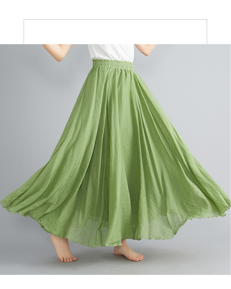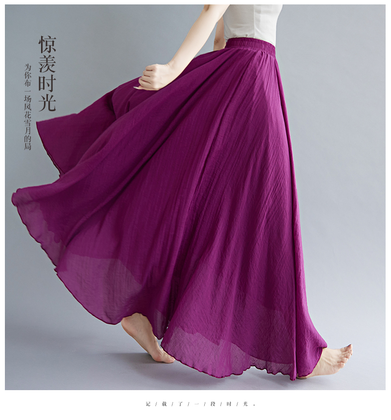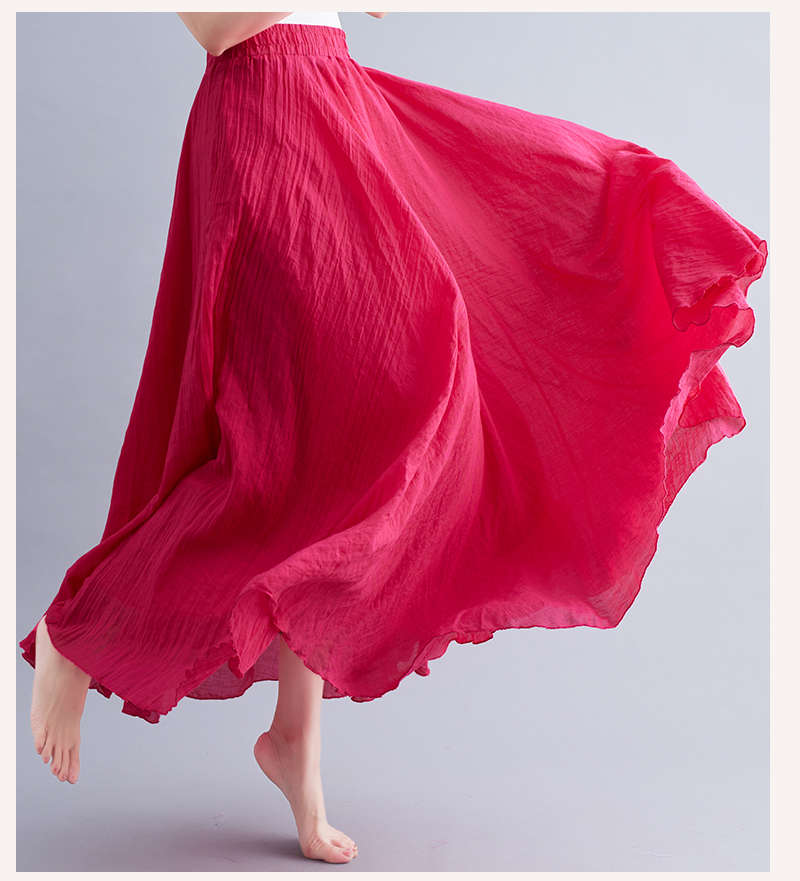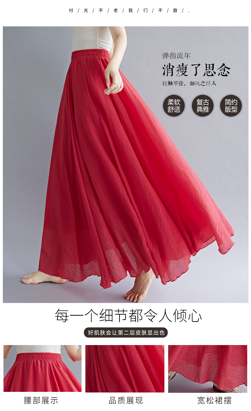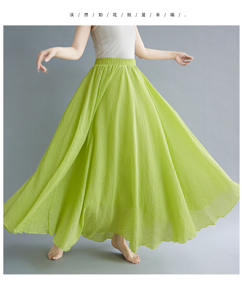 RY3358# 2026实拍森女文艺大码棉麻半身裙松紧腰亚麻A字裙长款纯色名族风
