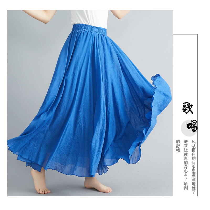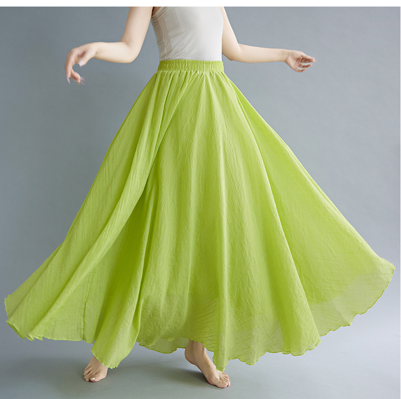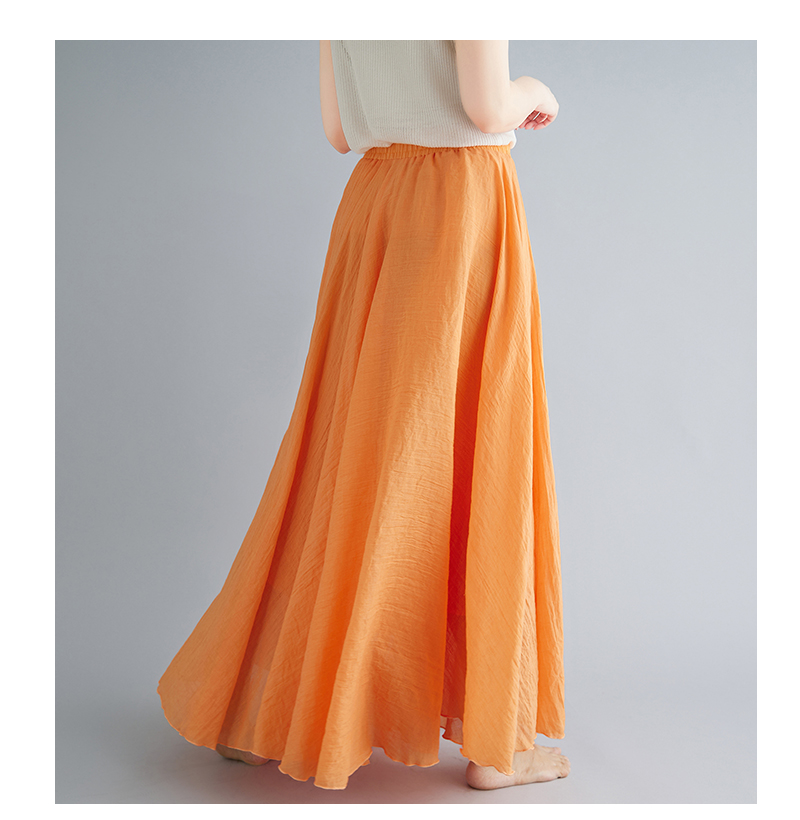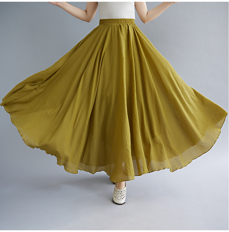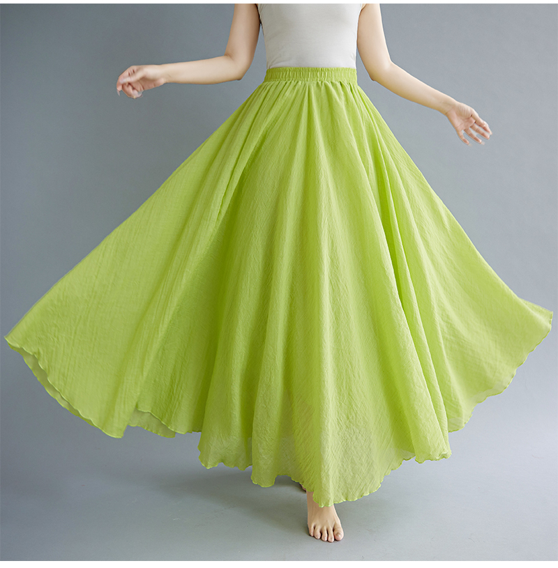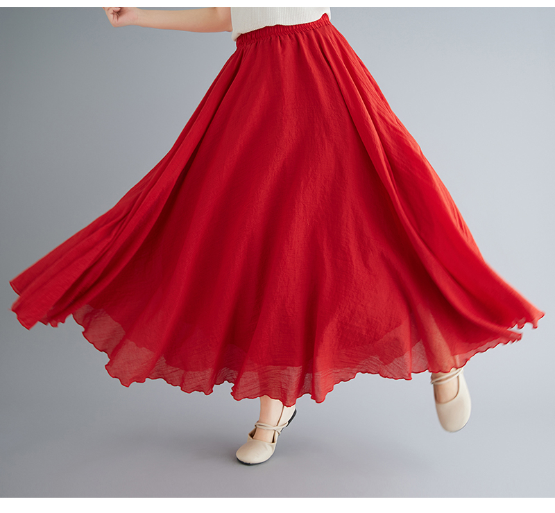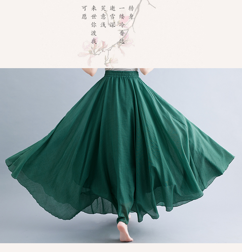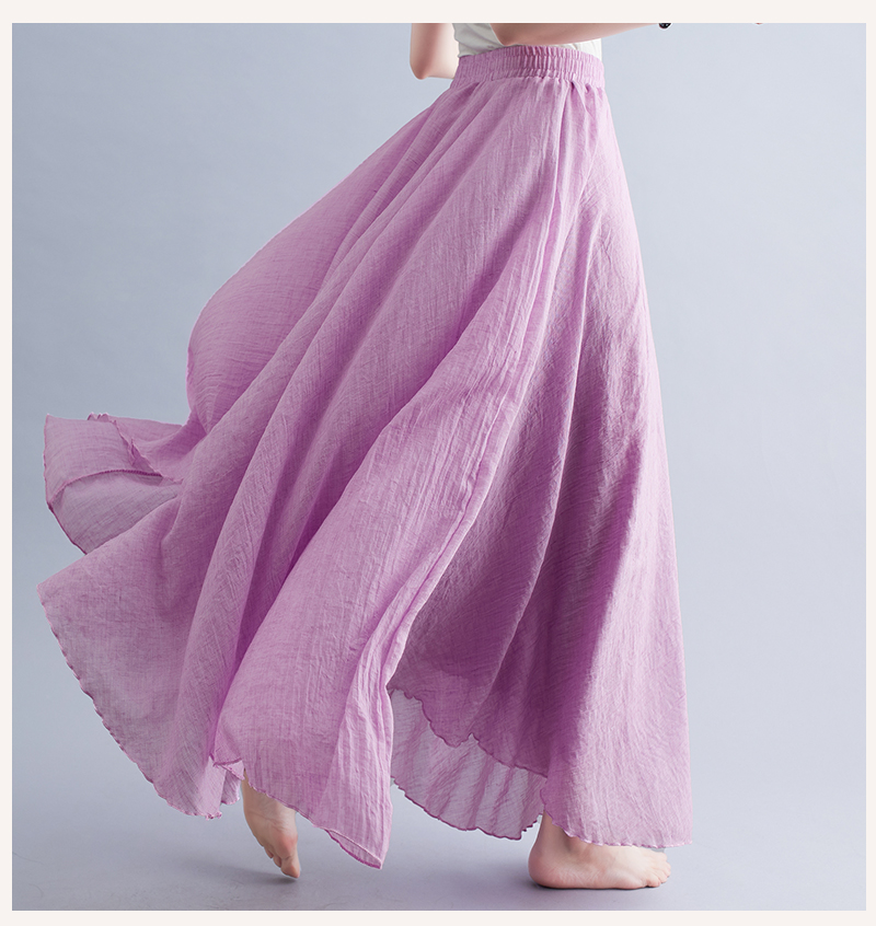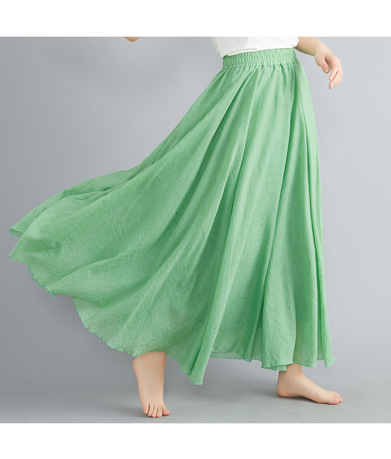 RY3358# 2026实拍森女文艺大码棉麻半身裙松紧腰亚麻A字裙长款纯色名族风