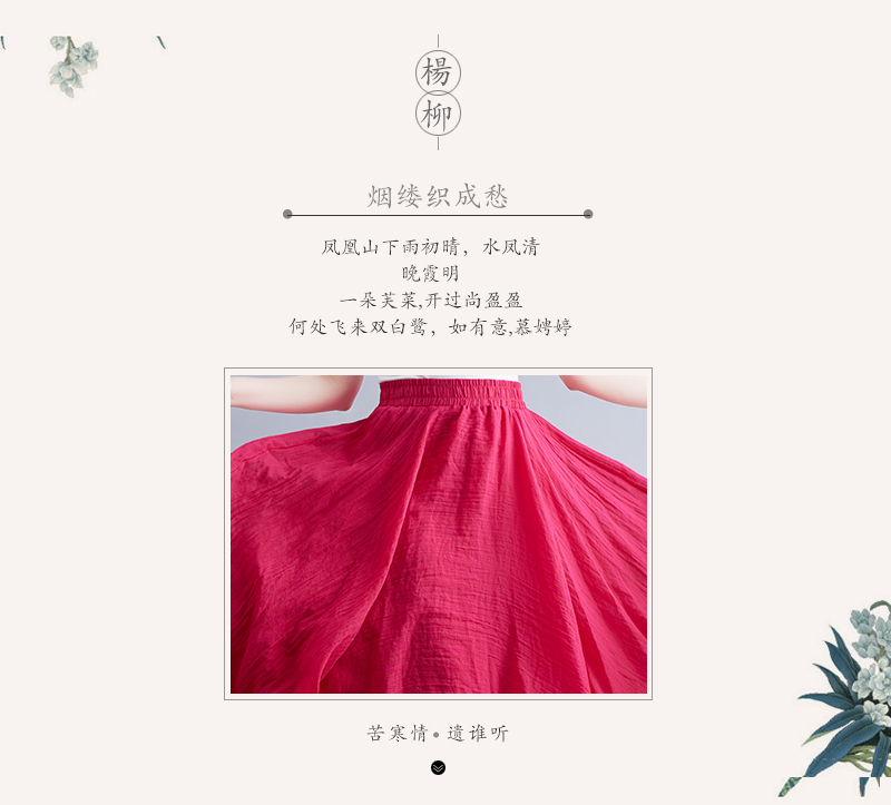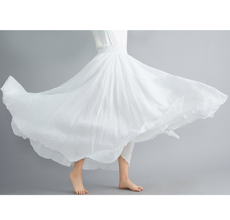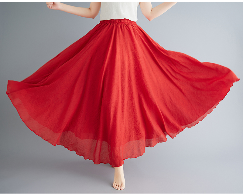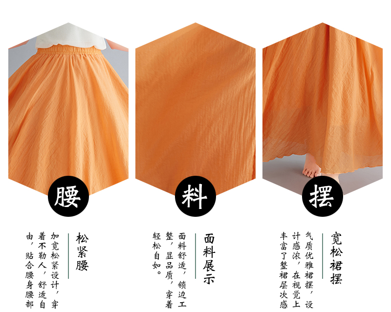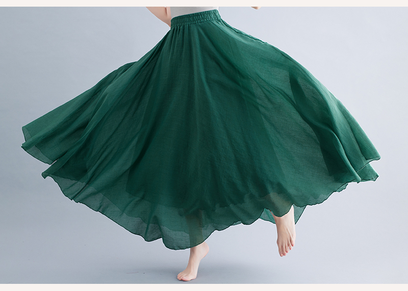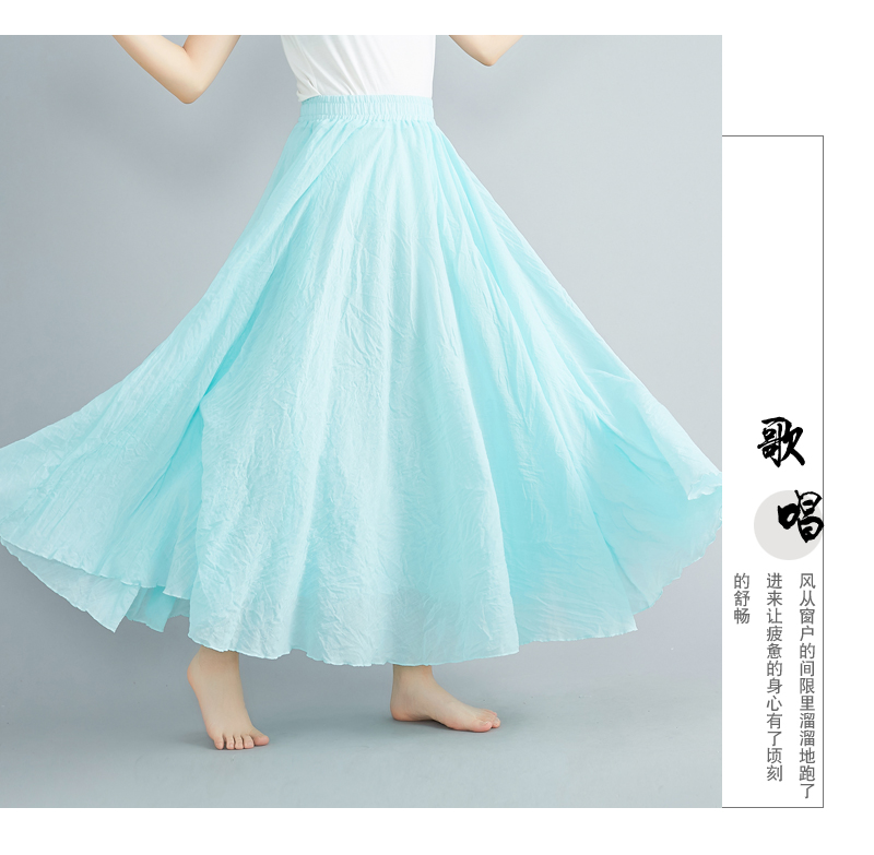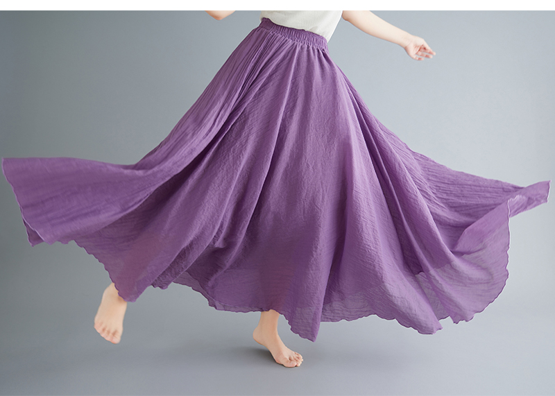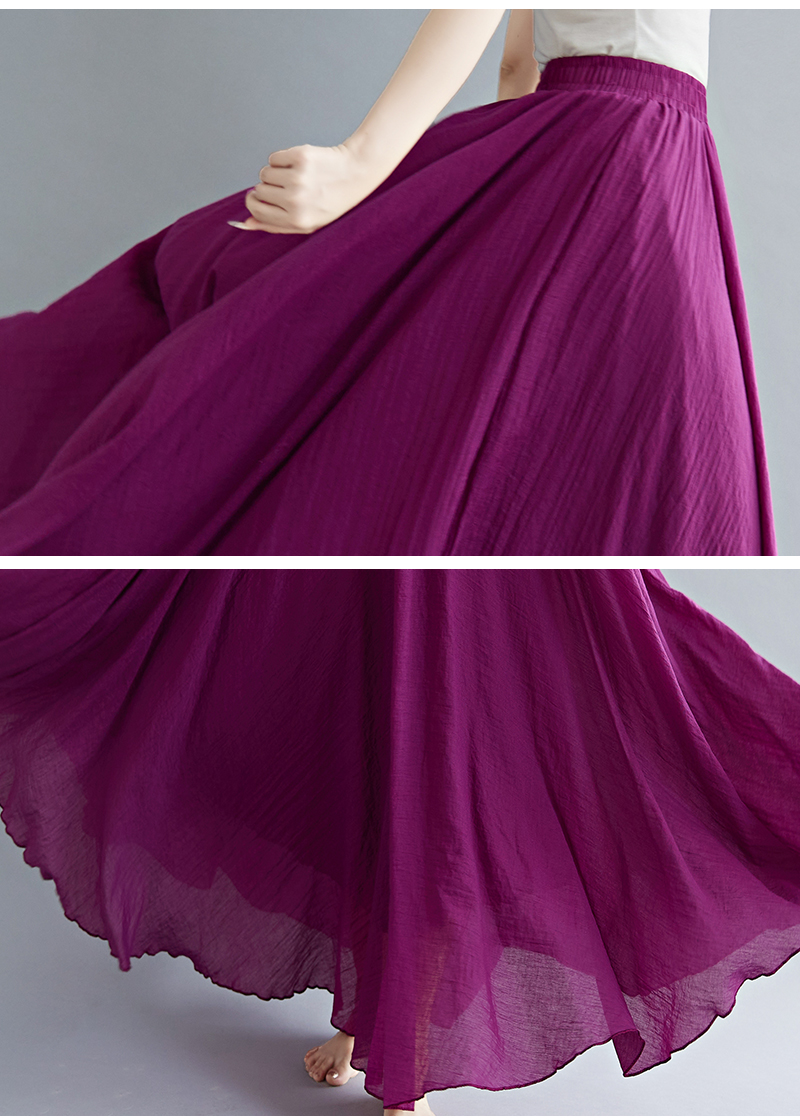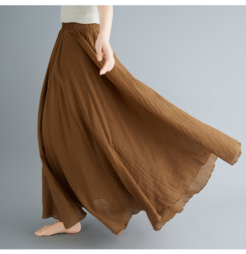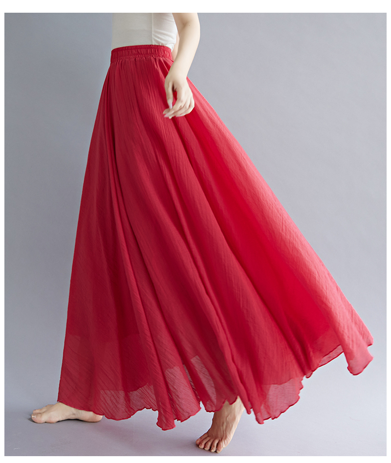 RY3358# 2026实拍森女文艺大码棉麻半身裙松紧腰亚麻A字裙长款纯色名族风