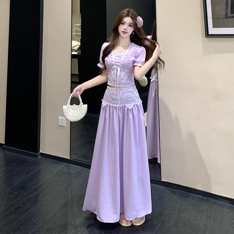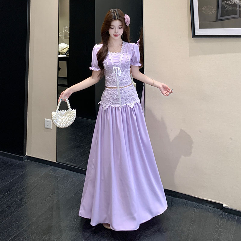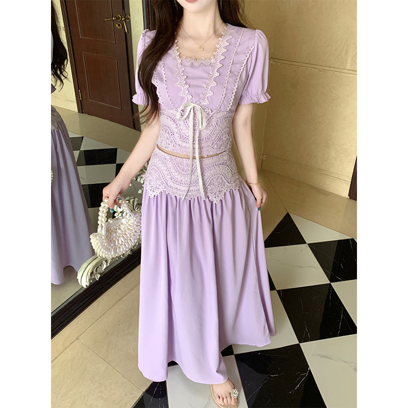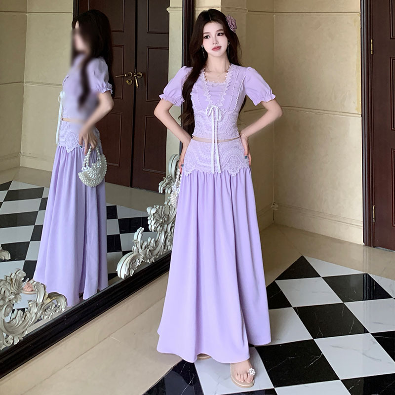 RY3376# 实拍~大码2026夏季新款法式气质绣花蕾丝上衣+大摆半身裙套装女