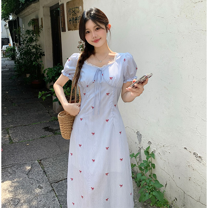 RY3378# 实拍~EIA一尧喜欢请响铃大码2026夏季新款条纹韩系显瘦连衣裙
