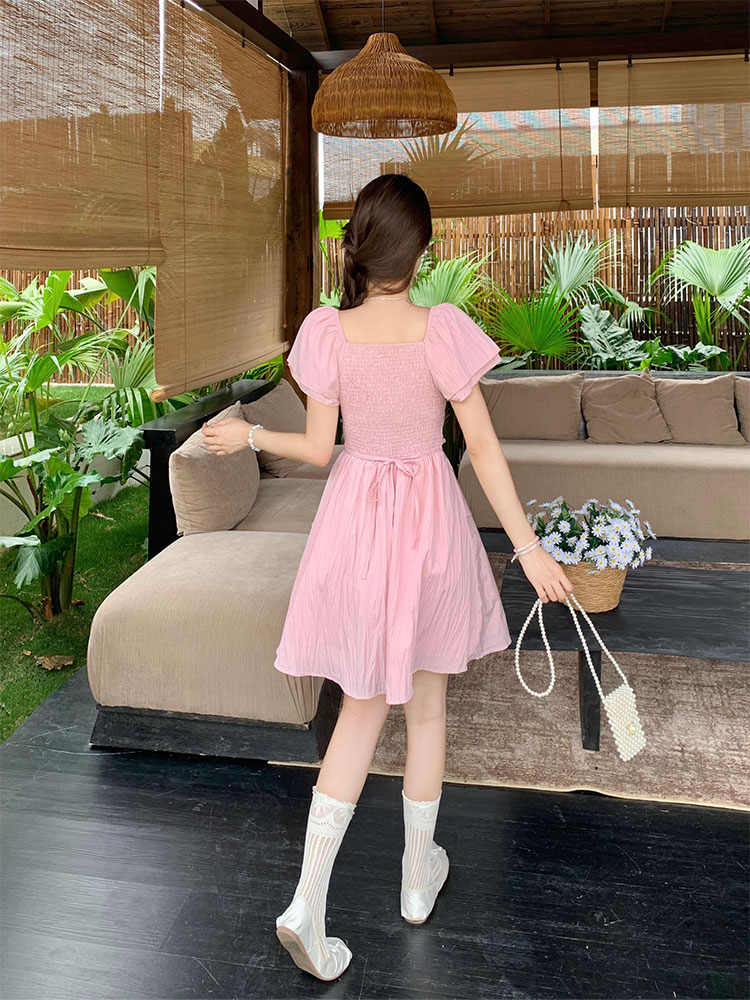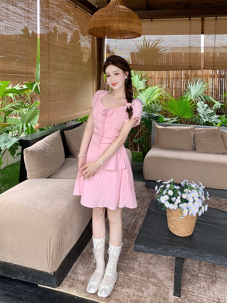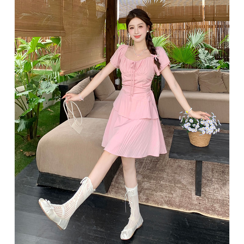 RY3386# 实拍~大码海盐方领波点吊带连衣裙女夏季法式气质a字裙子