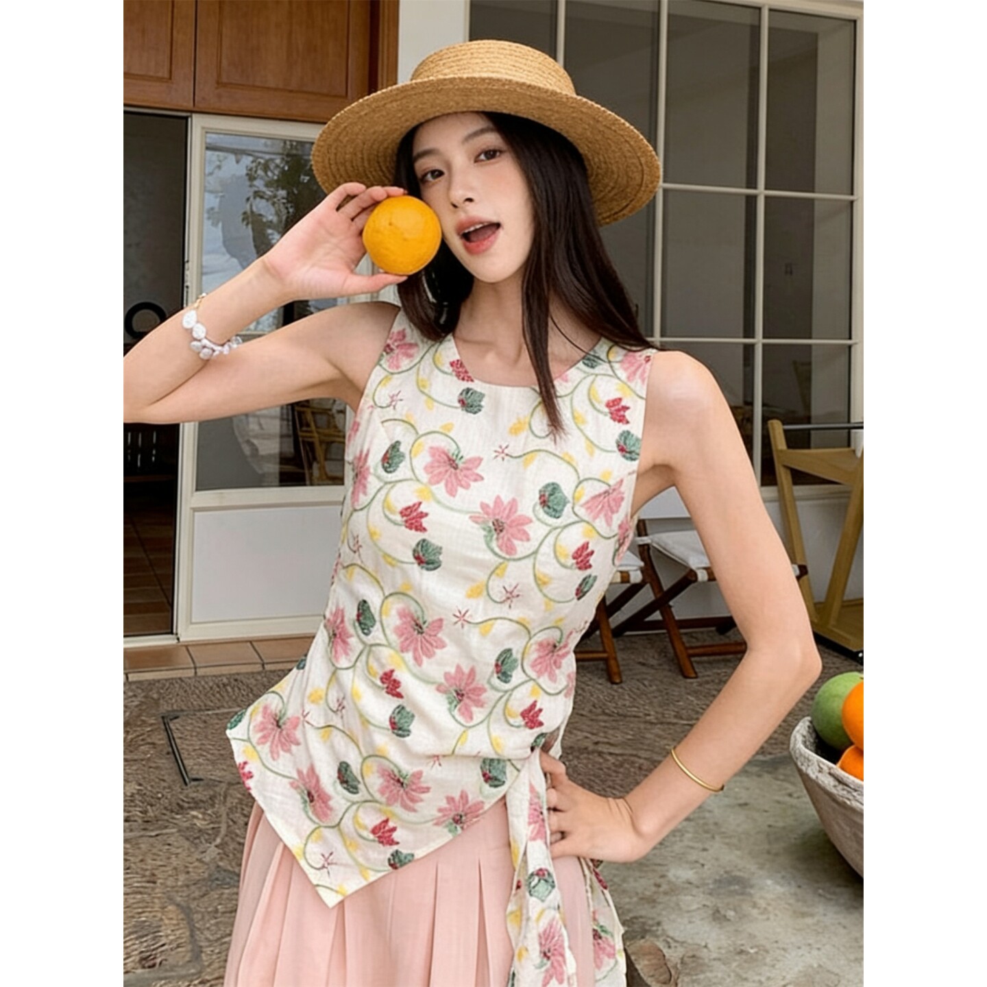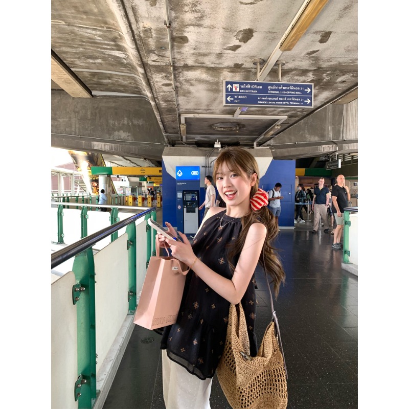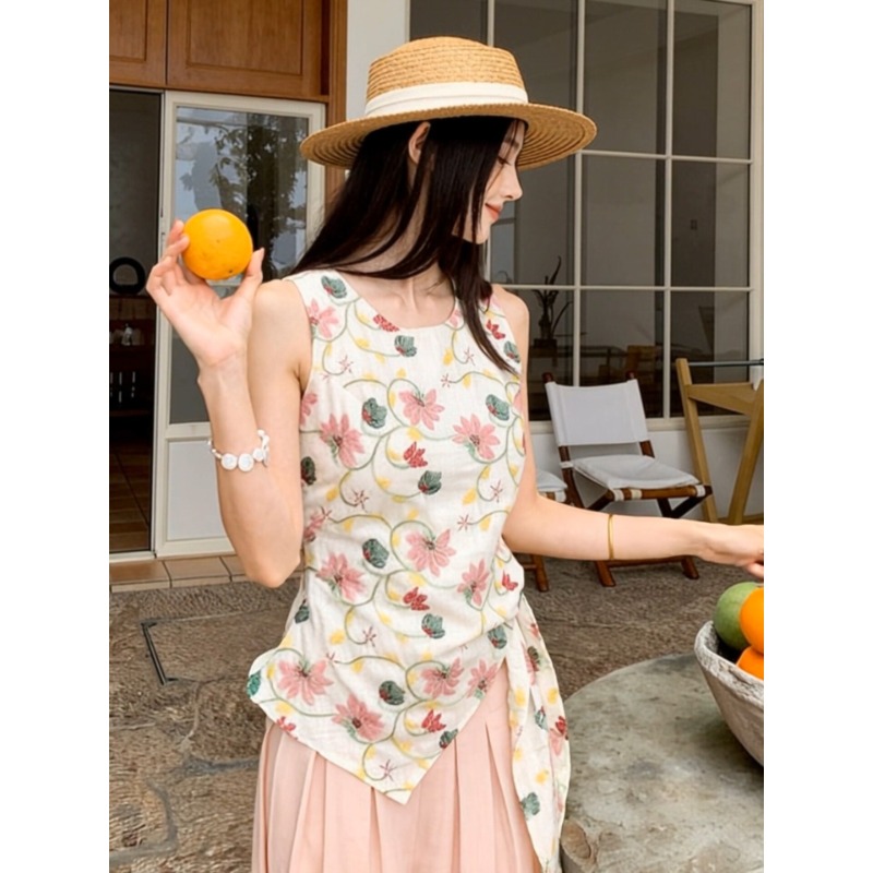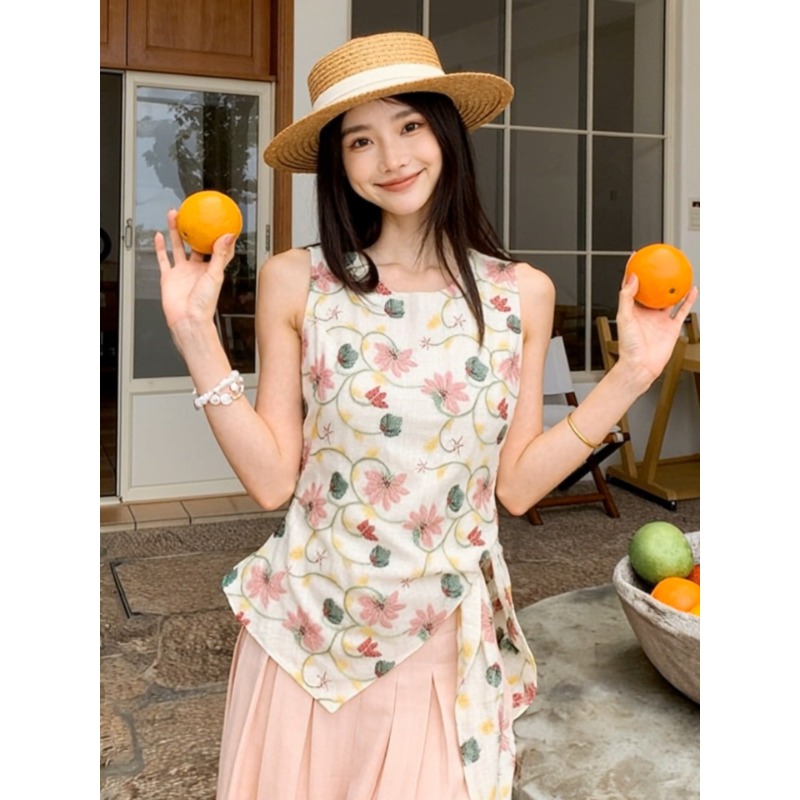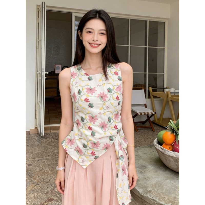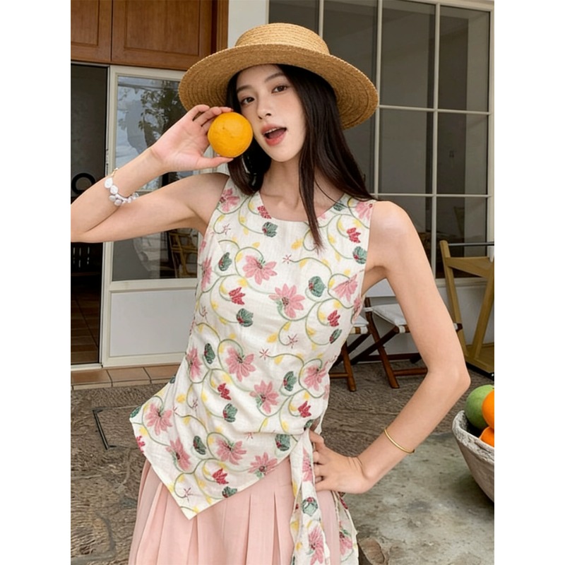 RY3389# 法式甜辣风碎花掐腰露肩上衣女2026年夏季新款外穿小衫设计感小众