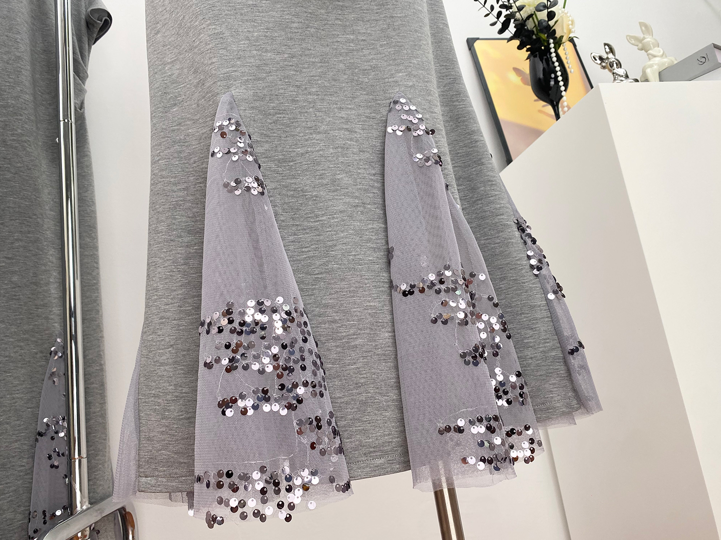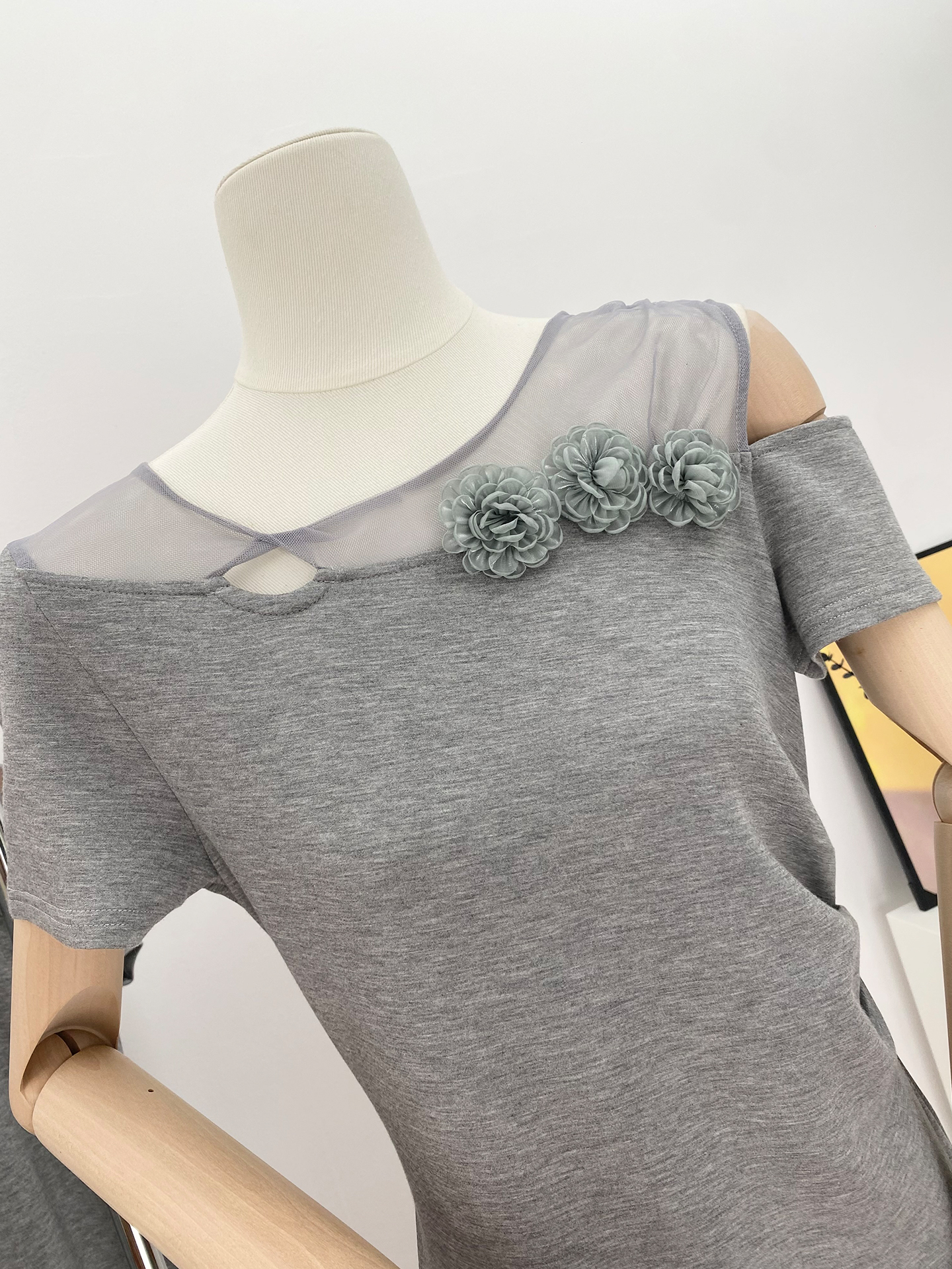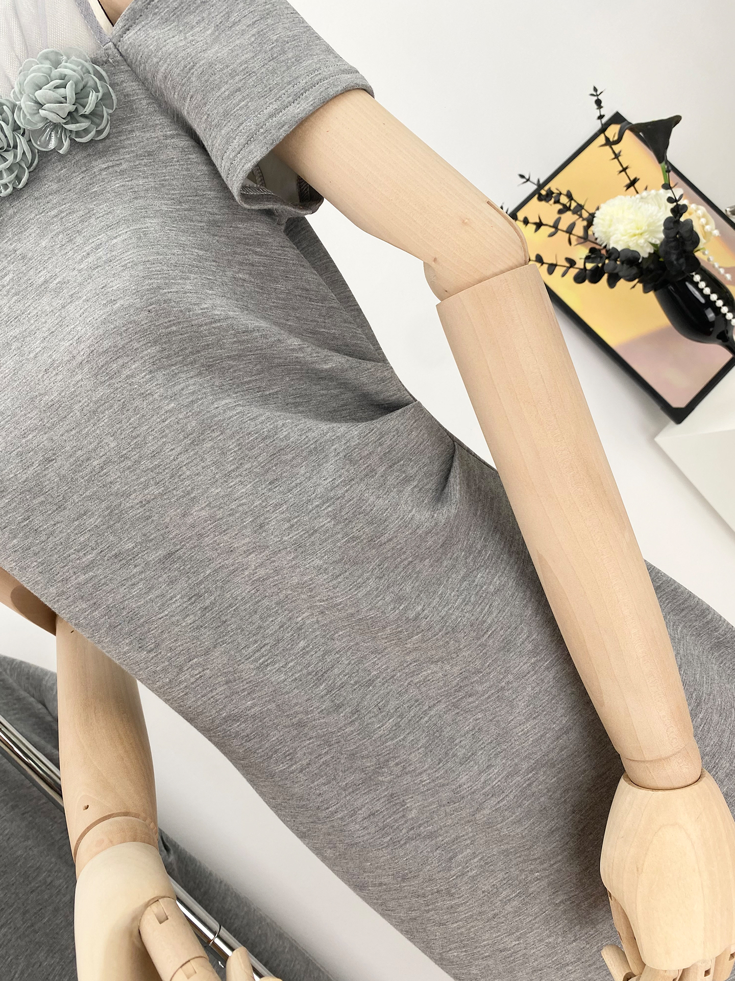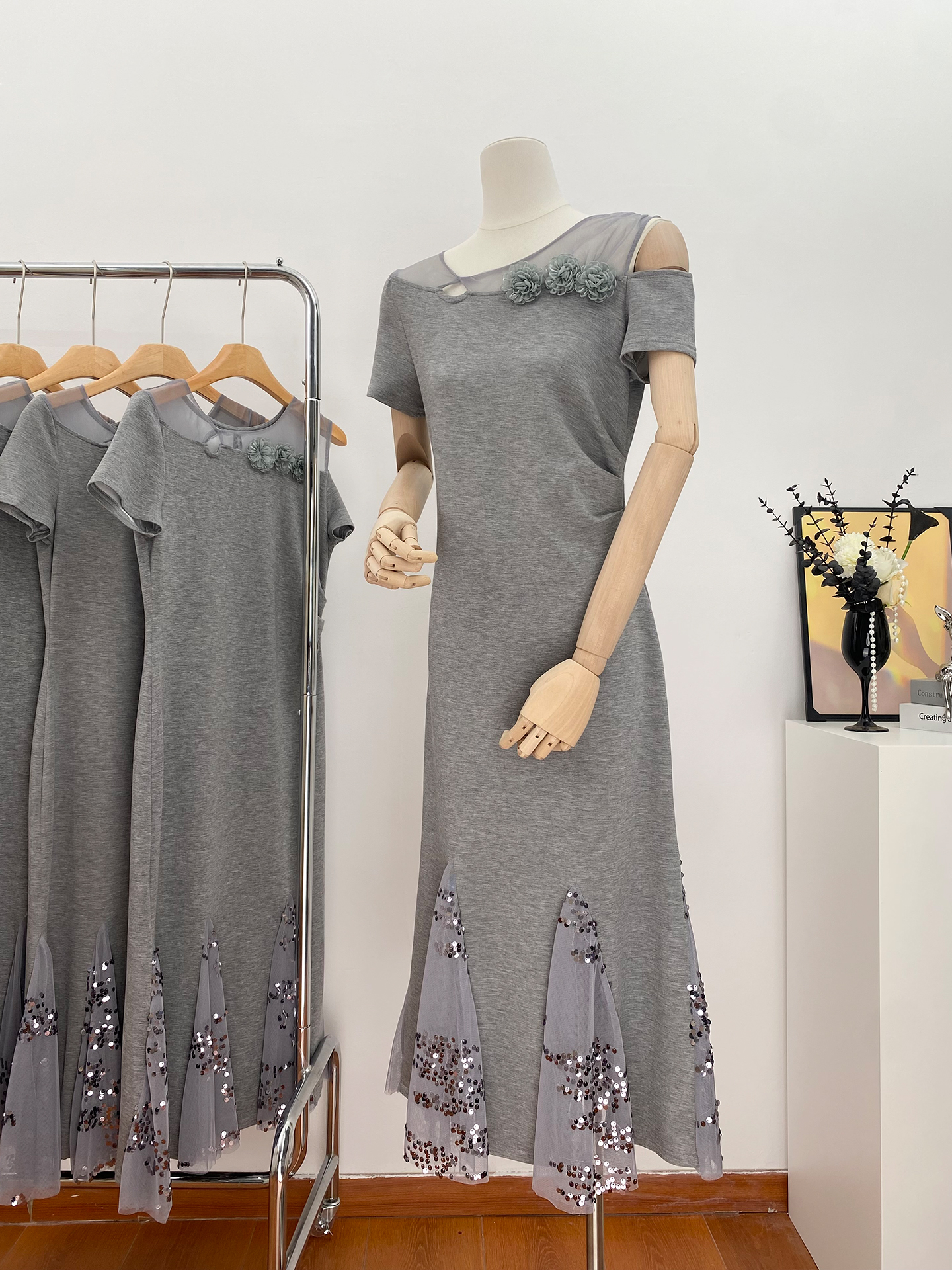 RY3393# 灰色法式露肩连衣裙女2026夏季显瘦减龄超好看独特漂亮高级感裙子