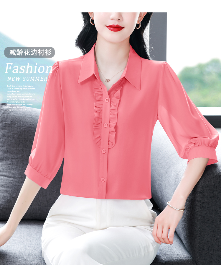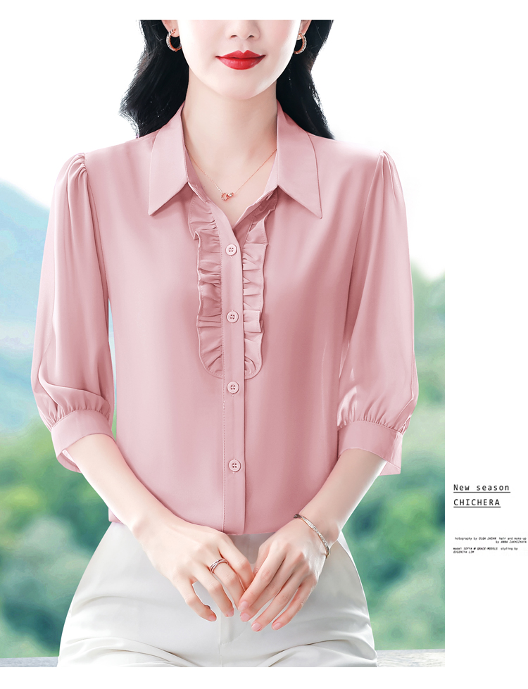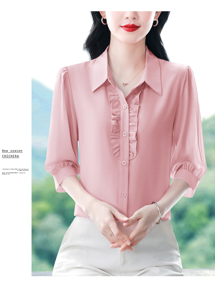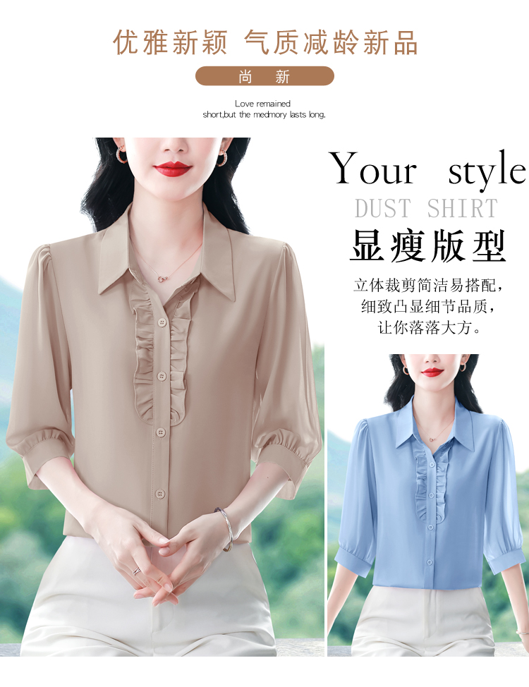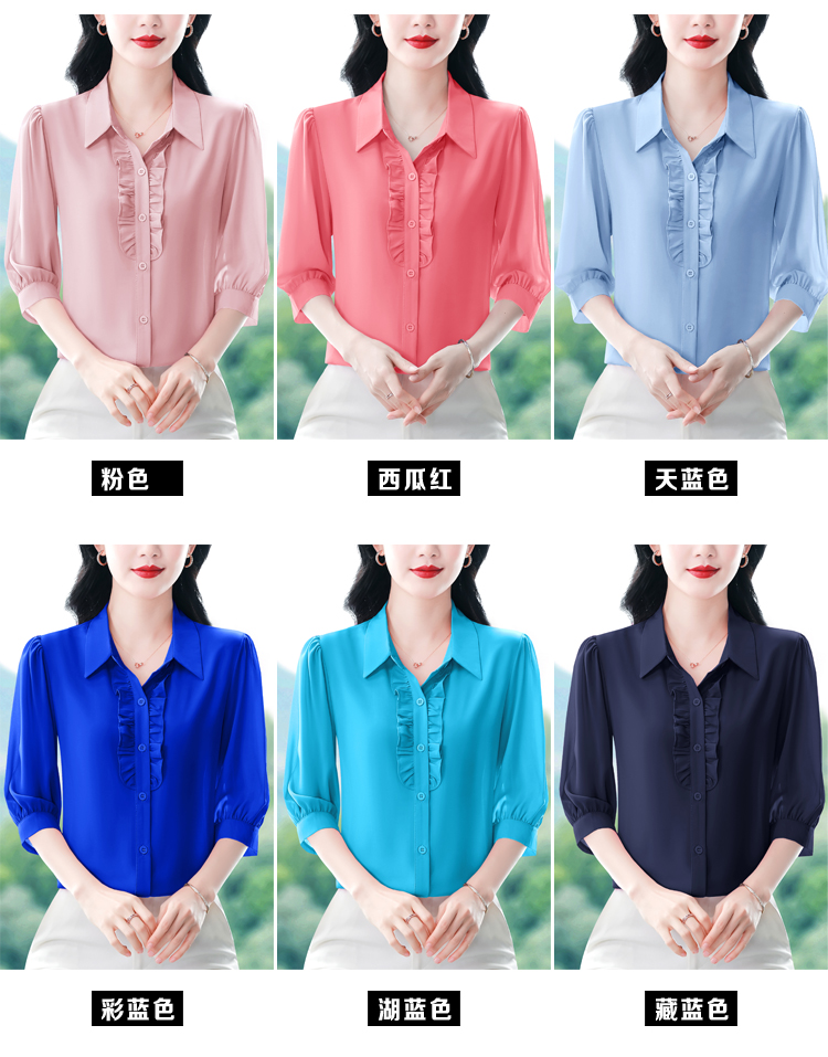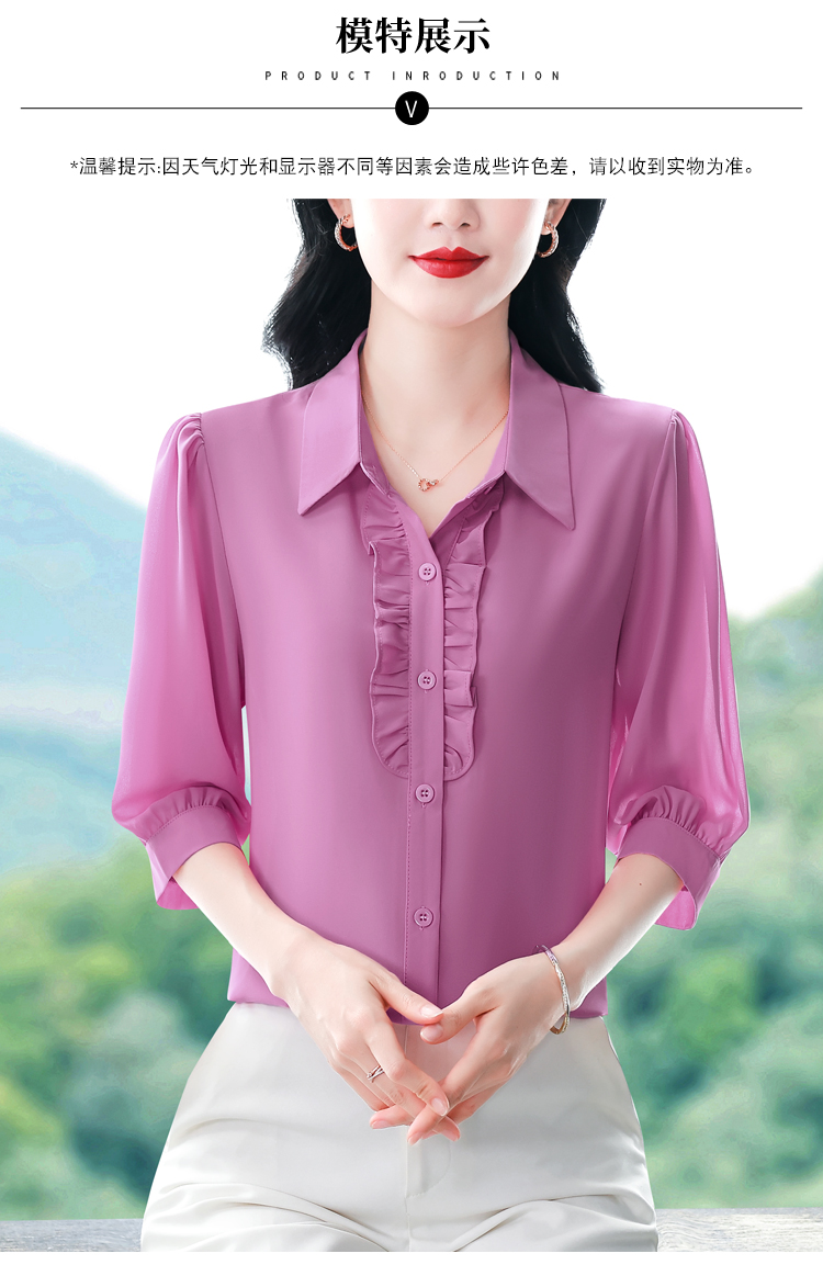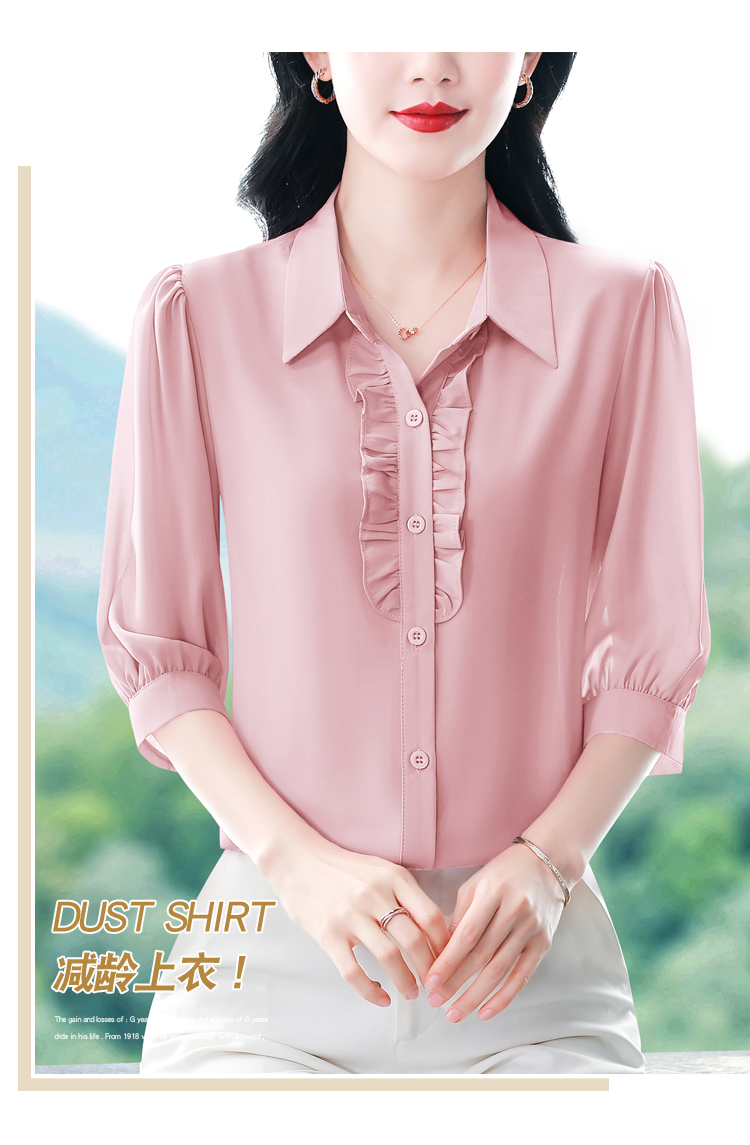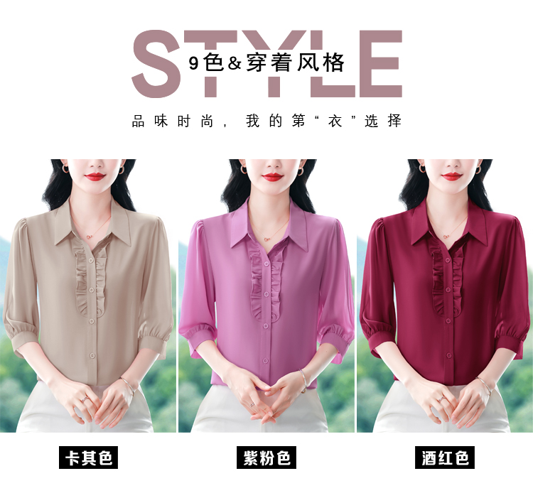 RY3394# 实拍 2026夏季新款洋气七分袖上衣气质减龄衬衫女士大码小衫