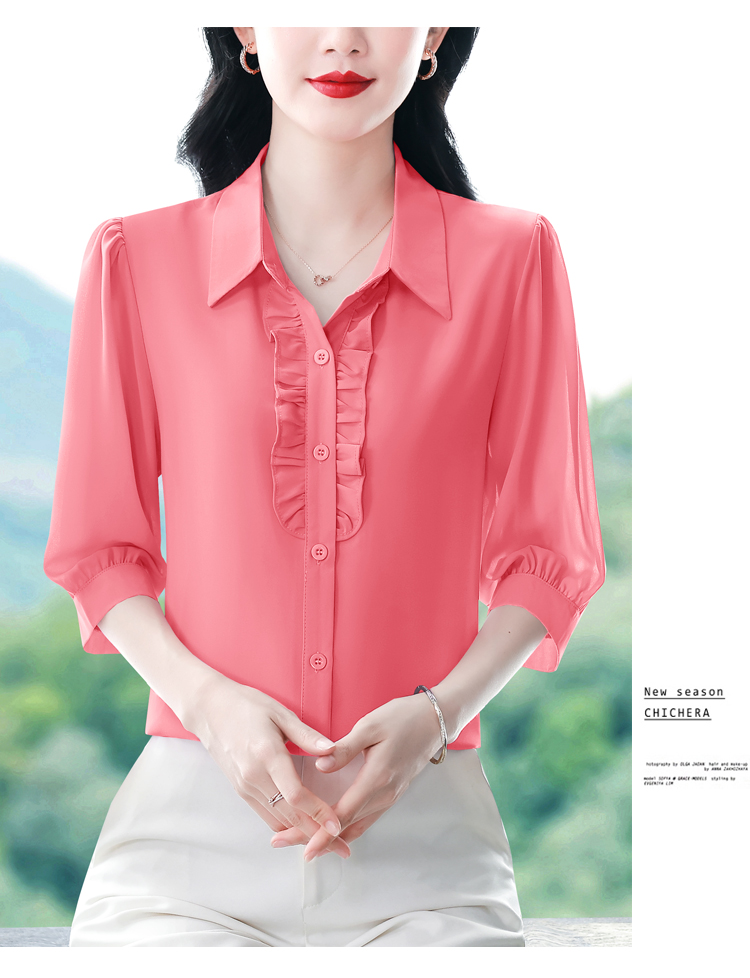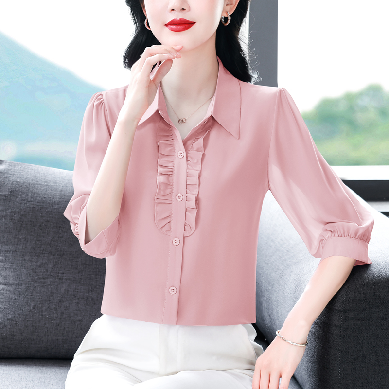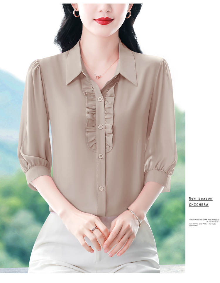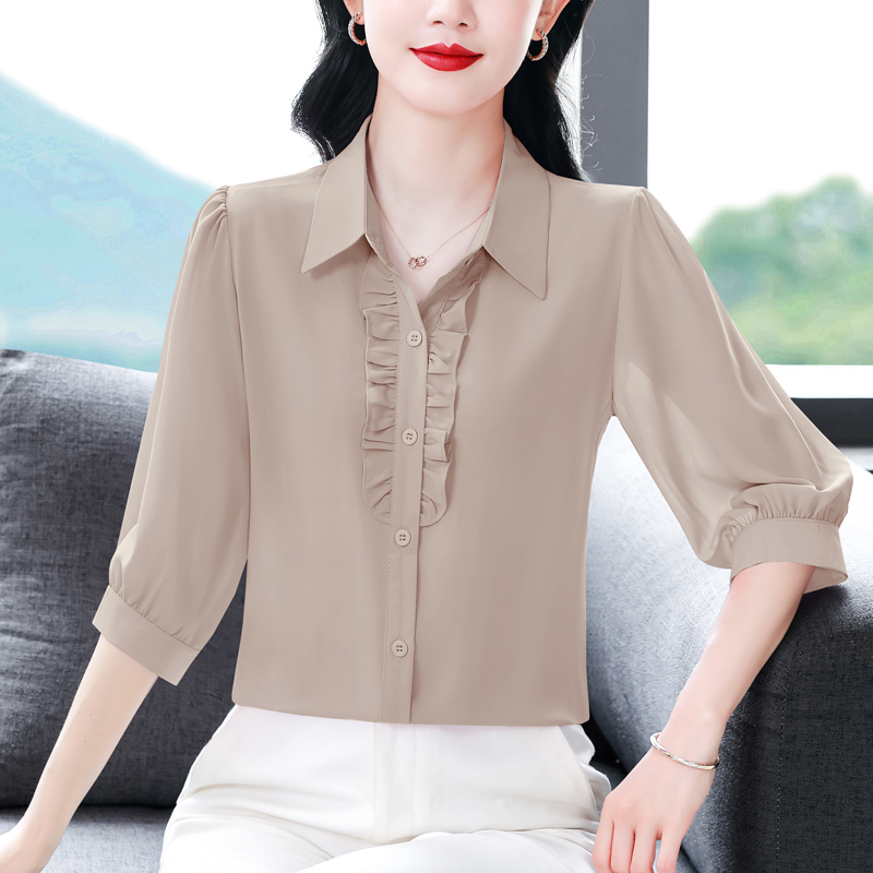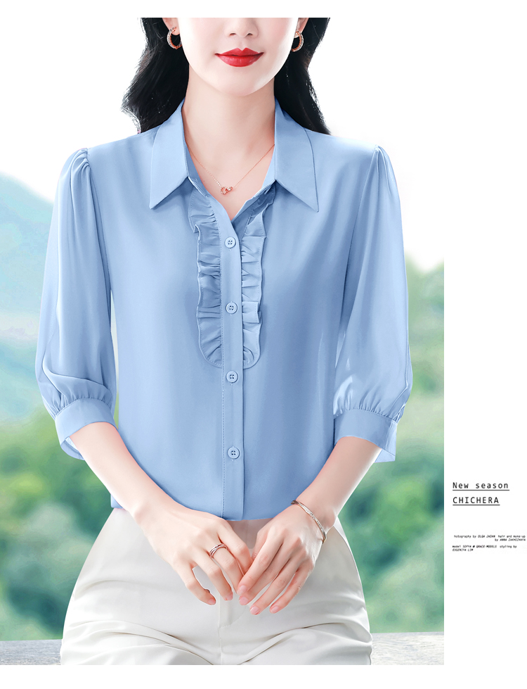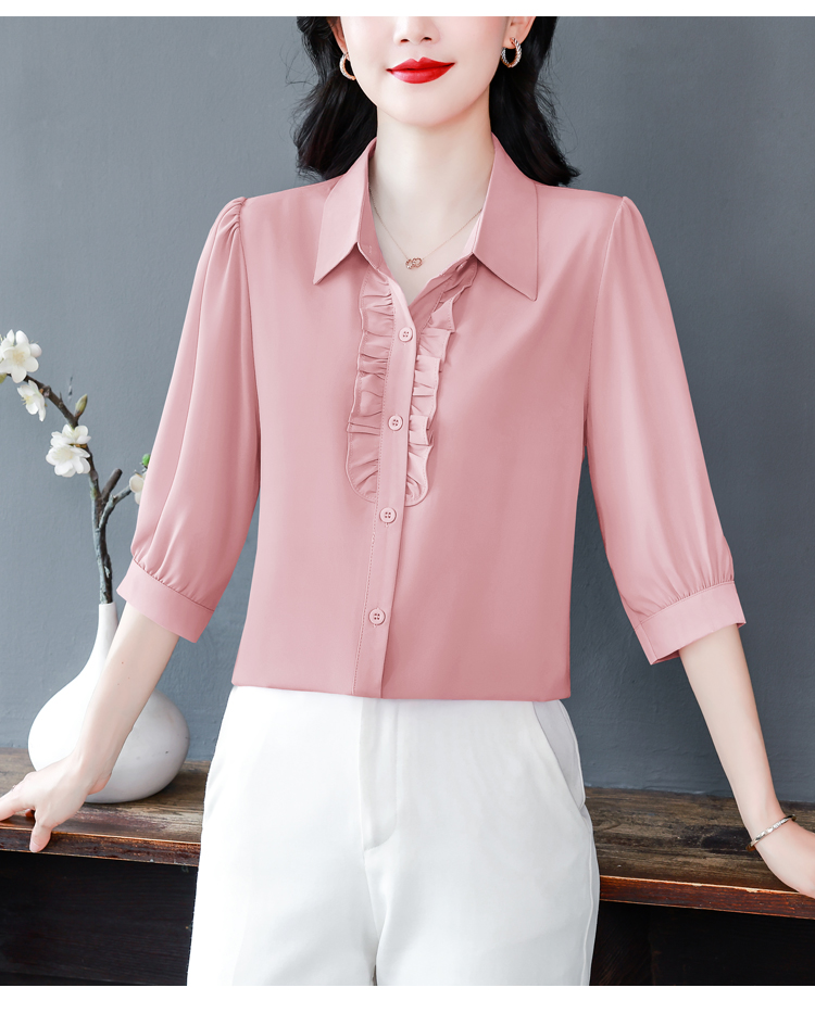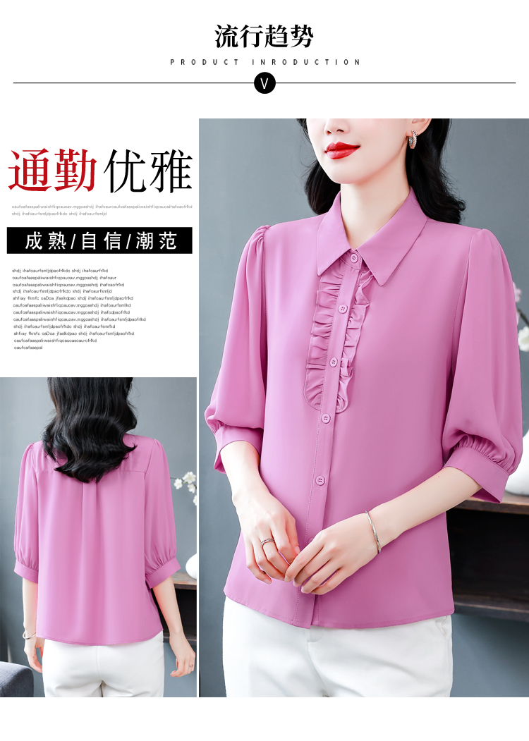RY3394# 实拍 2026夏季新款洋气七分袖上衣气质减龄衬衫女士大码小衫