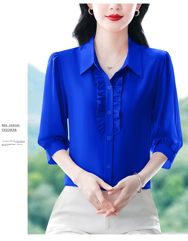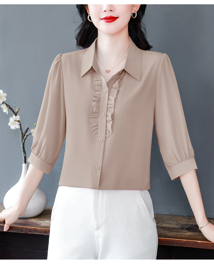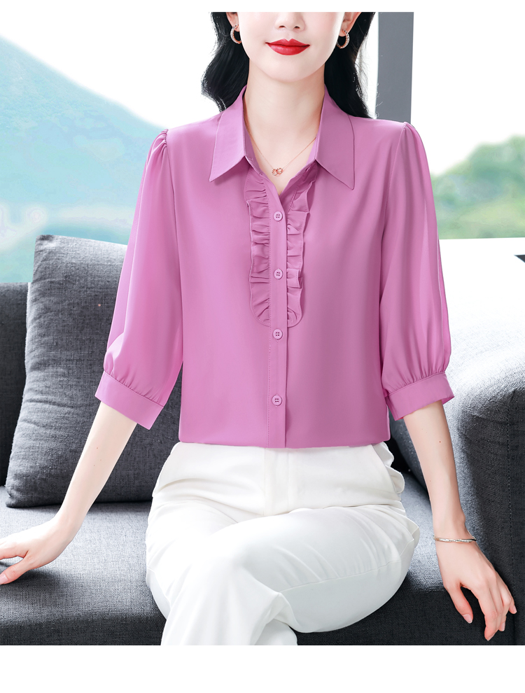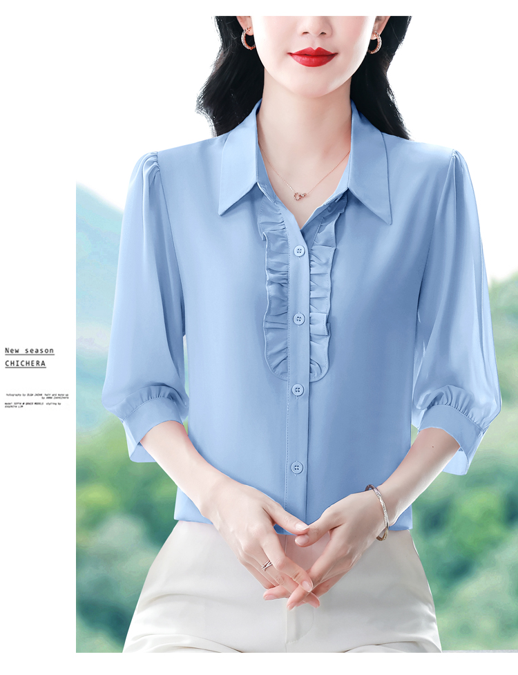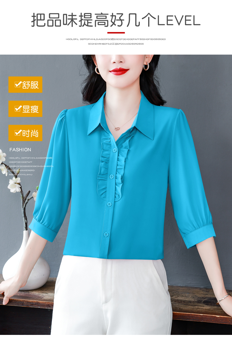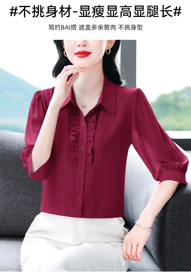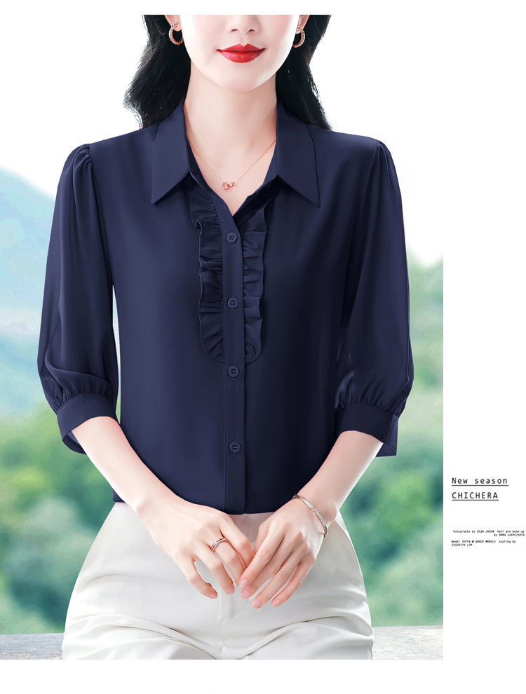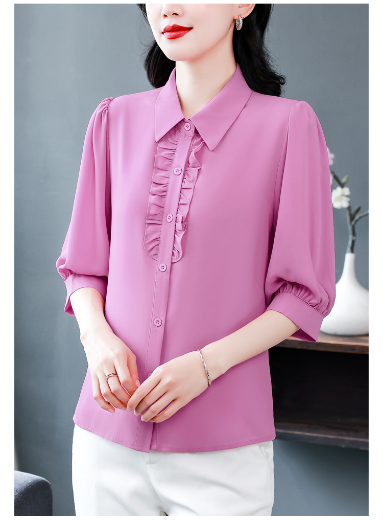 RY3394# 实拍 2026夏季新款洋气七分袖上衣气质减龄衬衫女士大码小衫