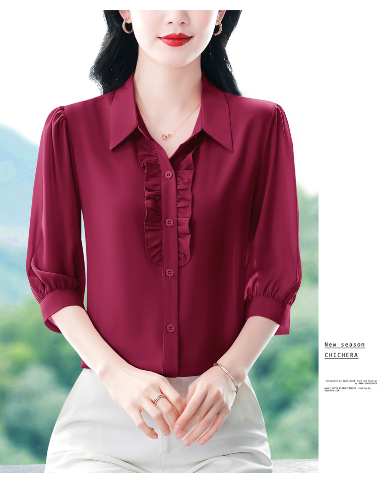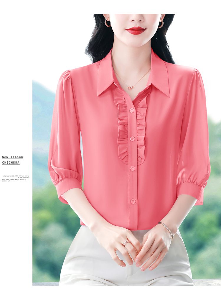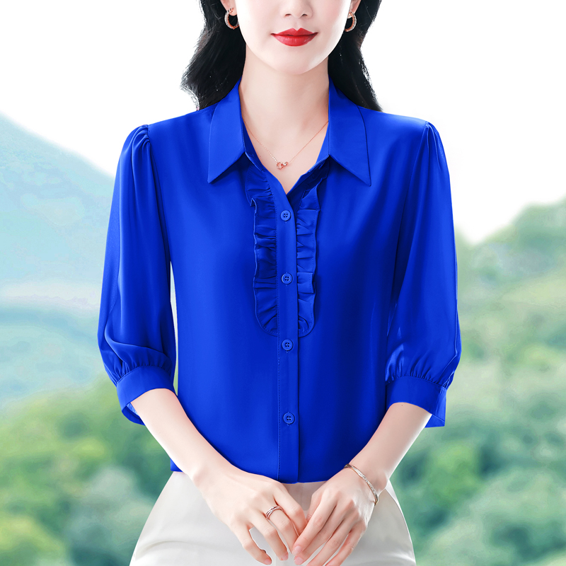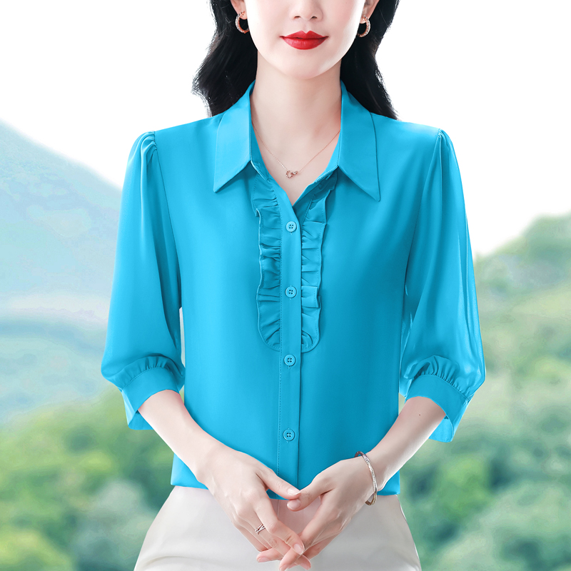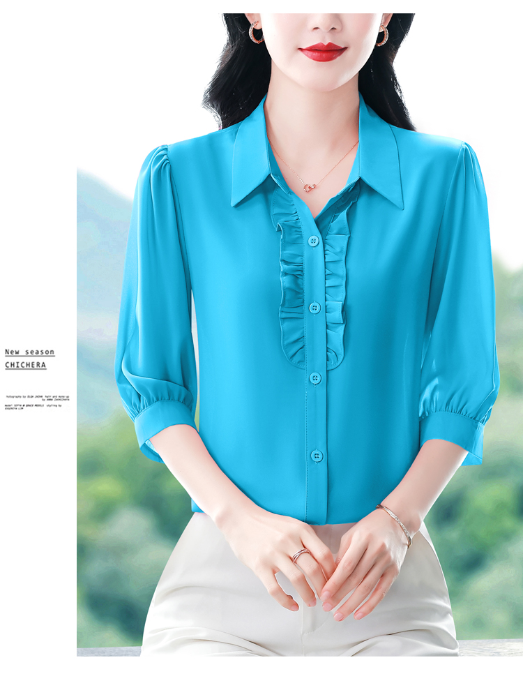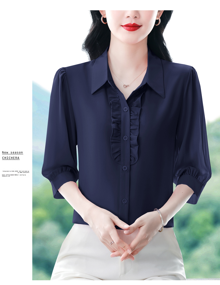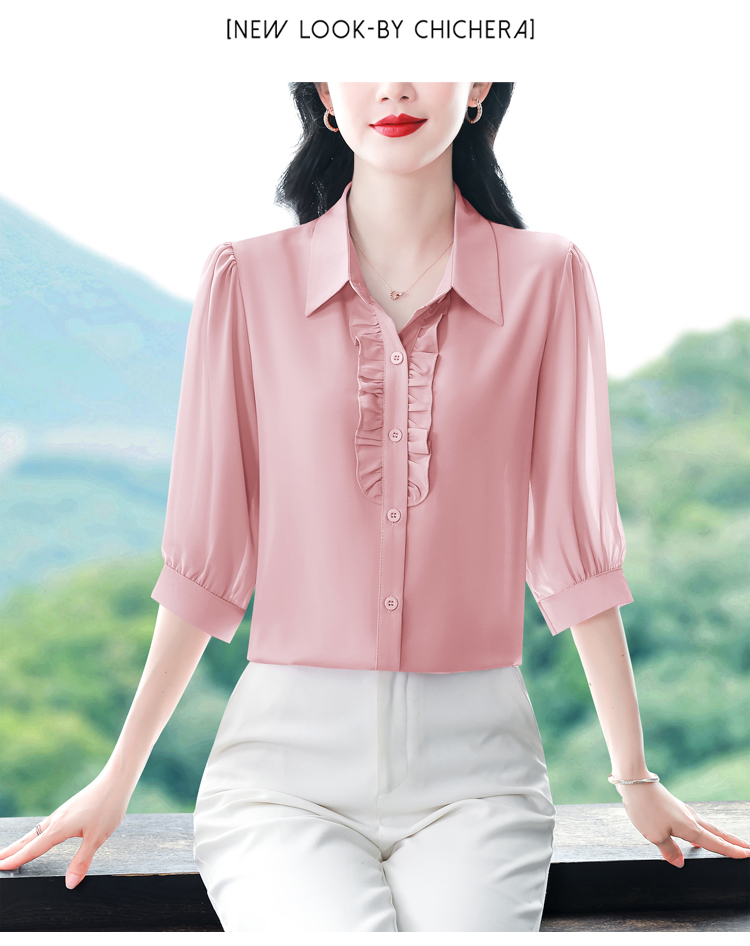 RY3394# 实拍 2026夏季新款洋气七分袖上衣气质减龄衬衫女士大码小衫