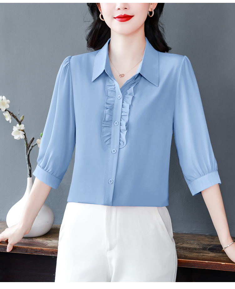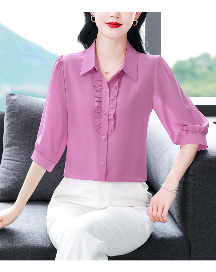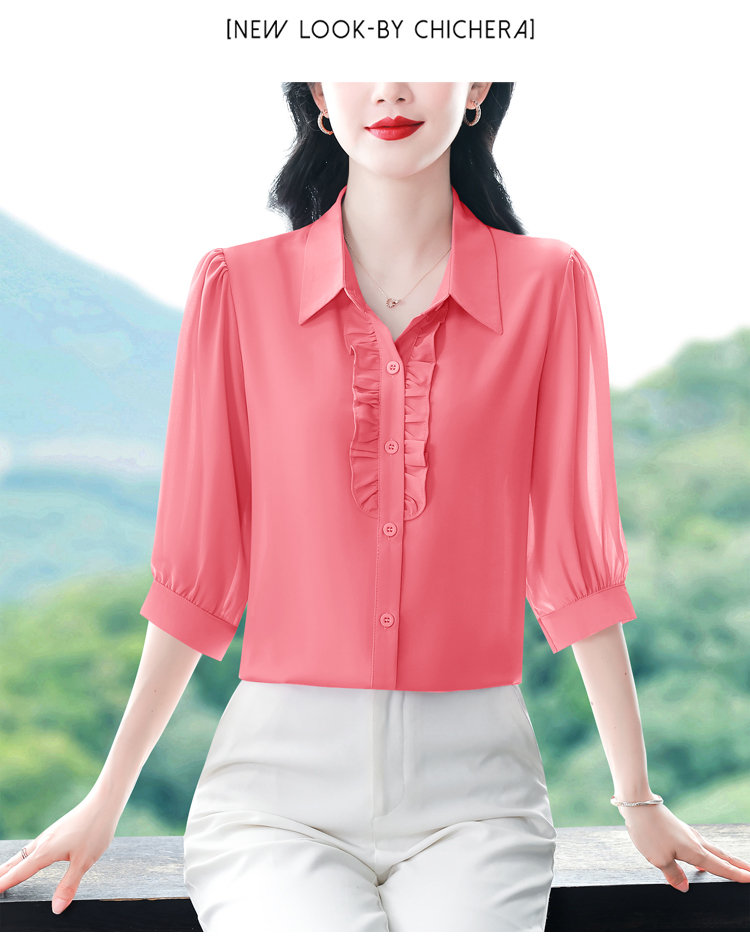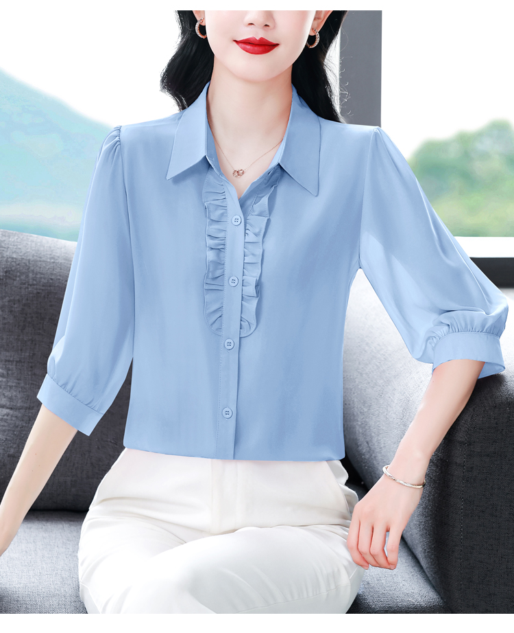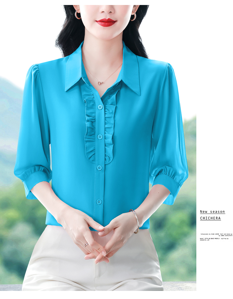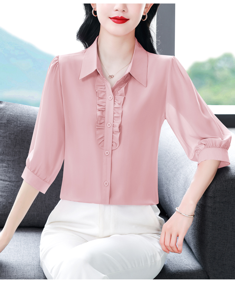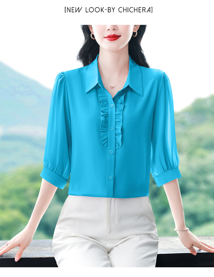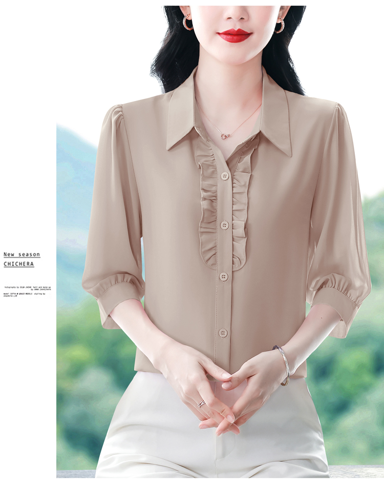 RY3394# 实拍 2026夏季新款洋气七分袖上衣气质减龄衬衫女士大码小衫
