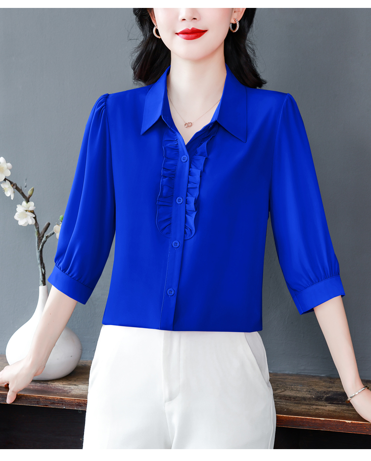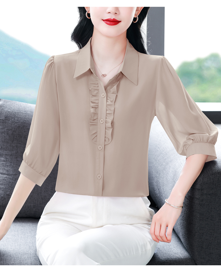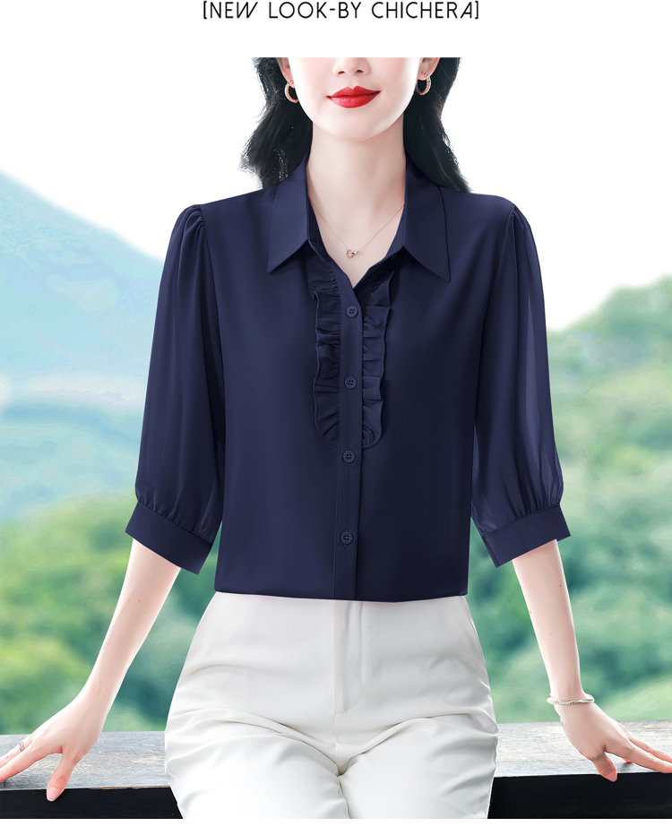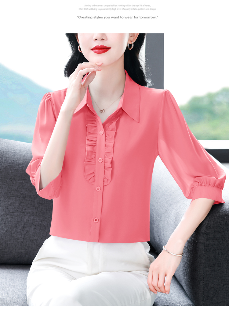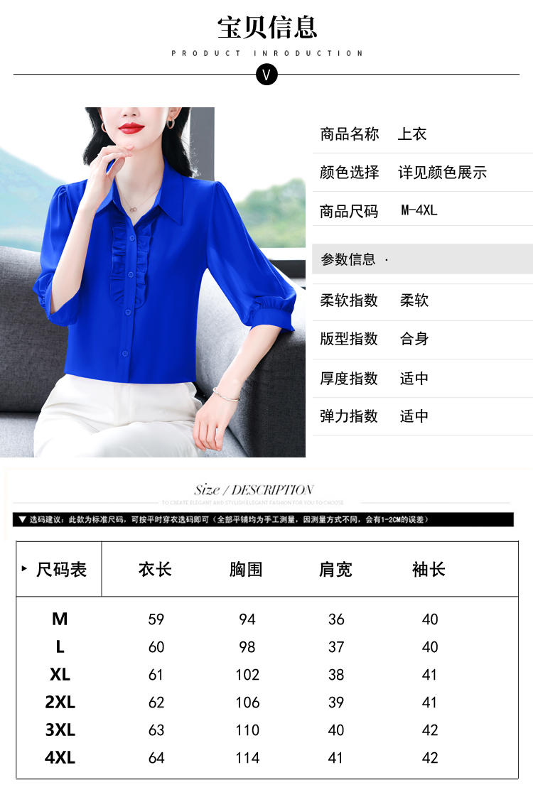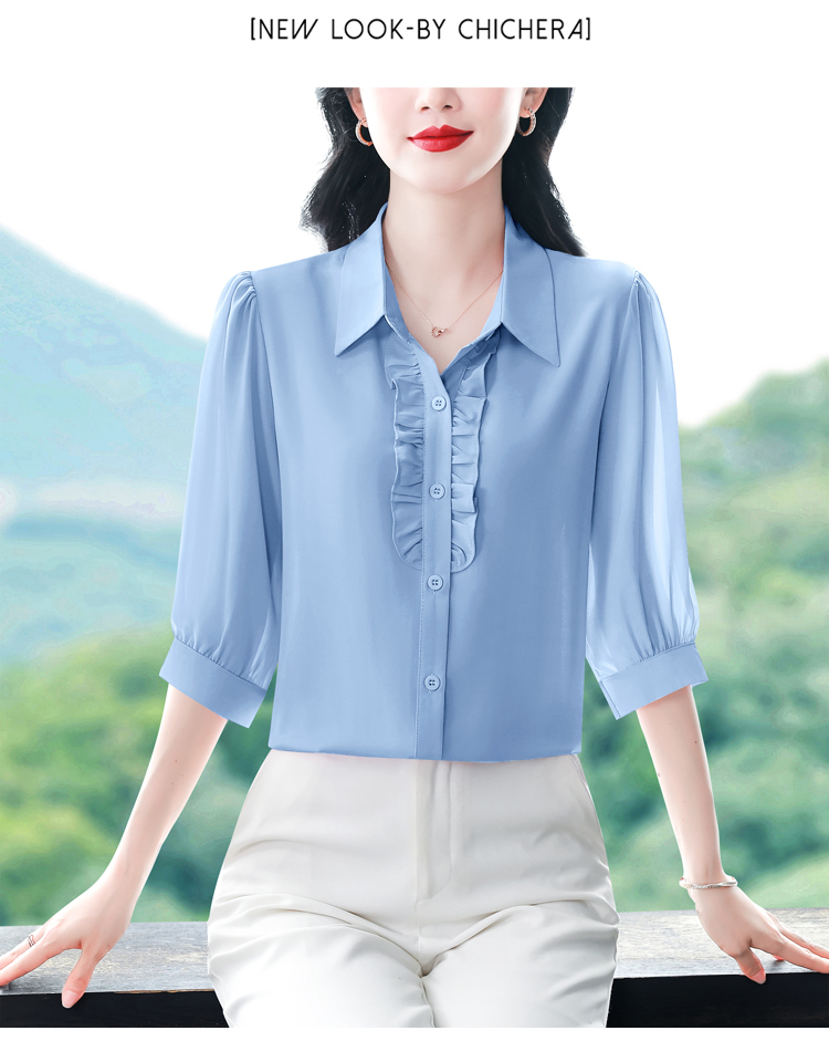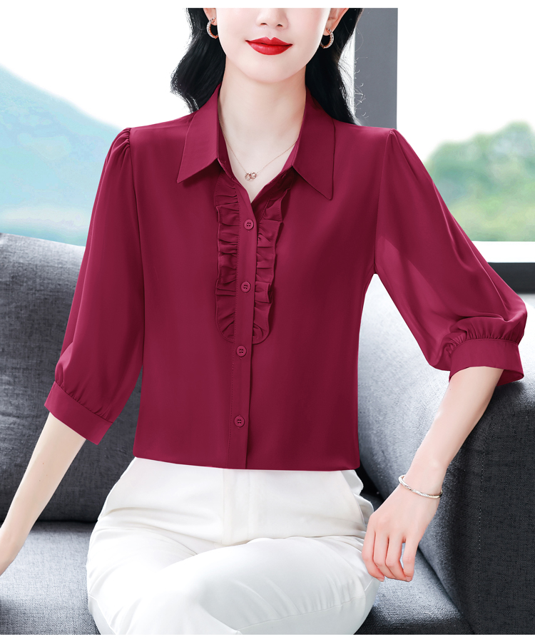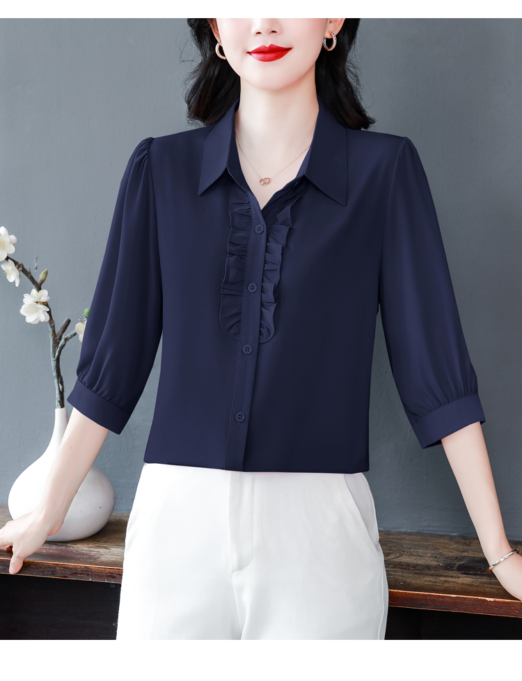 RY3394# 实拍 2026夏季新款洋气七分袖上衣气质减龄衬衫女士大码小衫