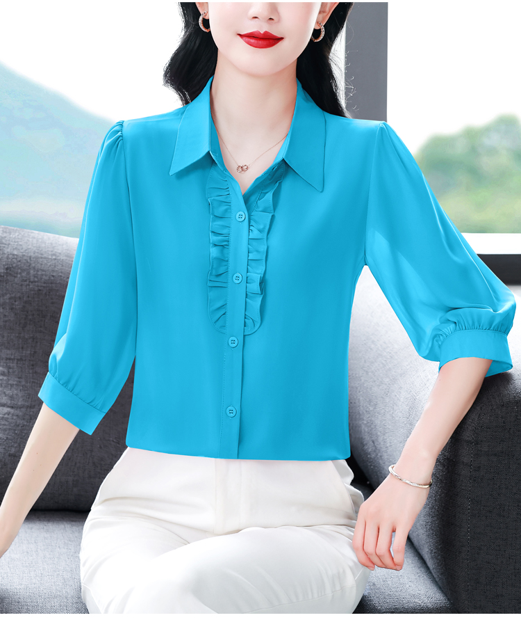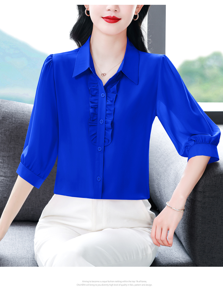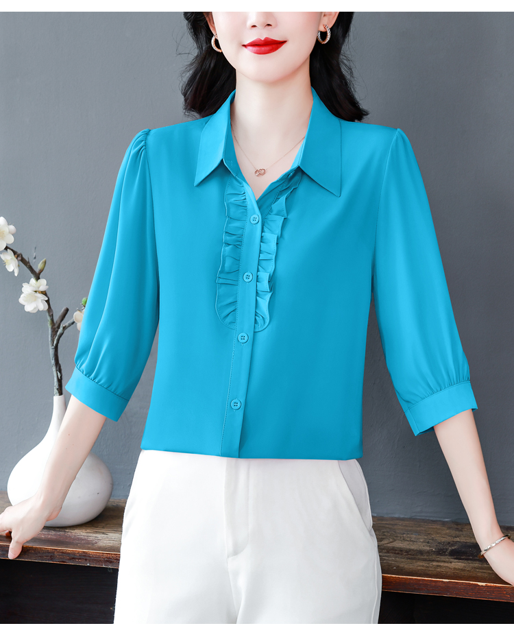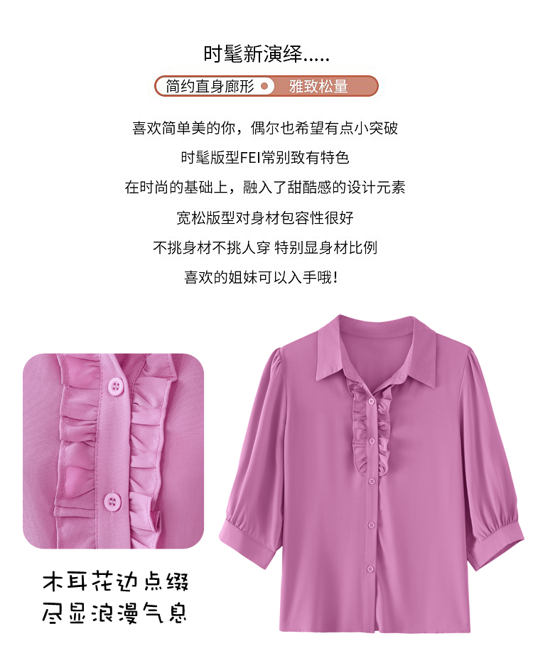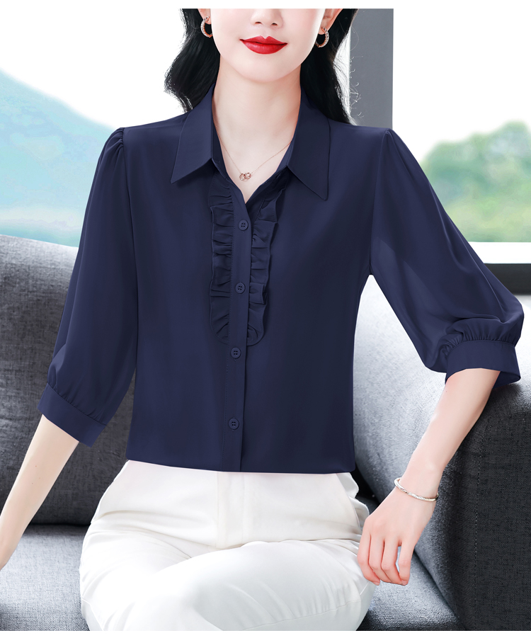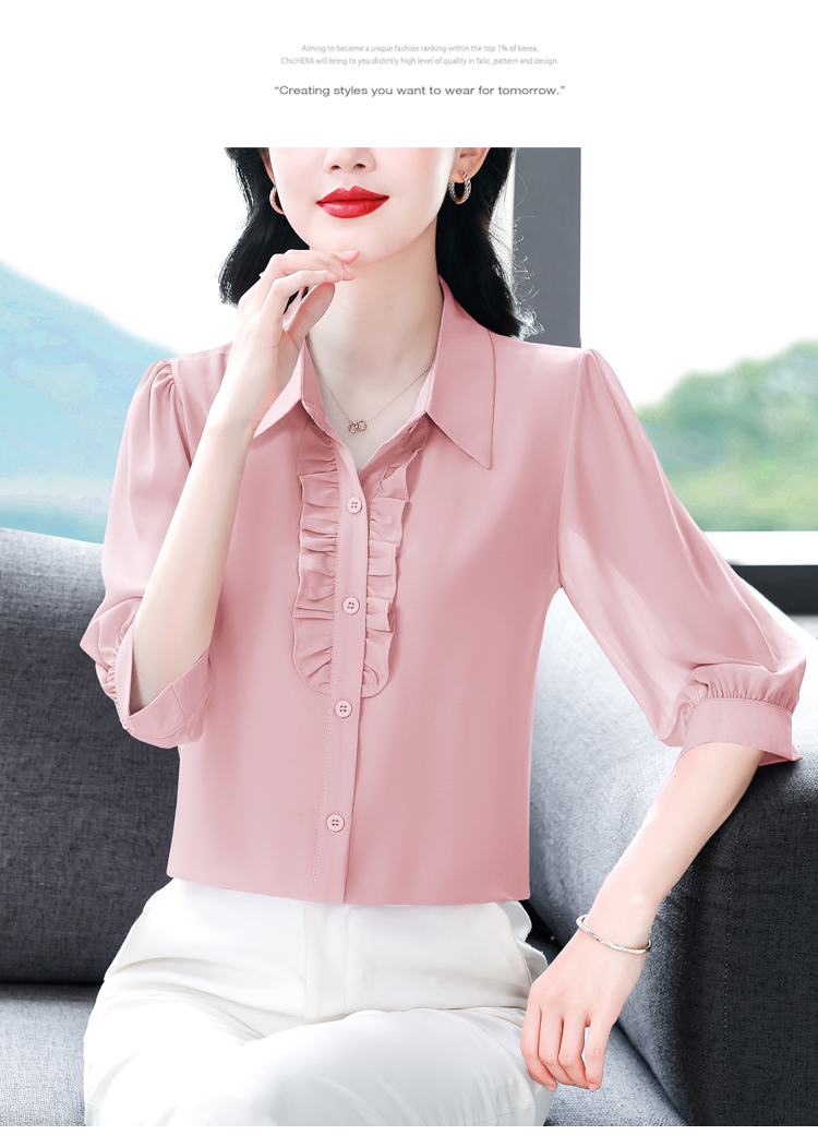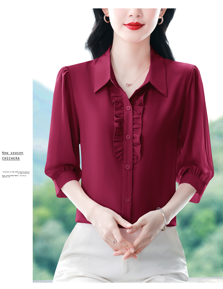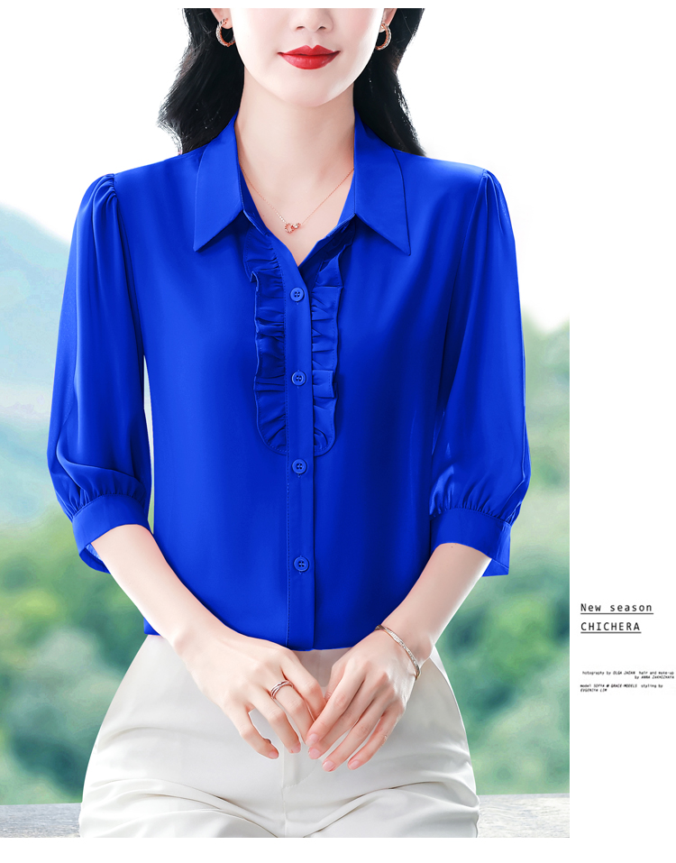 RY3394# 实拍 2026夏季新款洋气七分袖上衣气质减龄衬衫女士大码小衫