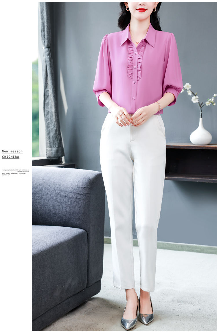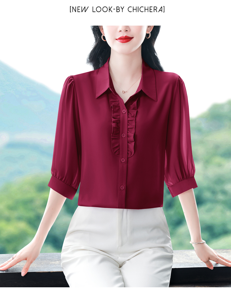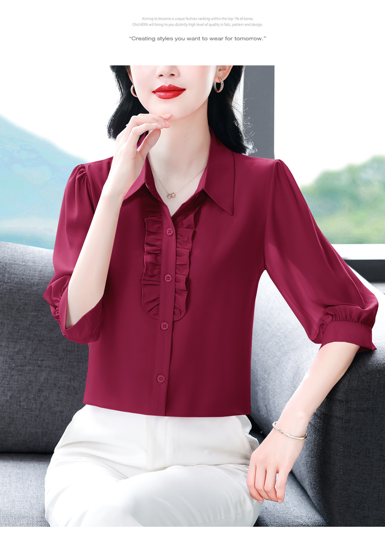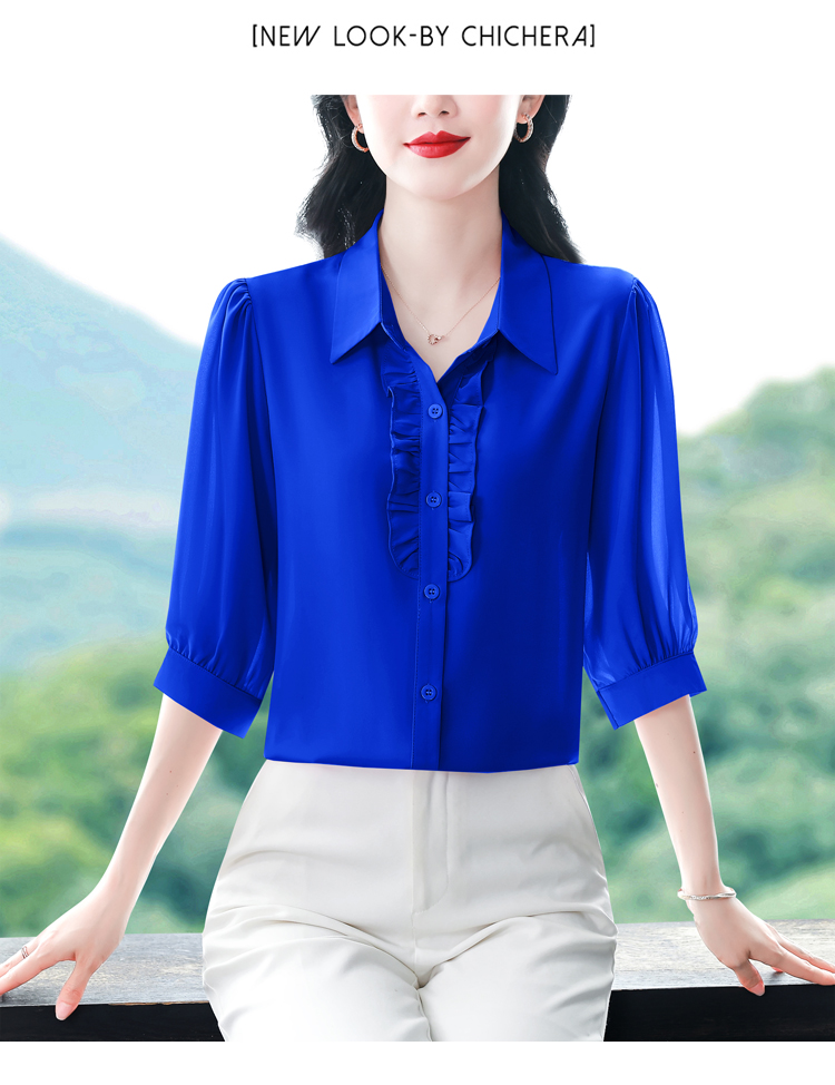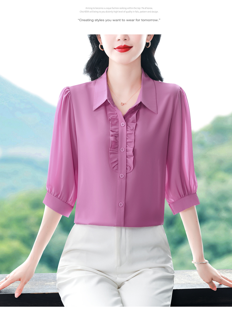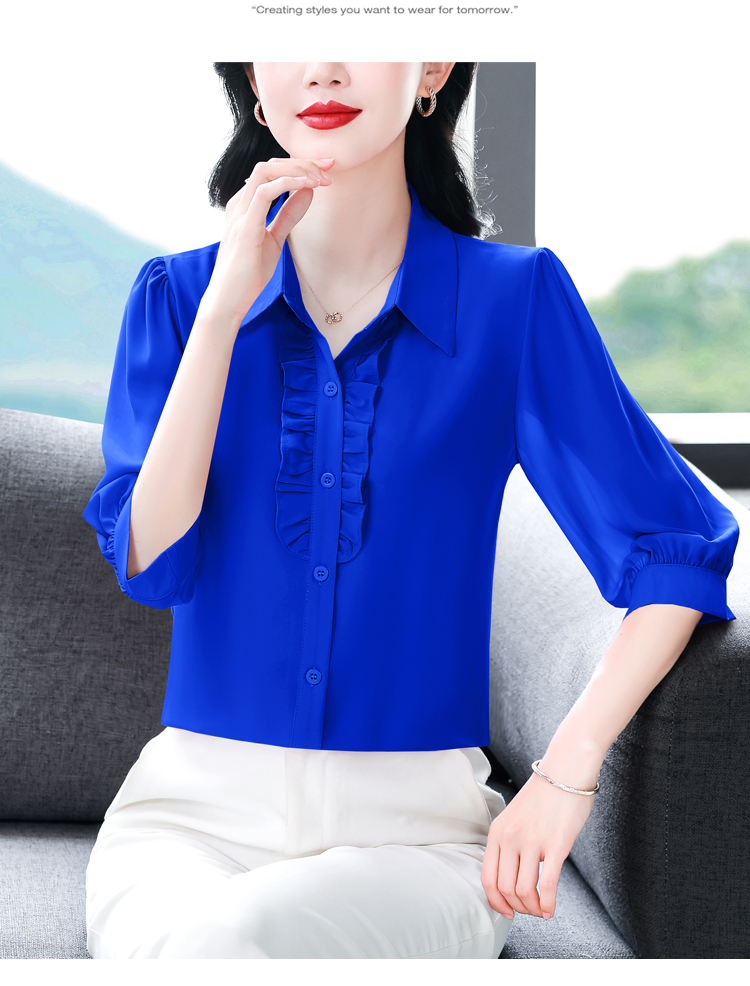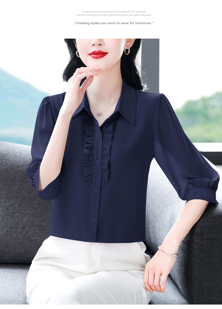 RY3394# 实拍 2026夏季新款洋气七分袖上衣气质减龄衬衫女士大码小衫