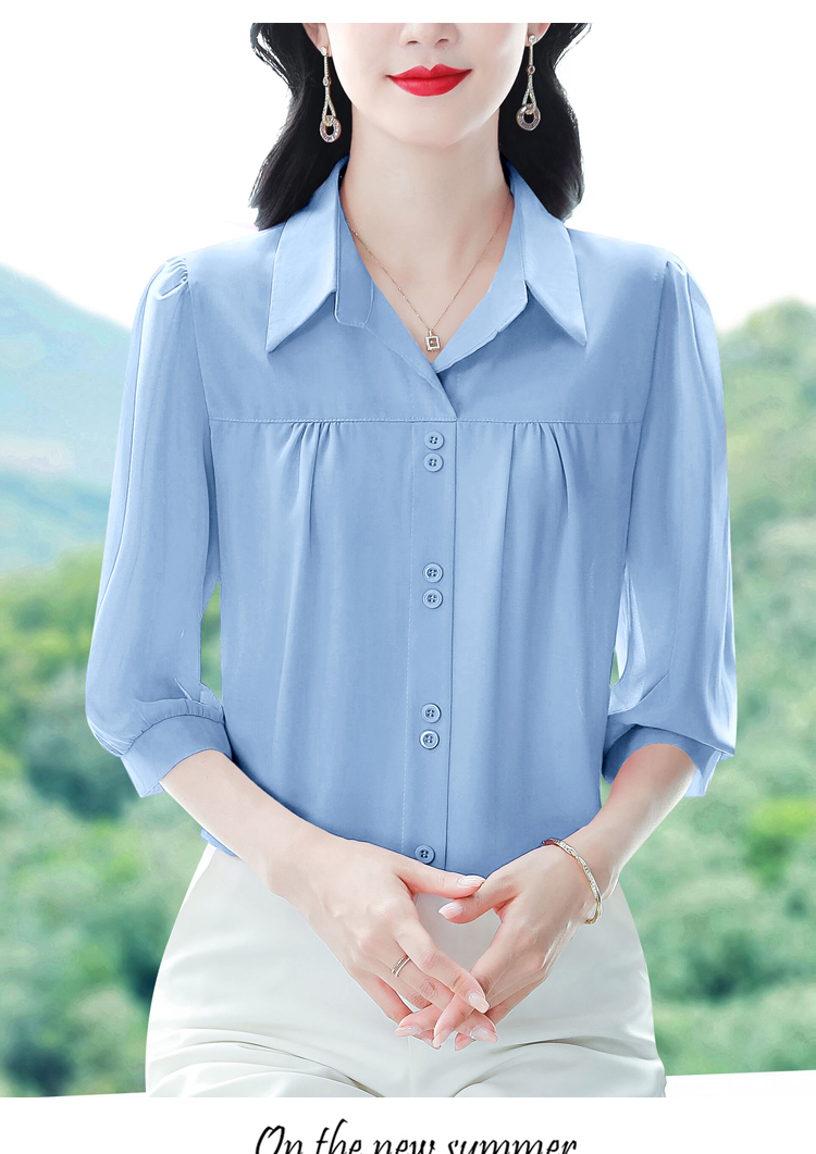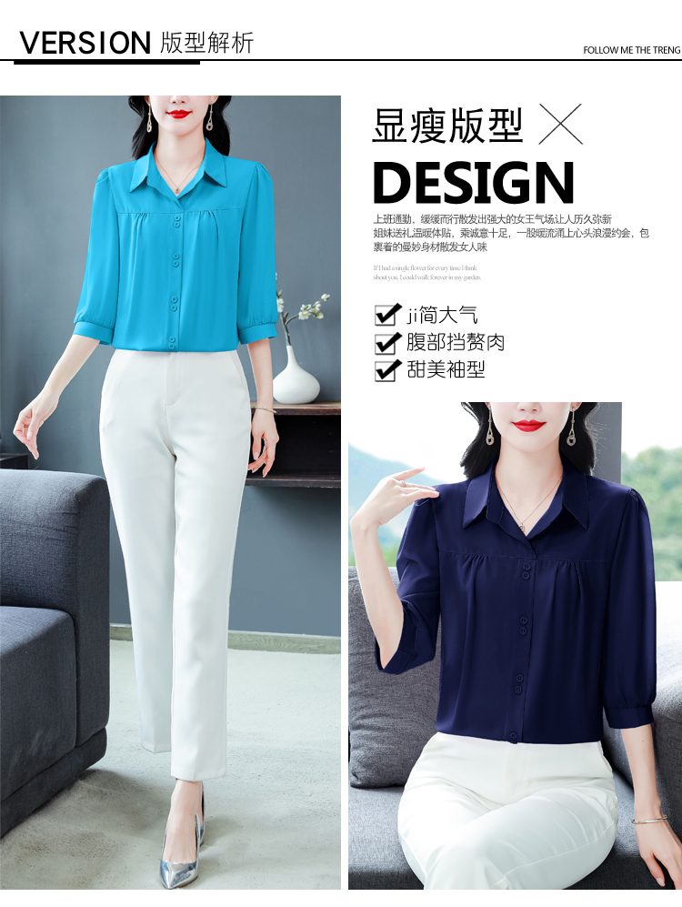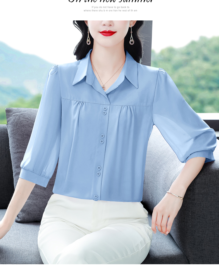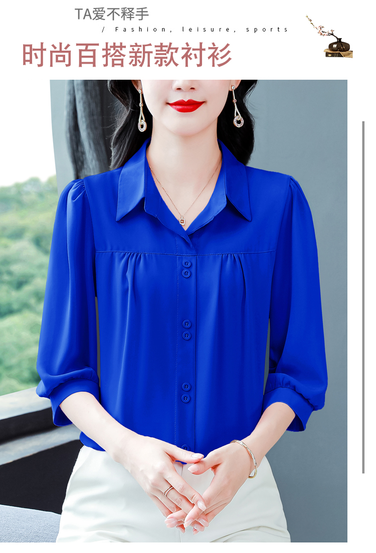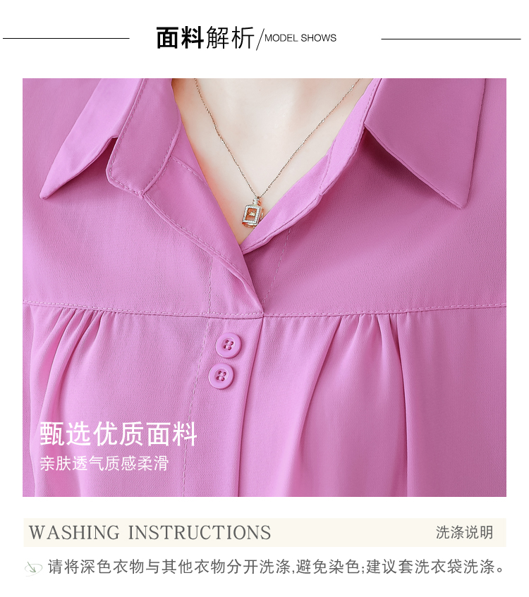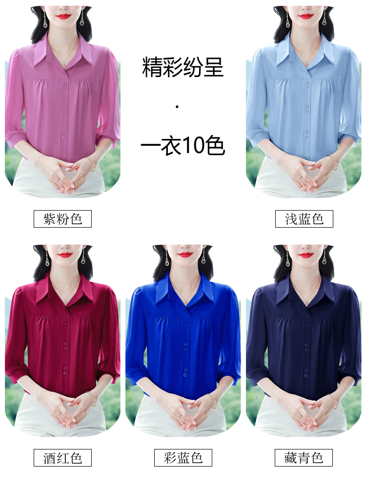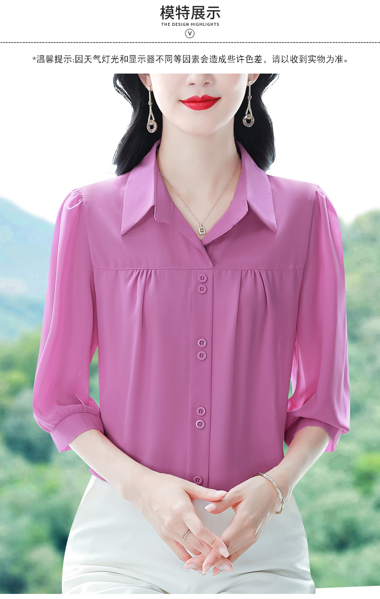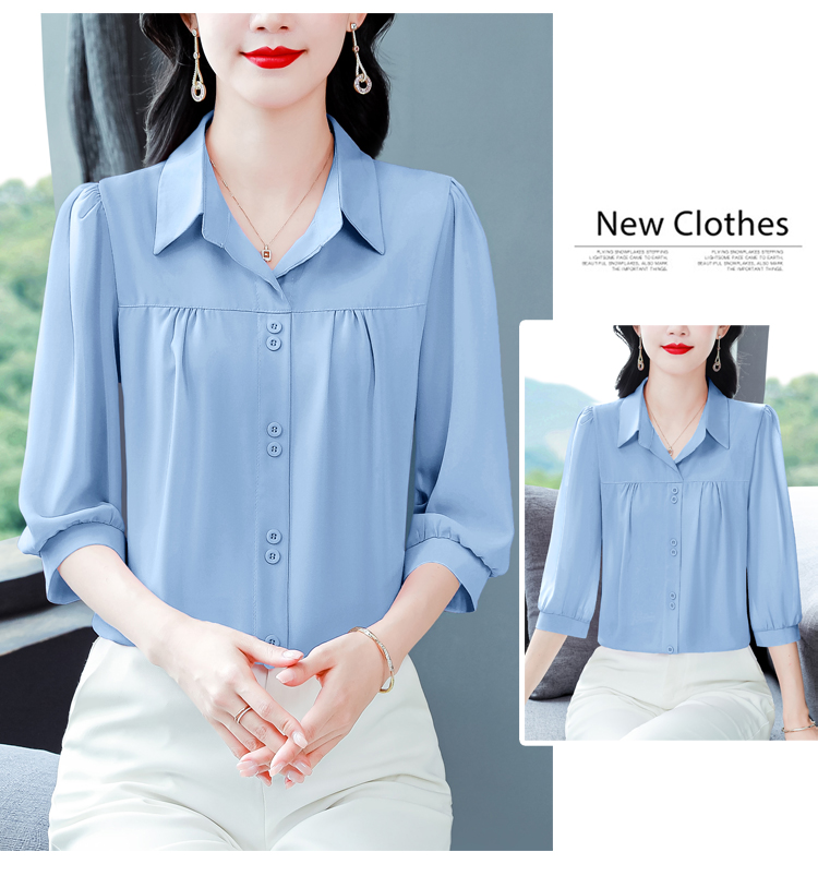 RY3530# 春夏新款七分袖真丝桑蚕丝雪纺翻领开襟衬衫防晒气质显瘦遮肚上...