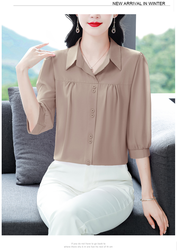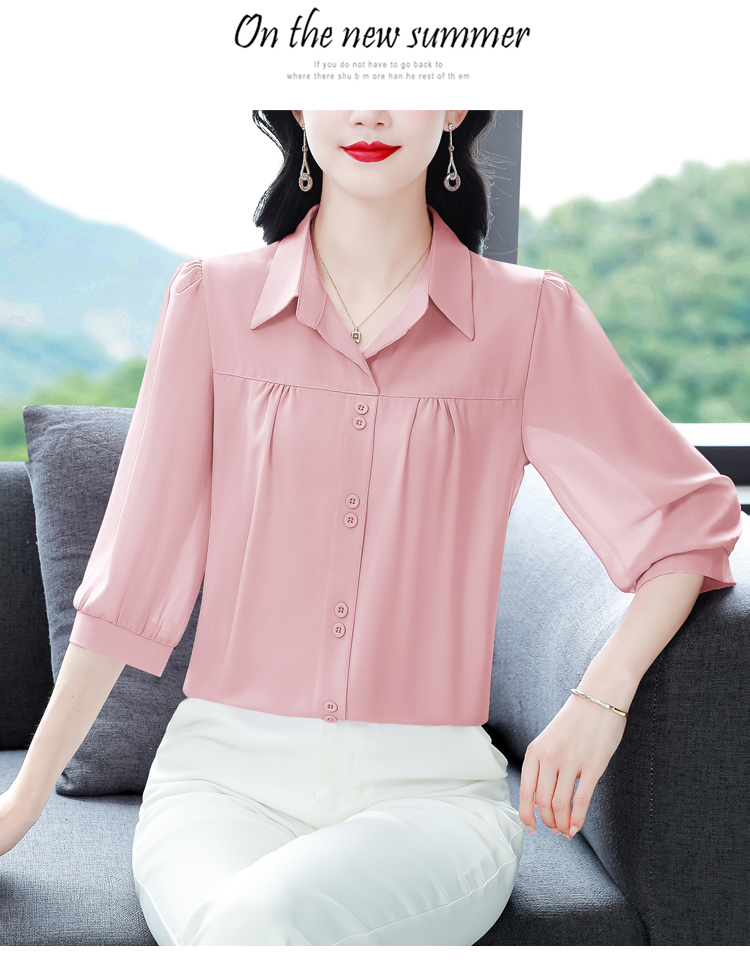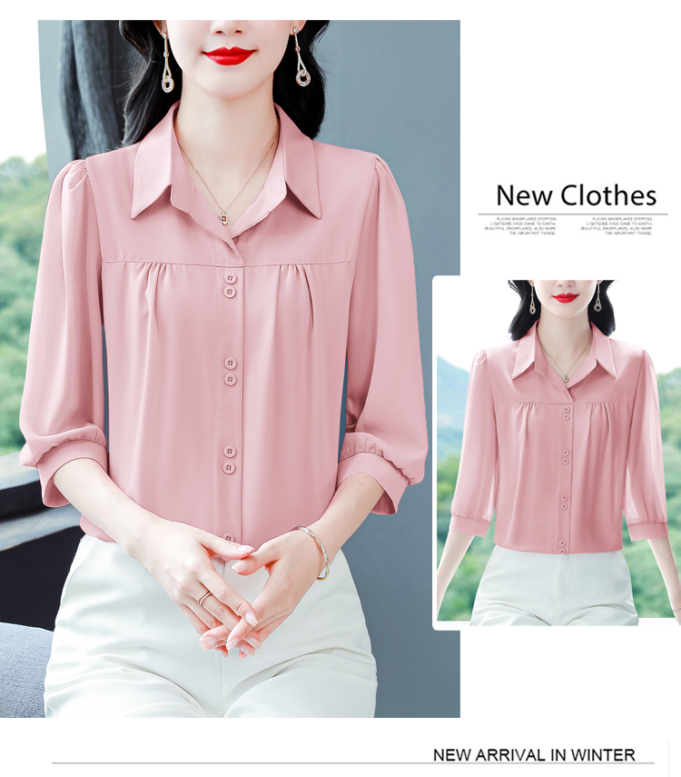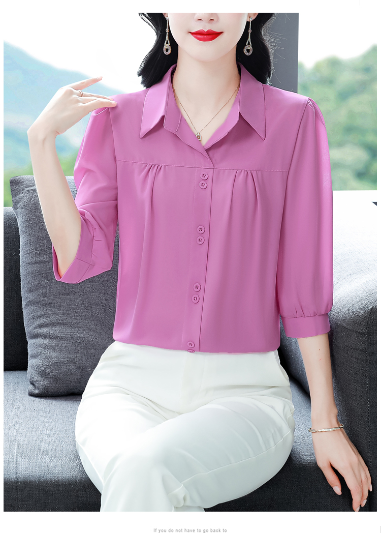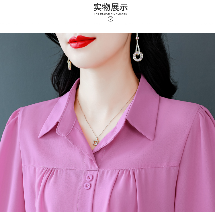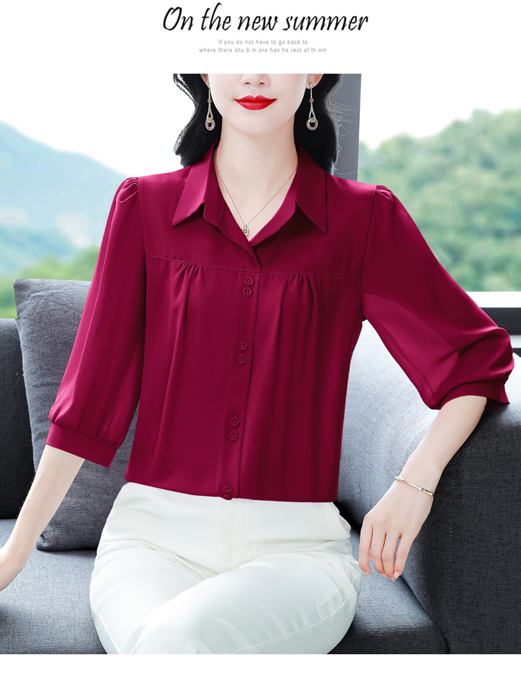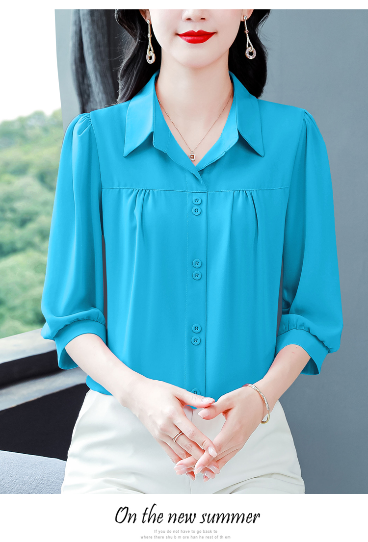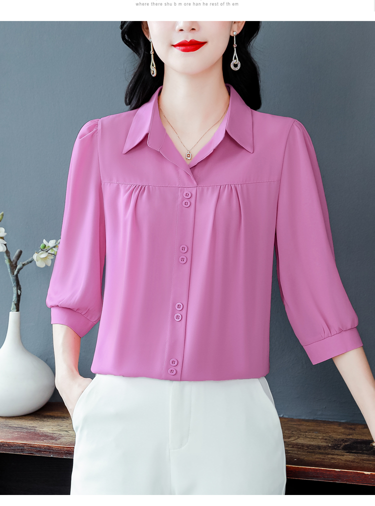 RY3530# 春夏新款七分袖真丝桑蚕丝雪纺翻领开襟衬衫防晒气质显瘦遮肚上...