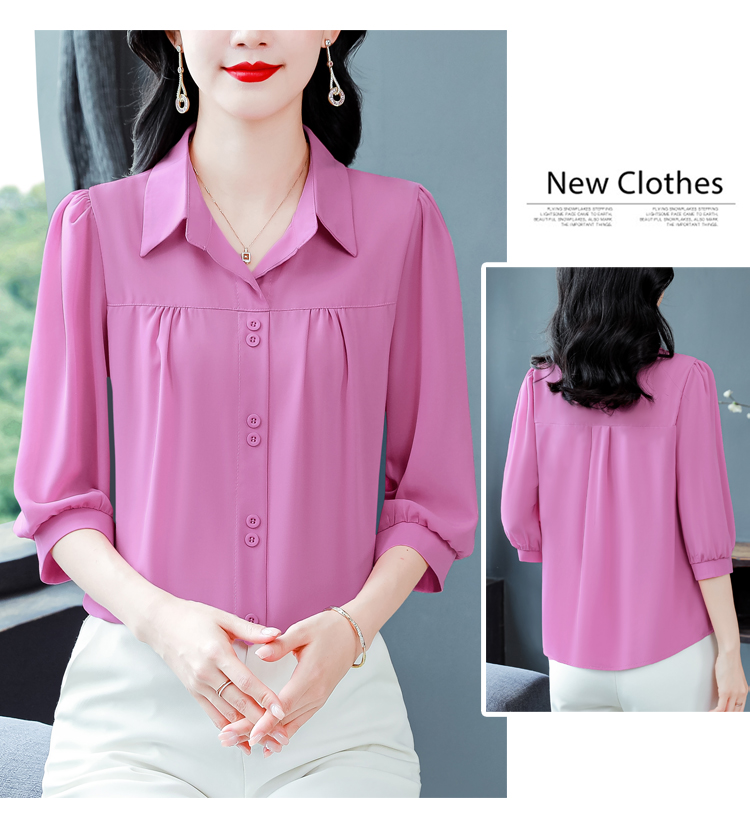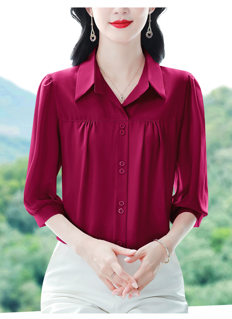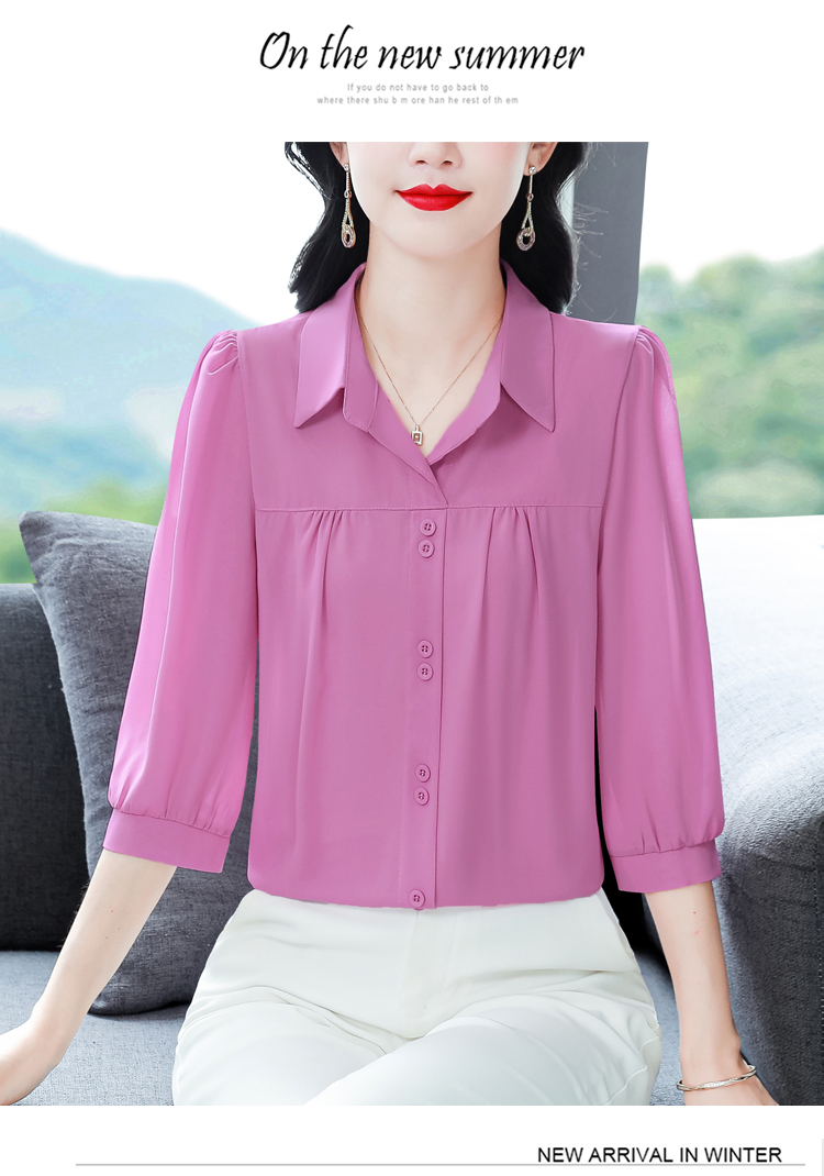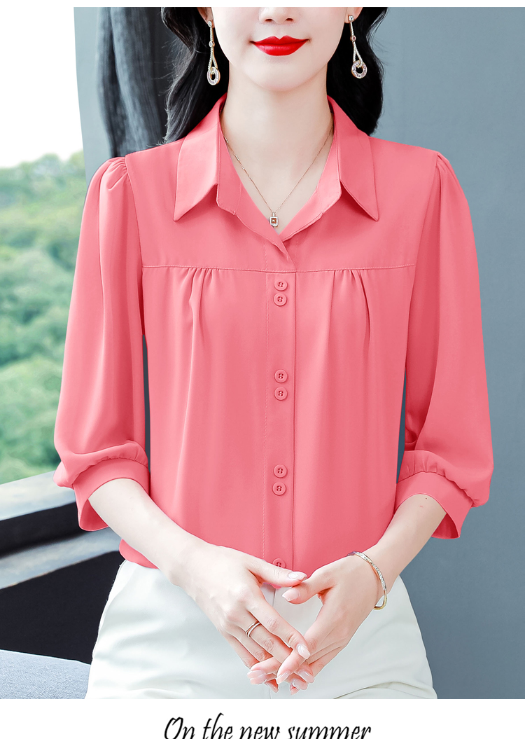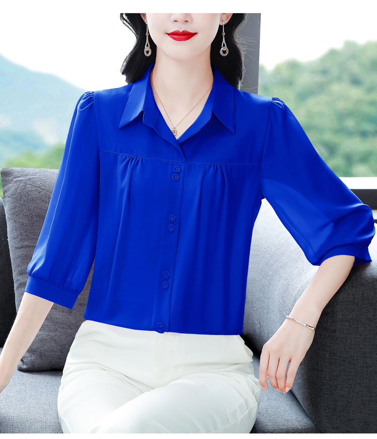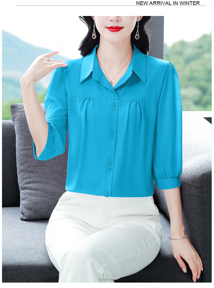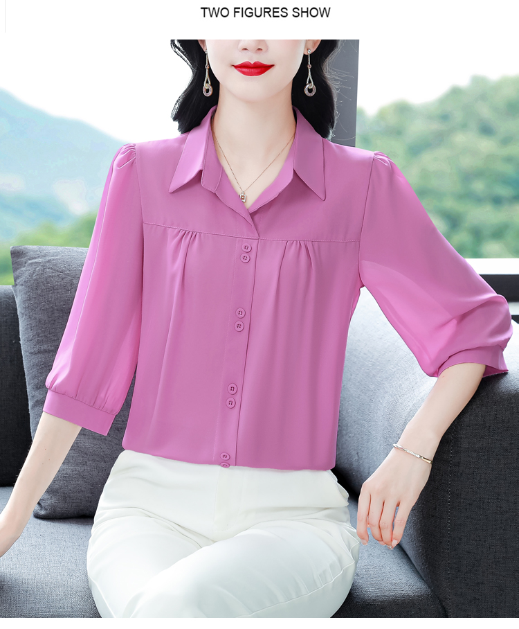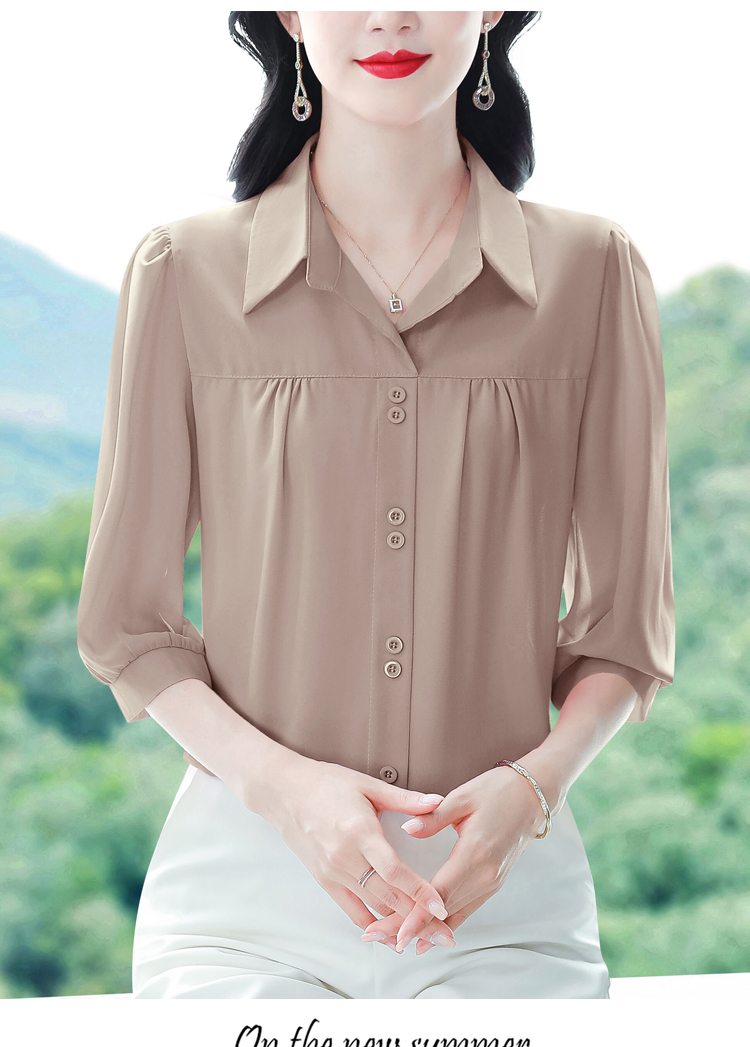 RY3530# 春夏新款七分袖真丝桑蚕丝雪纺翻领开襟衬衫防晒气质显瘦遮肚上...