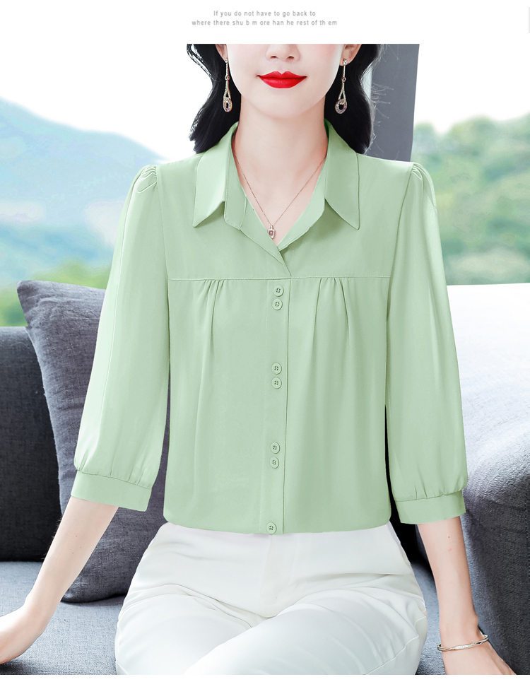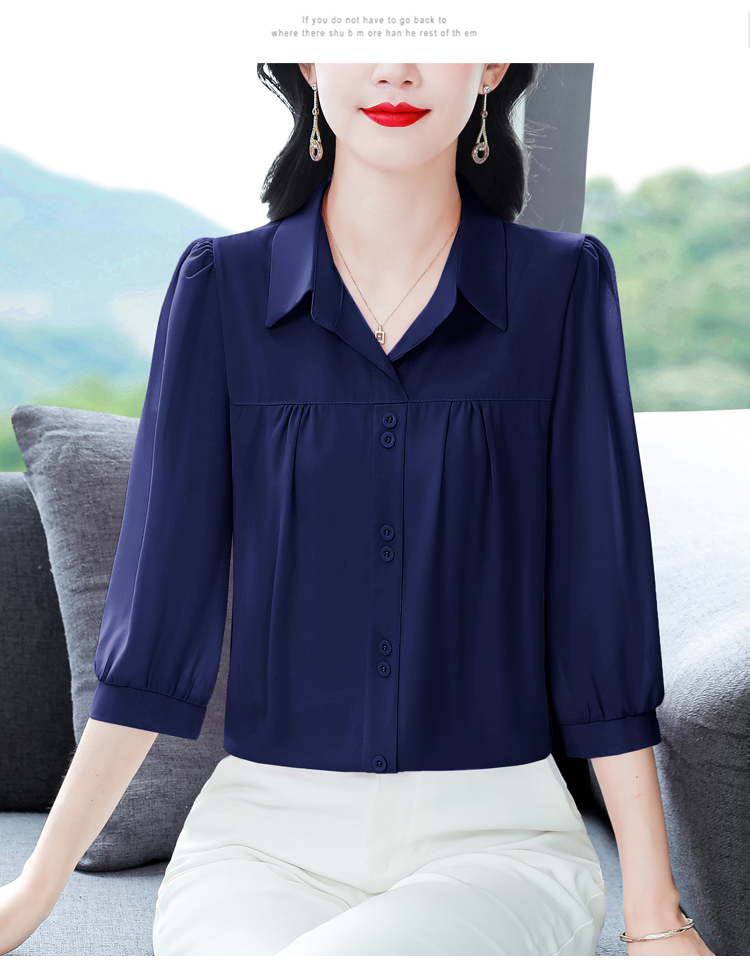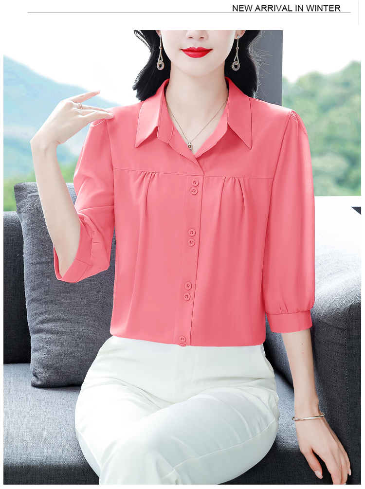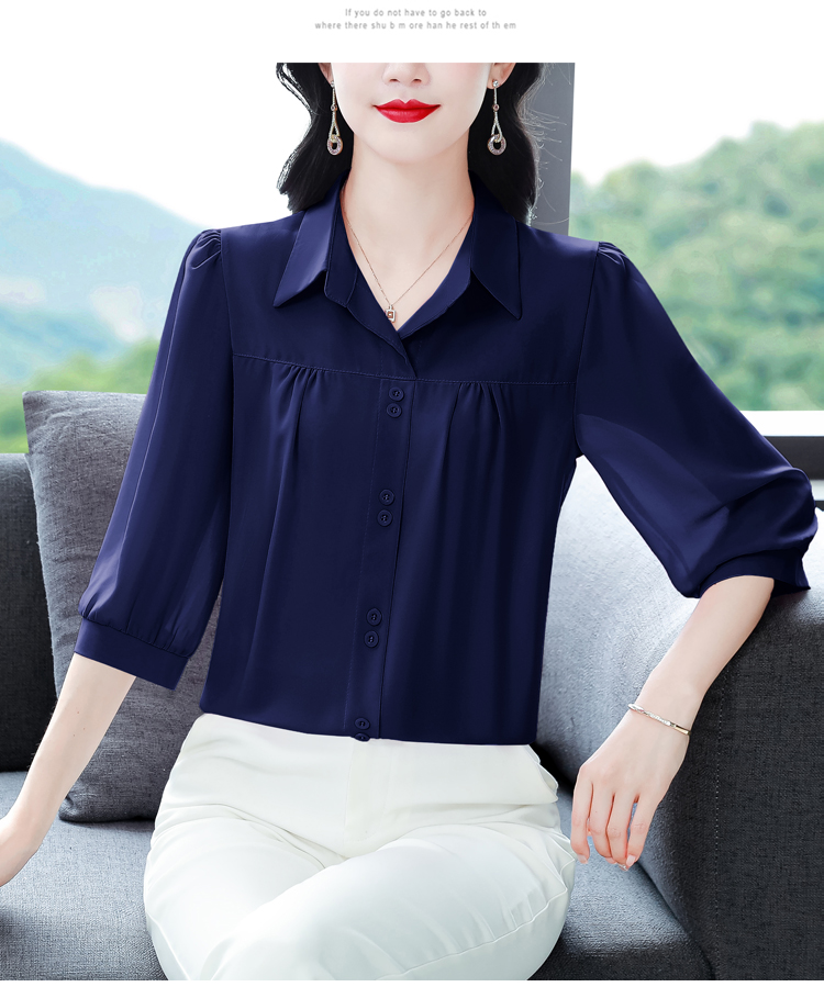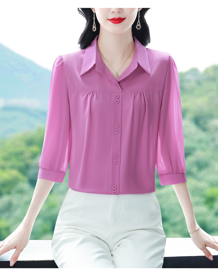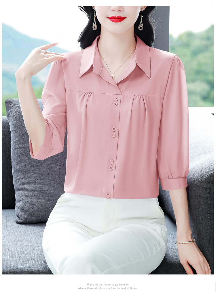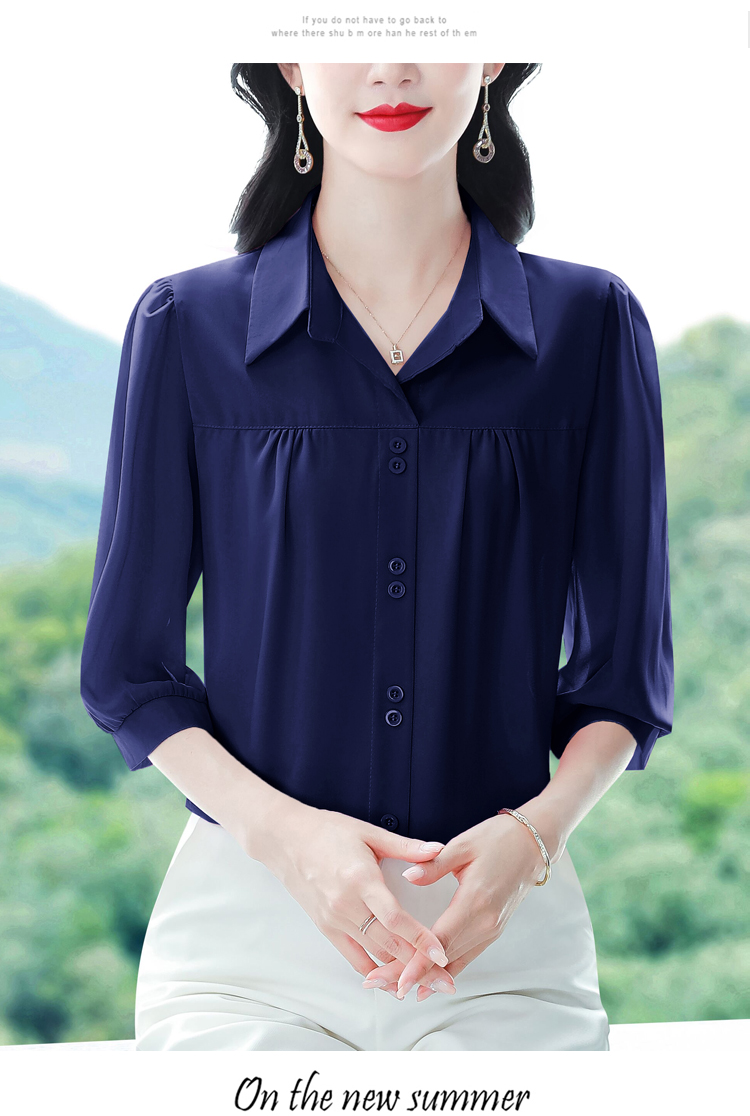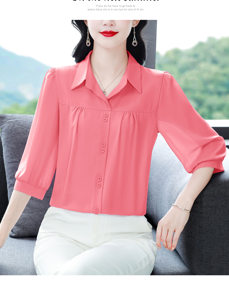 RY3530# 春夏新款七分袖真丝桑蚕丝雪纺翻领开襟衬衫防晒气质显瘦遮肚上...