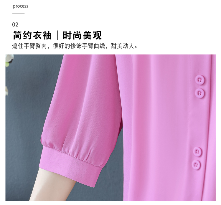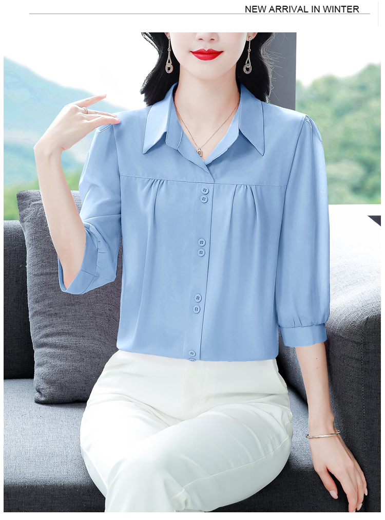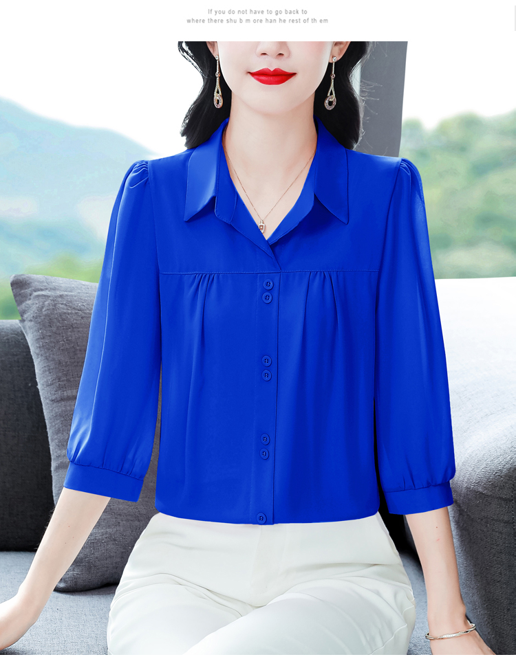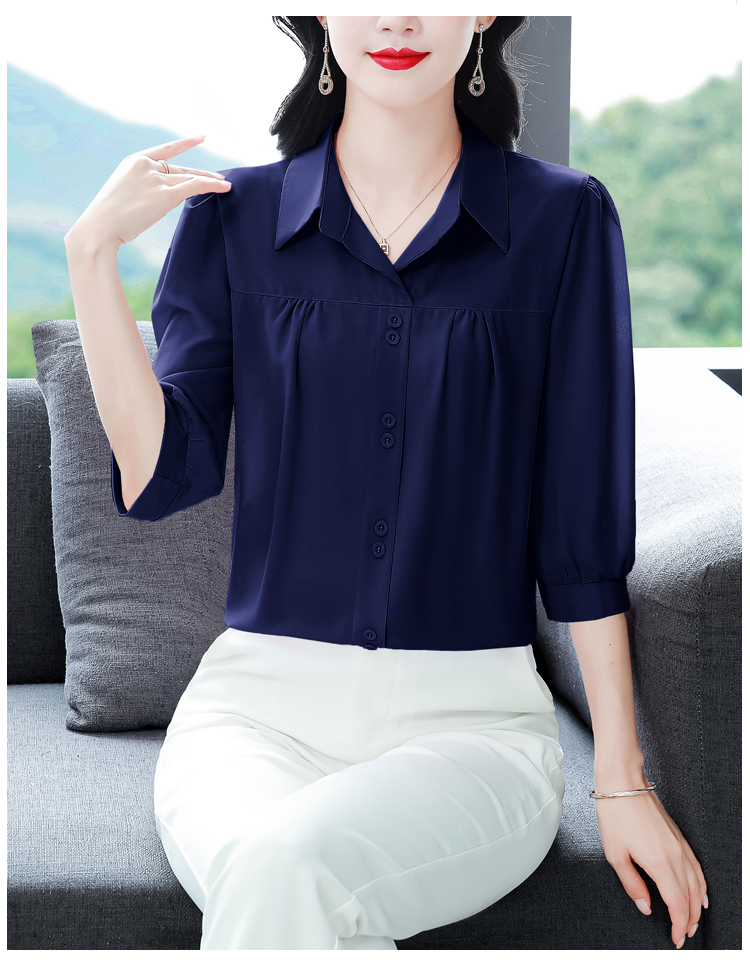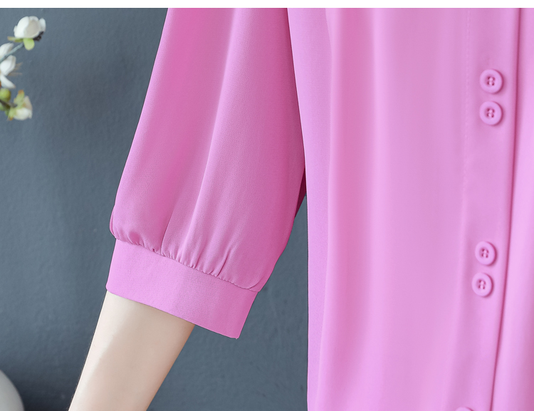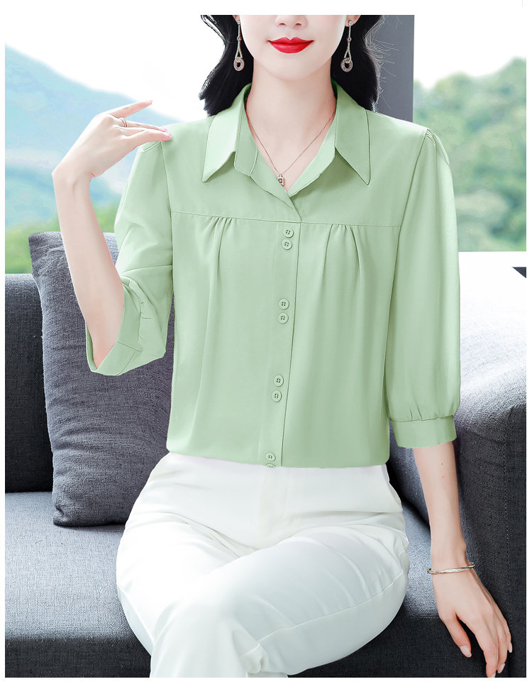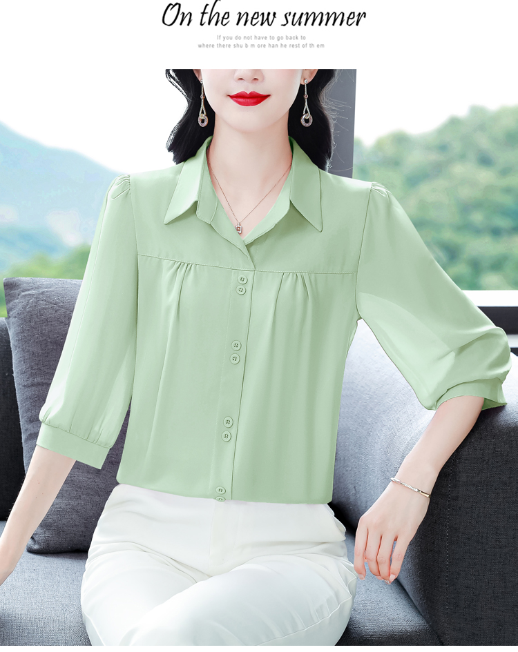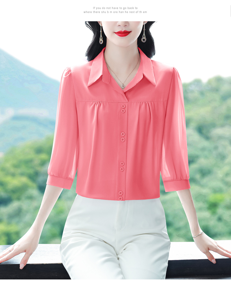RY3530# 春夏新款七分袖真丝桑蚕丝雪纺翻领开襟衬衫防晒气质显瘦遮肚上...