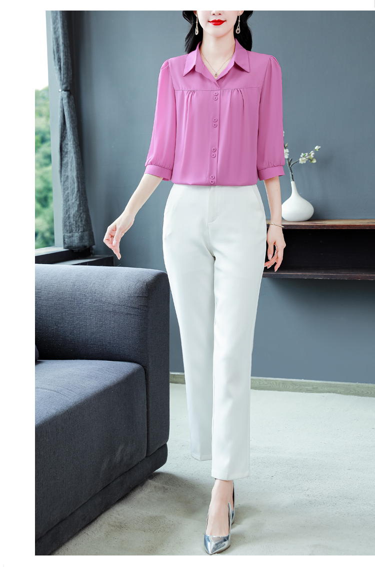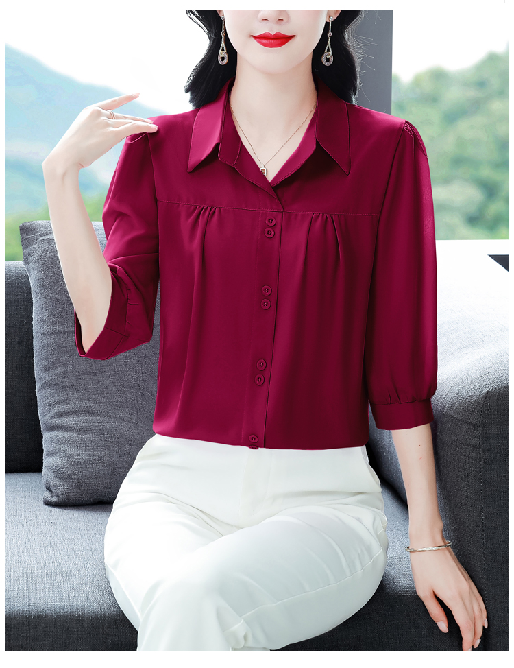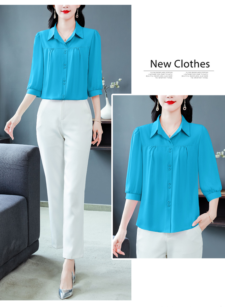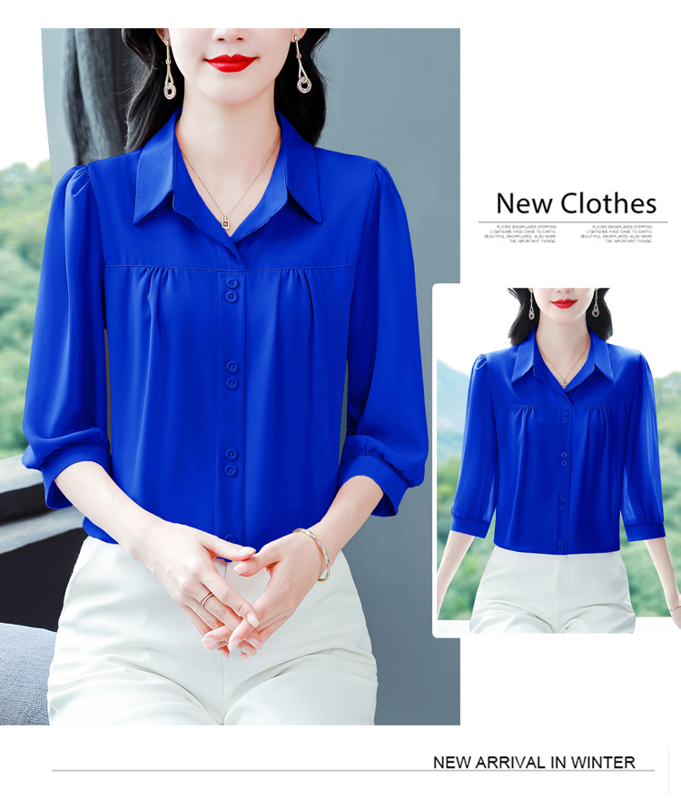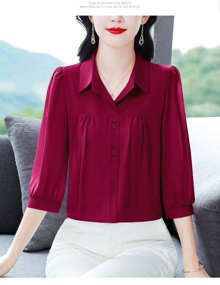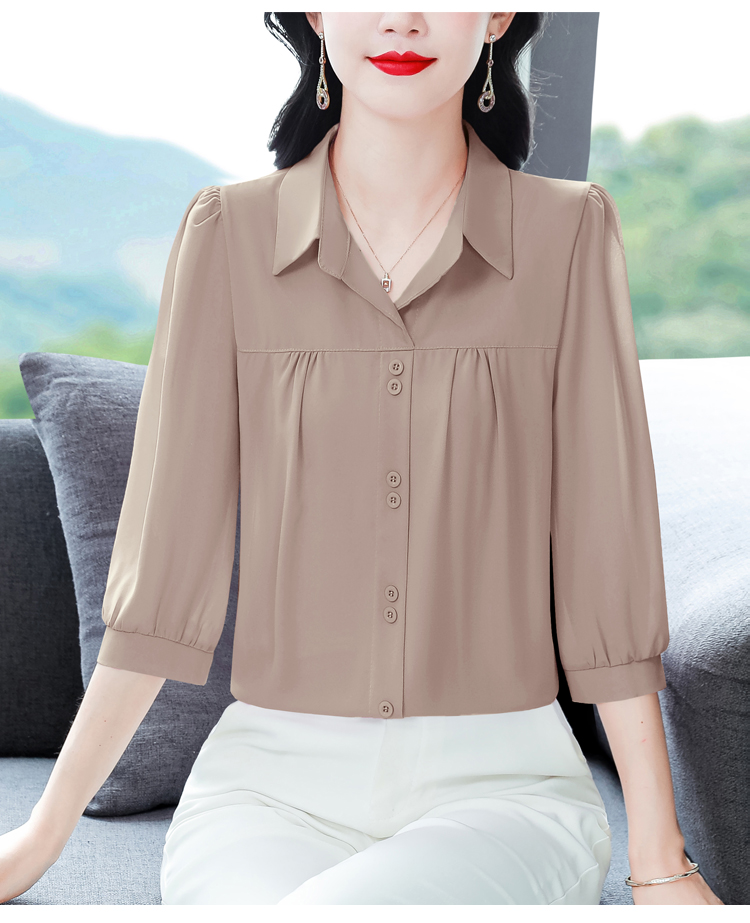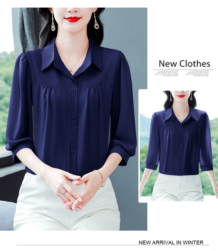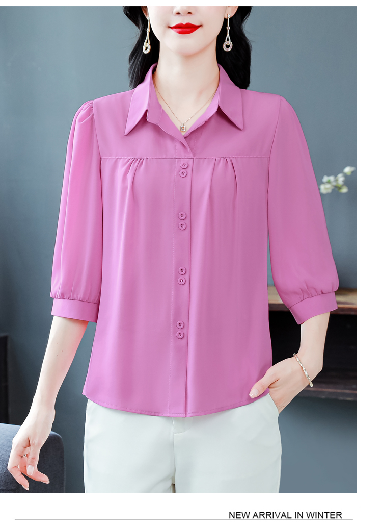 RY3530# 春夏新款七分袖真丝桑蚕丝雪纺翻领开襟衬衫防晒气质显瘦遮肚上...