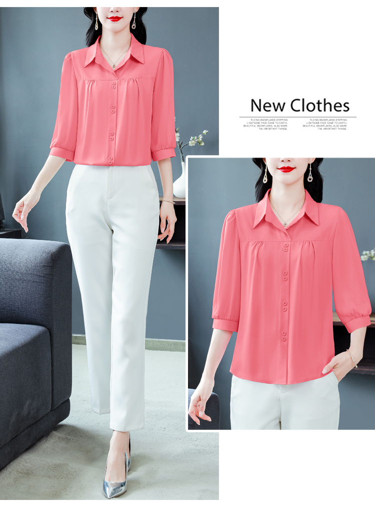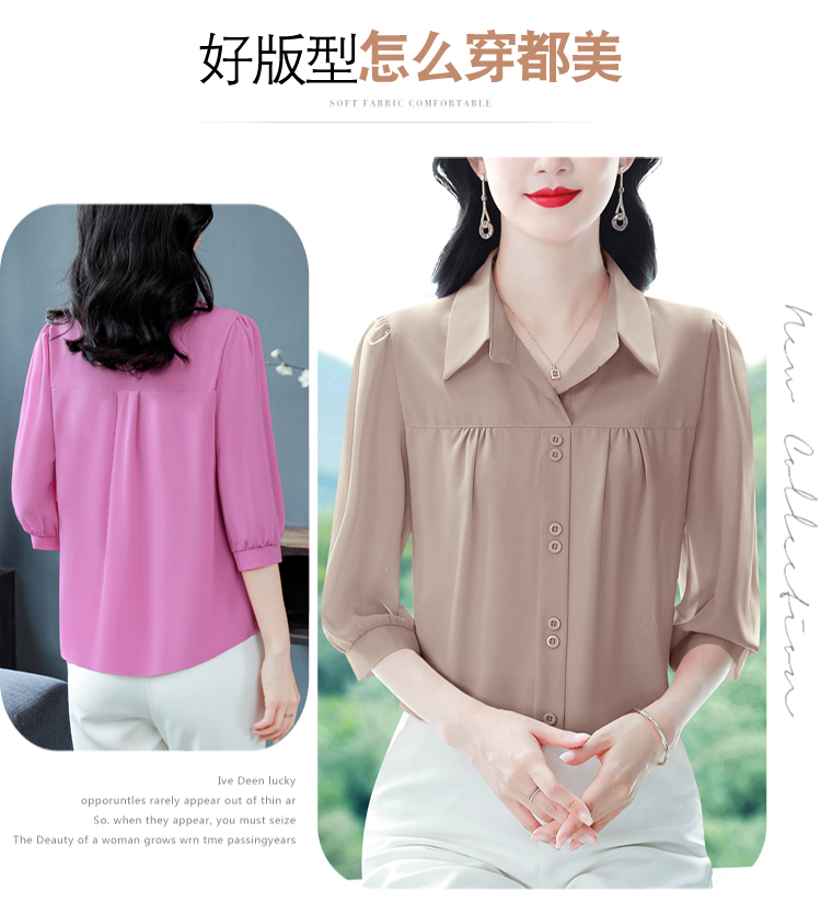 RY3396# 实拍 2026夏季新款洋气七分袖上衣气质减龄衬衫女士大码小衫