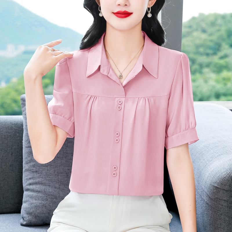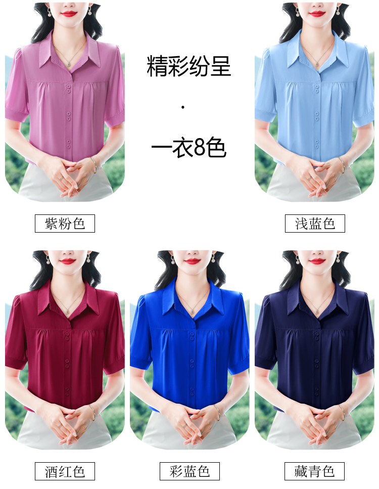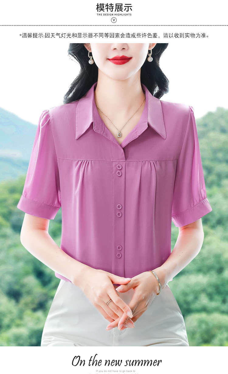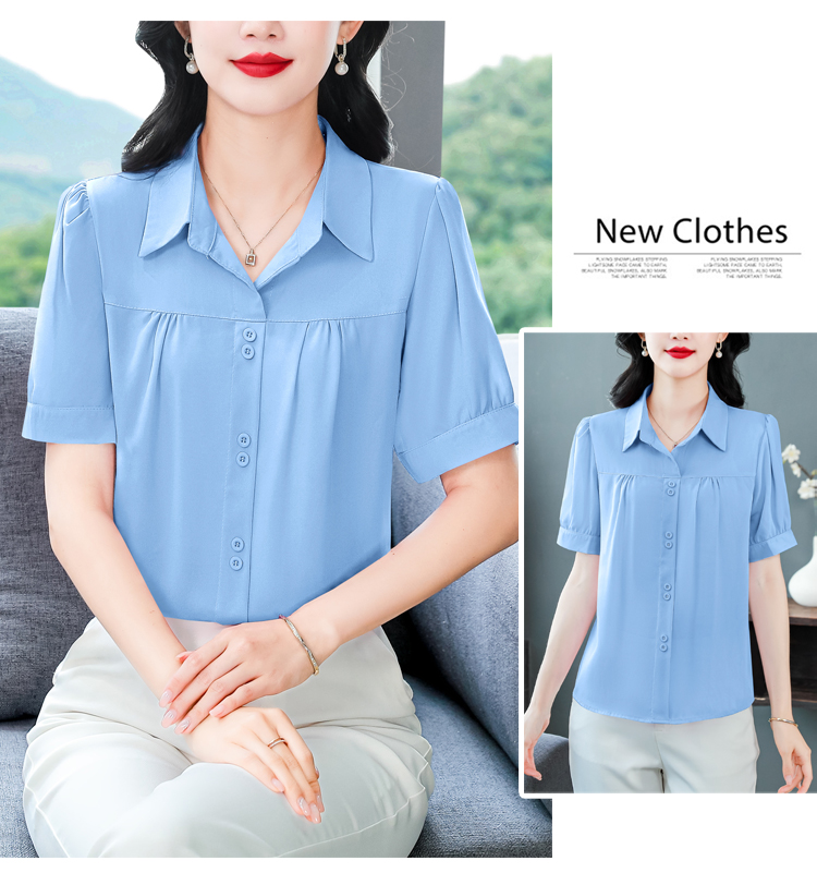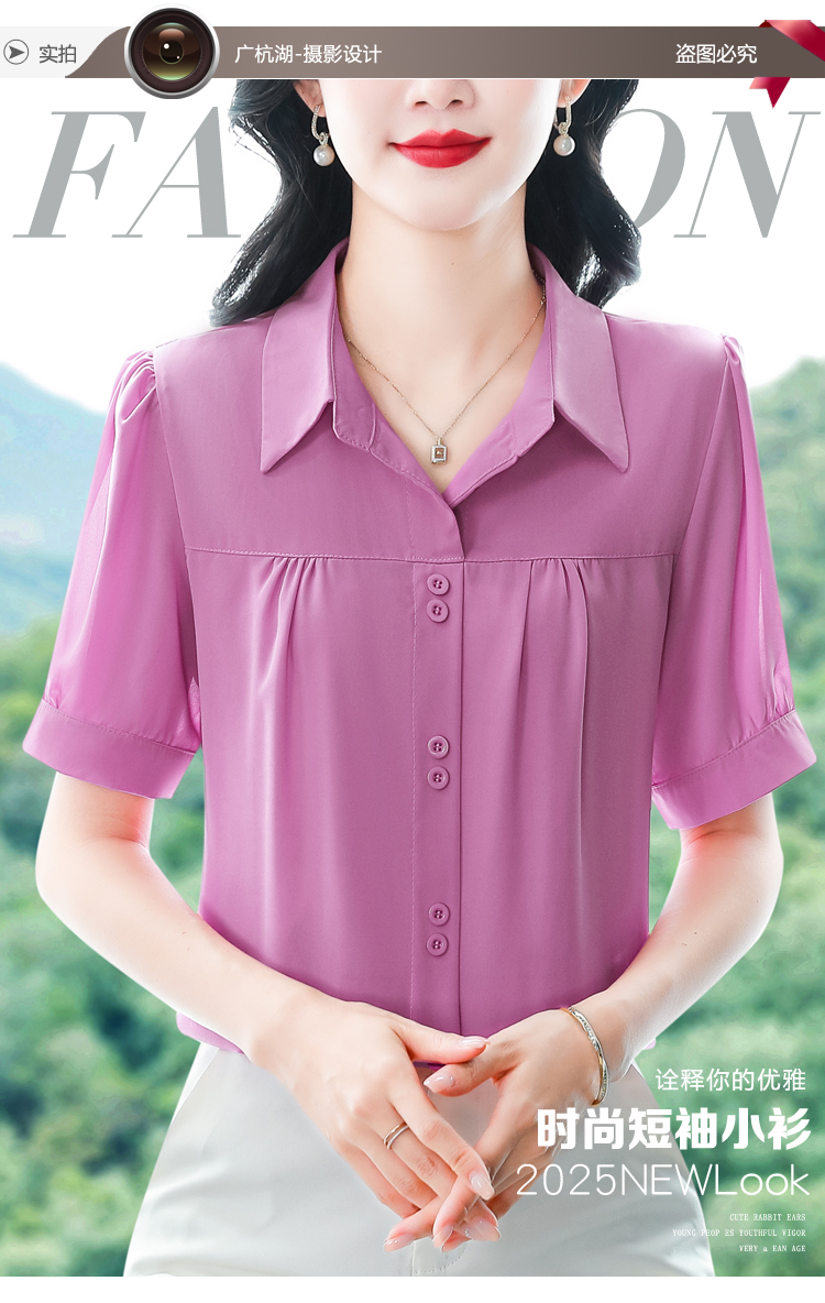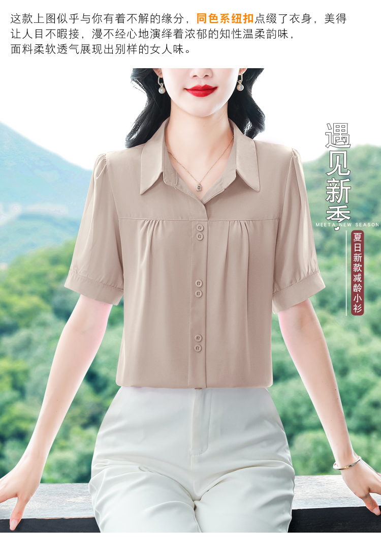 RY3397# 实拍 2026夏季新款洋气短袖上衣气质减龄衬衫女士大码小衫