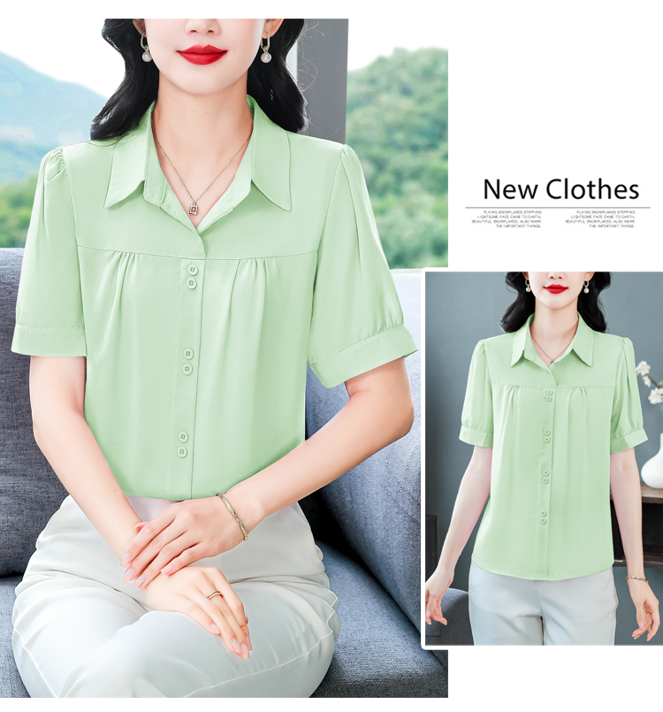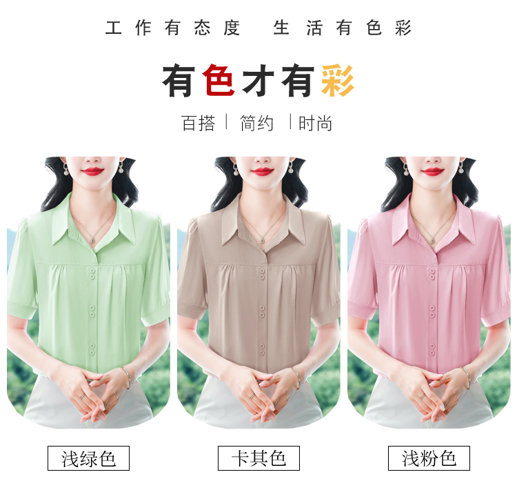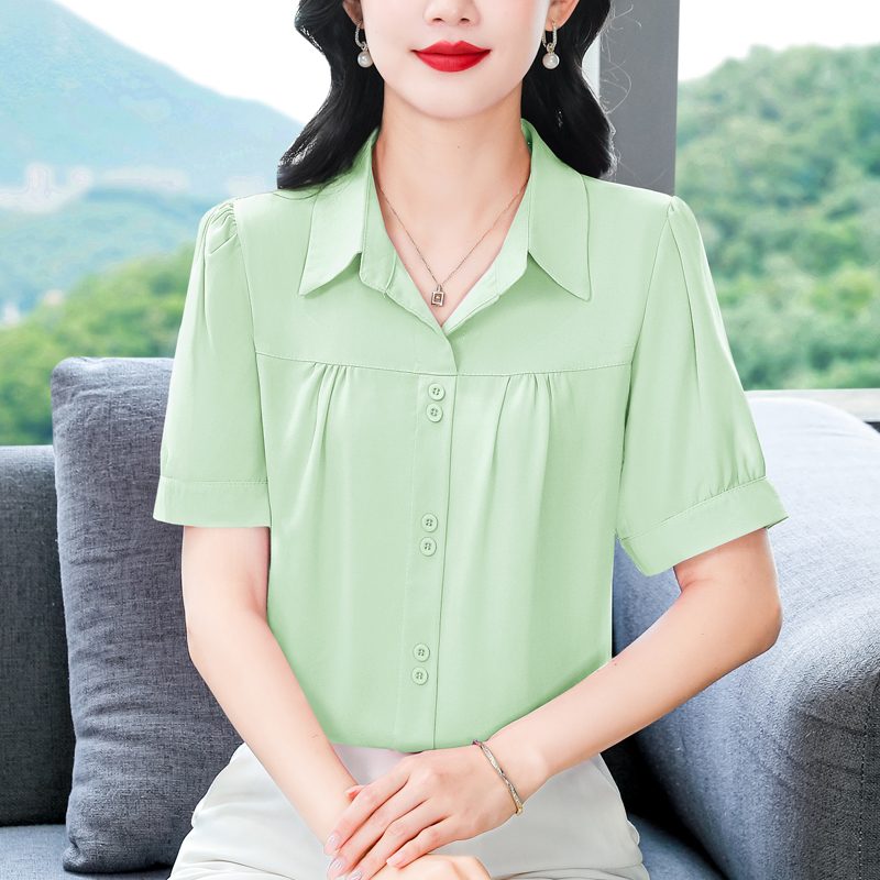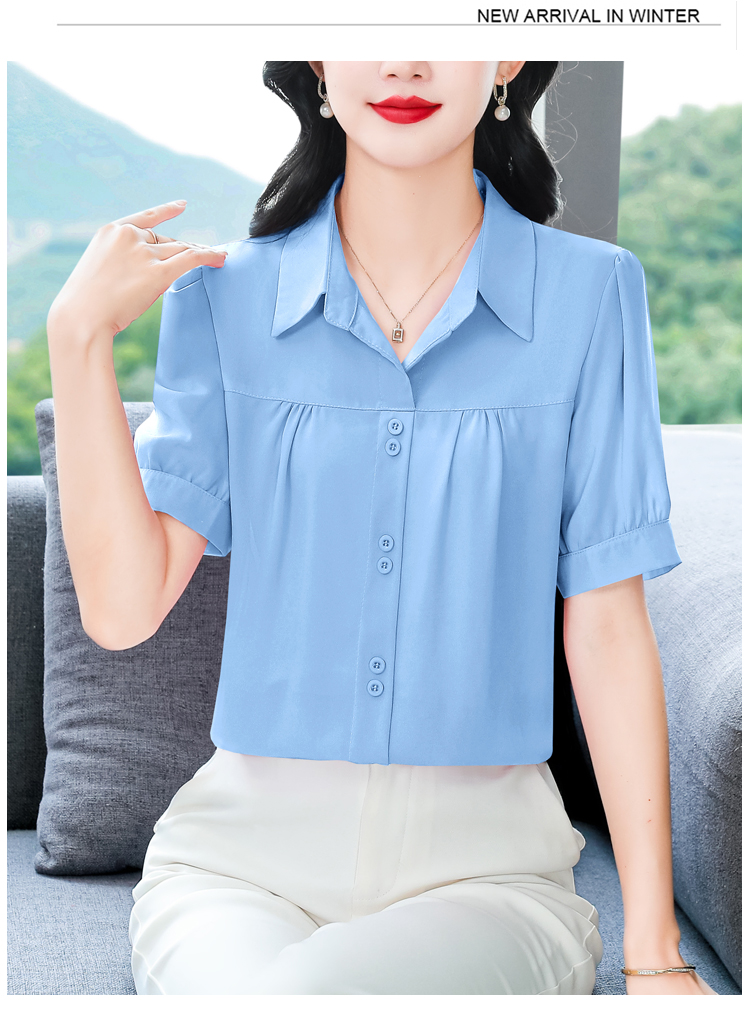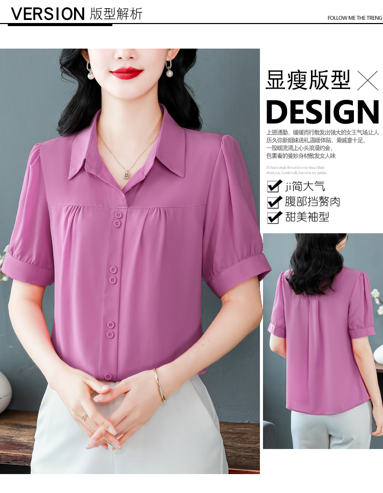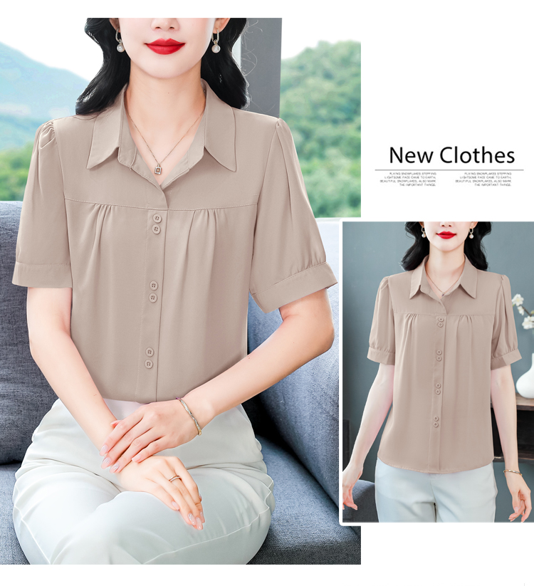 RY3397# 实拍 2026夏季新款洋气短袖上衣气质减龄衬衫女士大码小衫