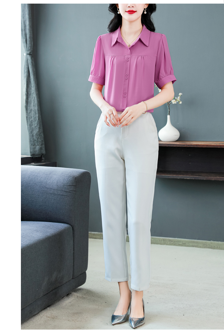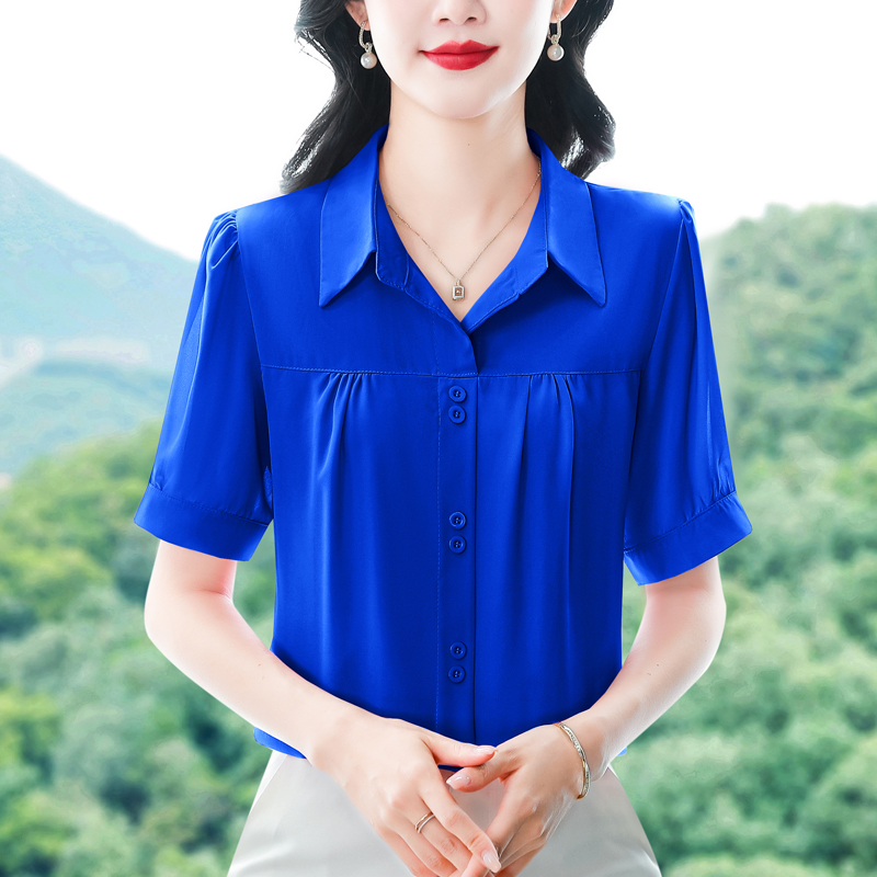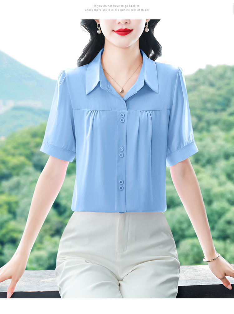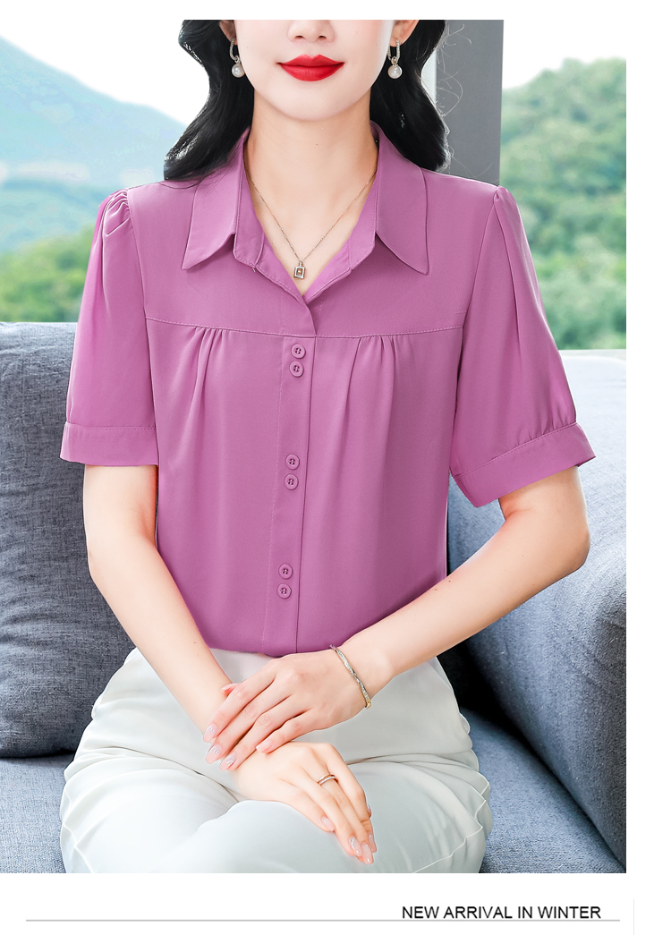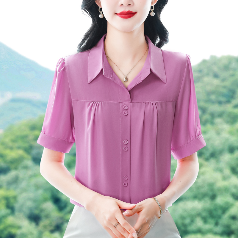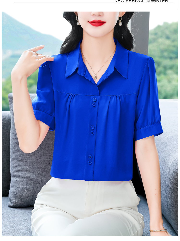 RY3397# 实拍 2026夏季新款洋气短袖上衣气质减龄衬衫女士大码小衫
