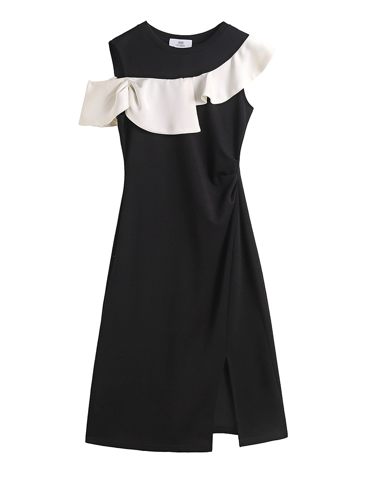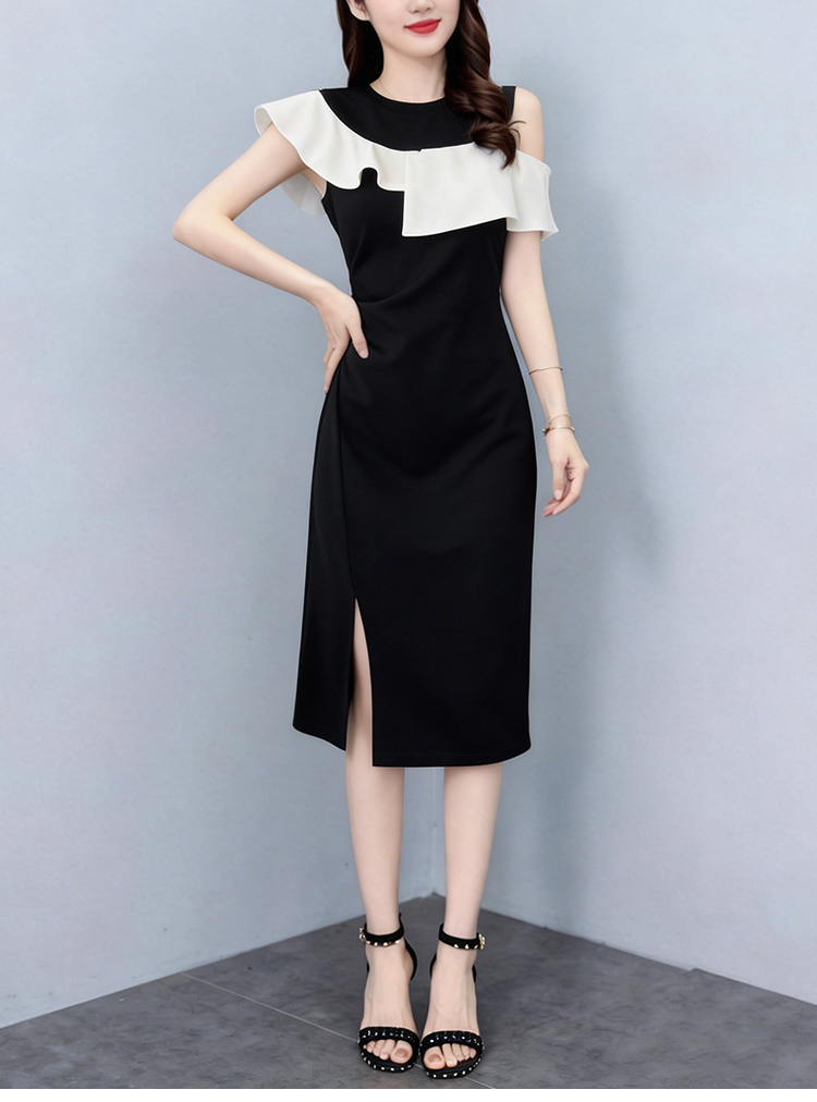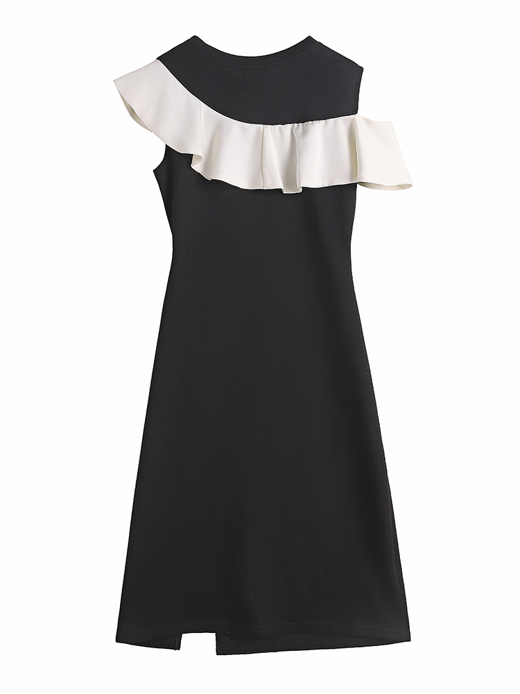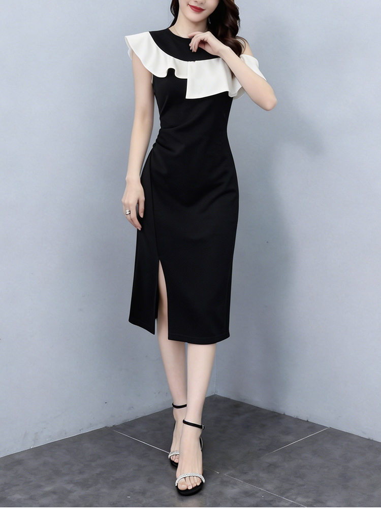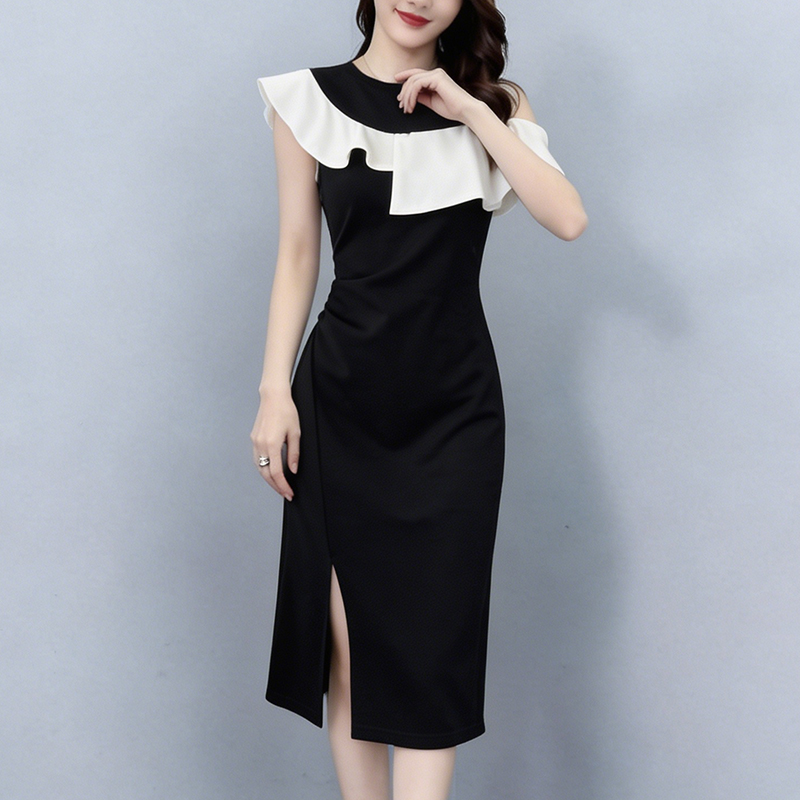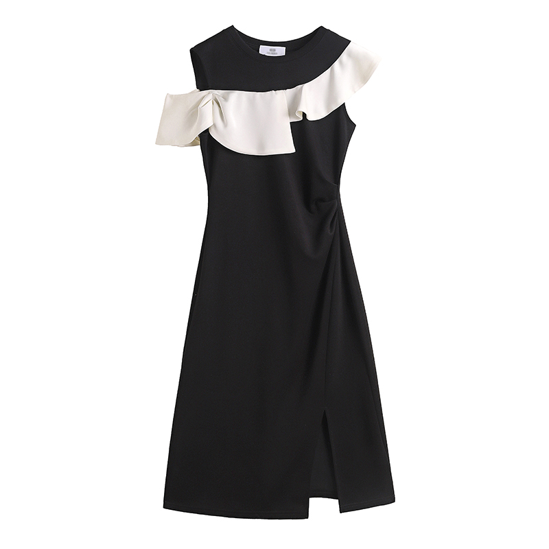 RY3400# 时尚气质黑白撞色拼接假两件套大码女装胖mm胖妹妹短袖连衣裙夏季