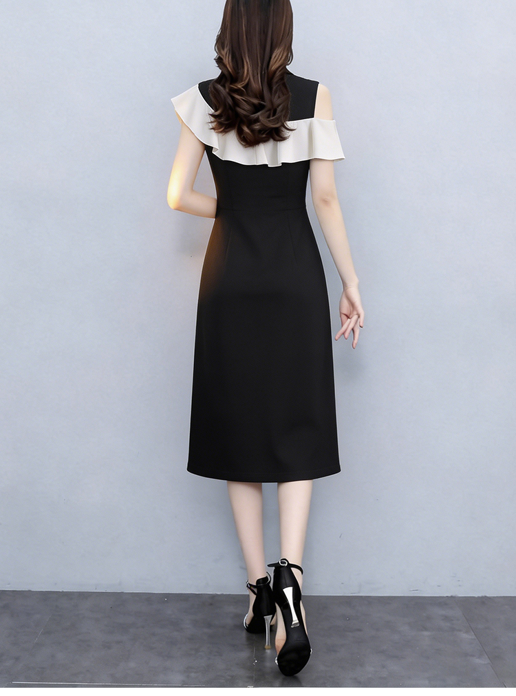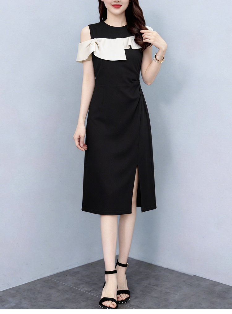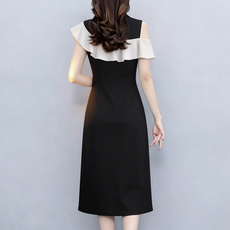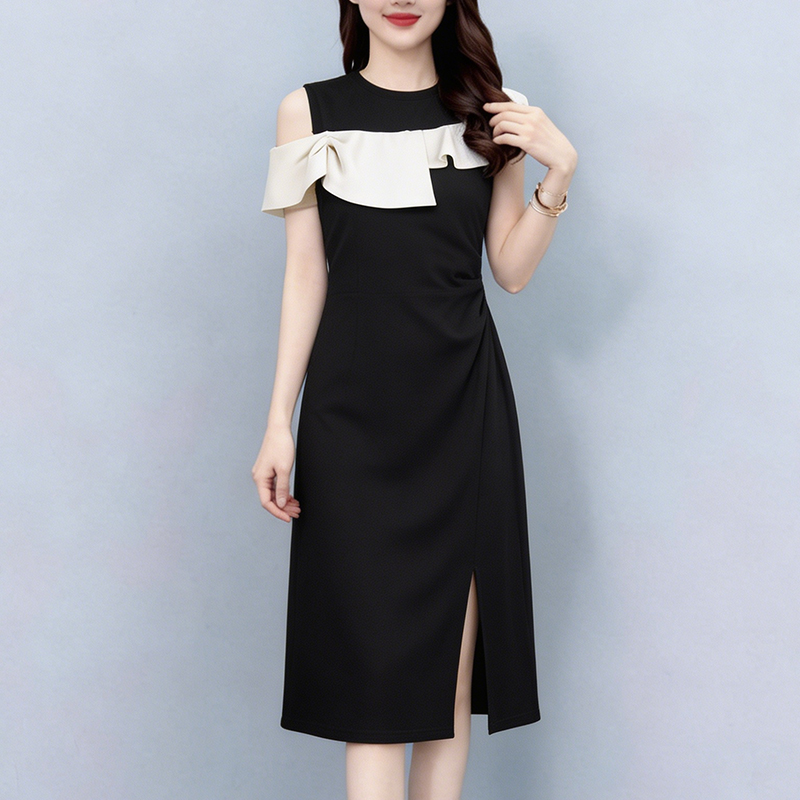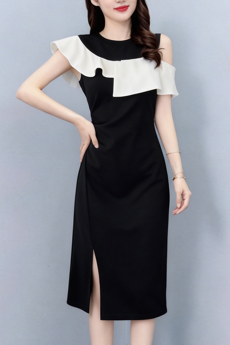 RY3400# 时尚气质黑白撞色拼接假两件套大码女装胖mm胖妹妹短袖连衣裙夏季